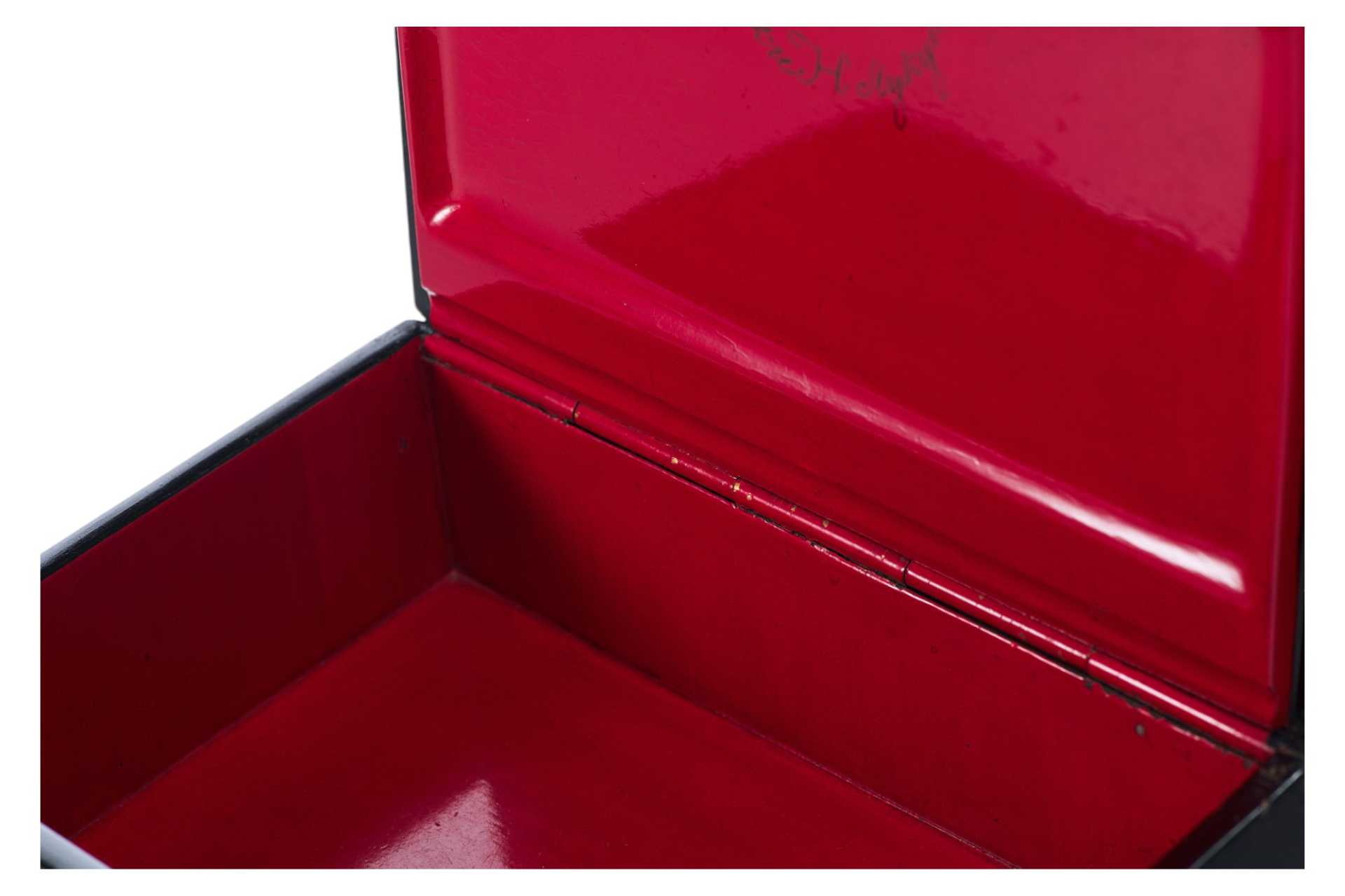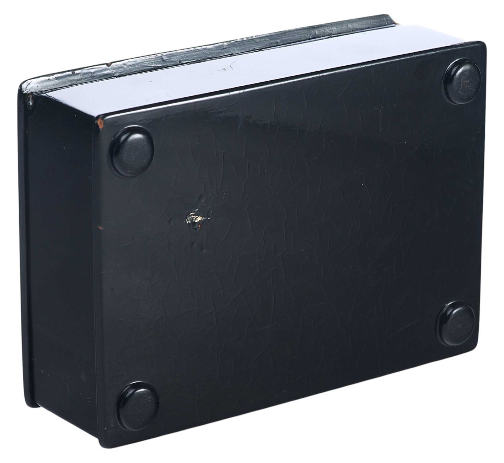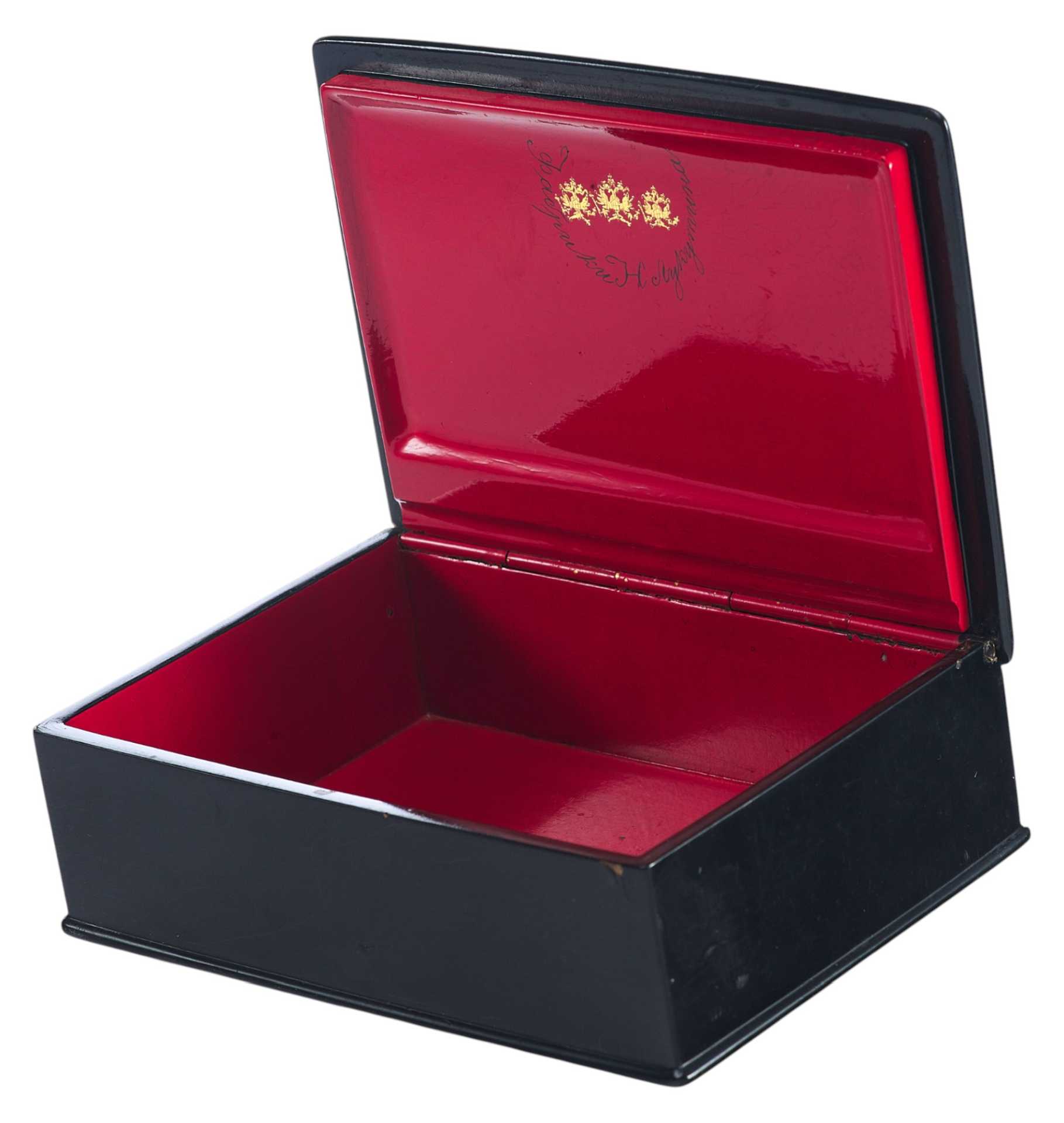 На внутренней стороне крышки клеймо фабрики Н.А. Лукутина. Изображение трех Государственных гербов ставилось в период с 1888 — 1902 годы. Николай Александрович Лукутин (1853 — 1902), последний владелец фабрики лаковой