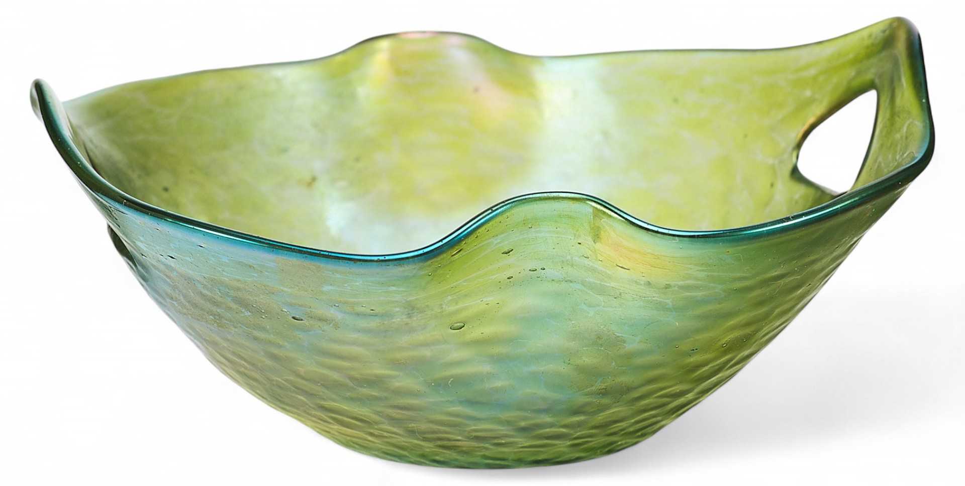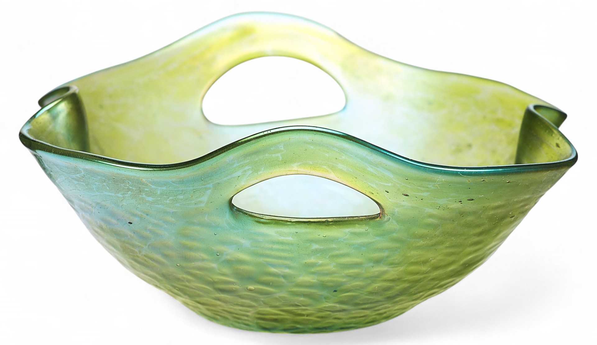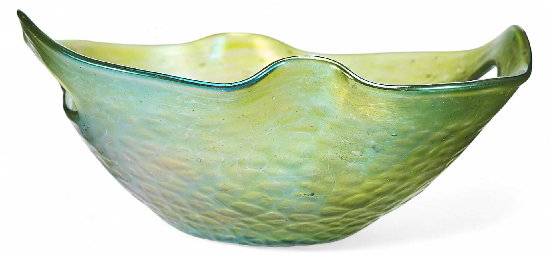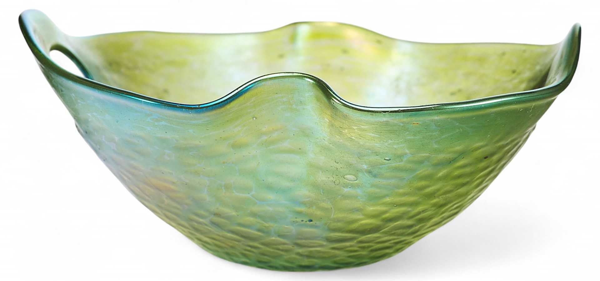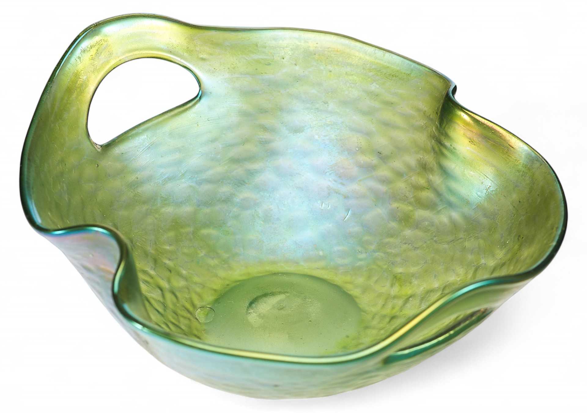 Ваза неправильной обтекаемой формы с рельефной фактурной поверхностью. В конце XIX века, в связи с нарастающим влиянием широкораспространенного французского варианта стиля модерн в европейском декоративном искусстве, называемого ар-нуво, стали активно использоваться художественно-выразительные приемы для оформления предметов обихода этого стилевого направлении.