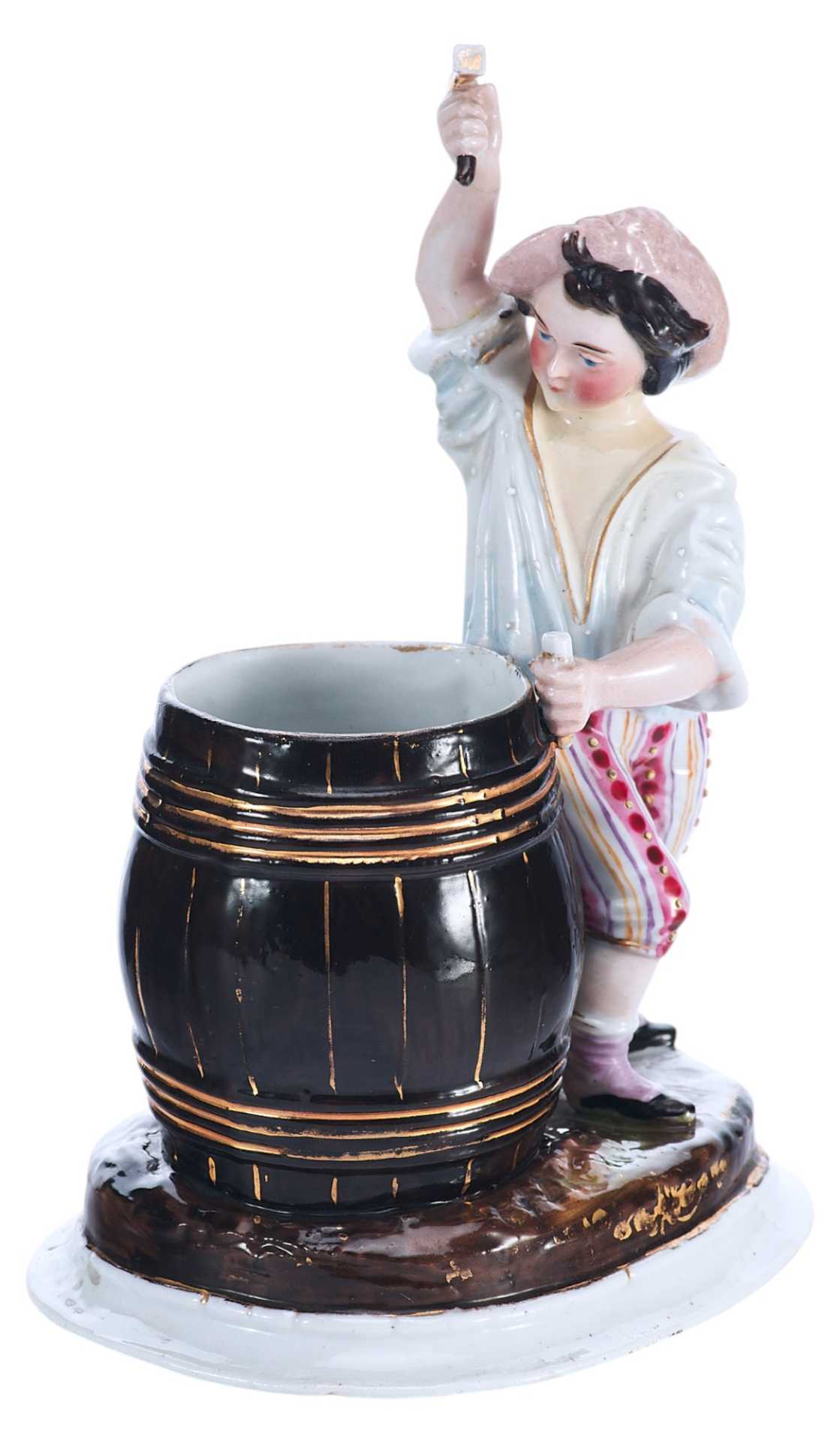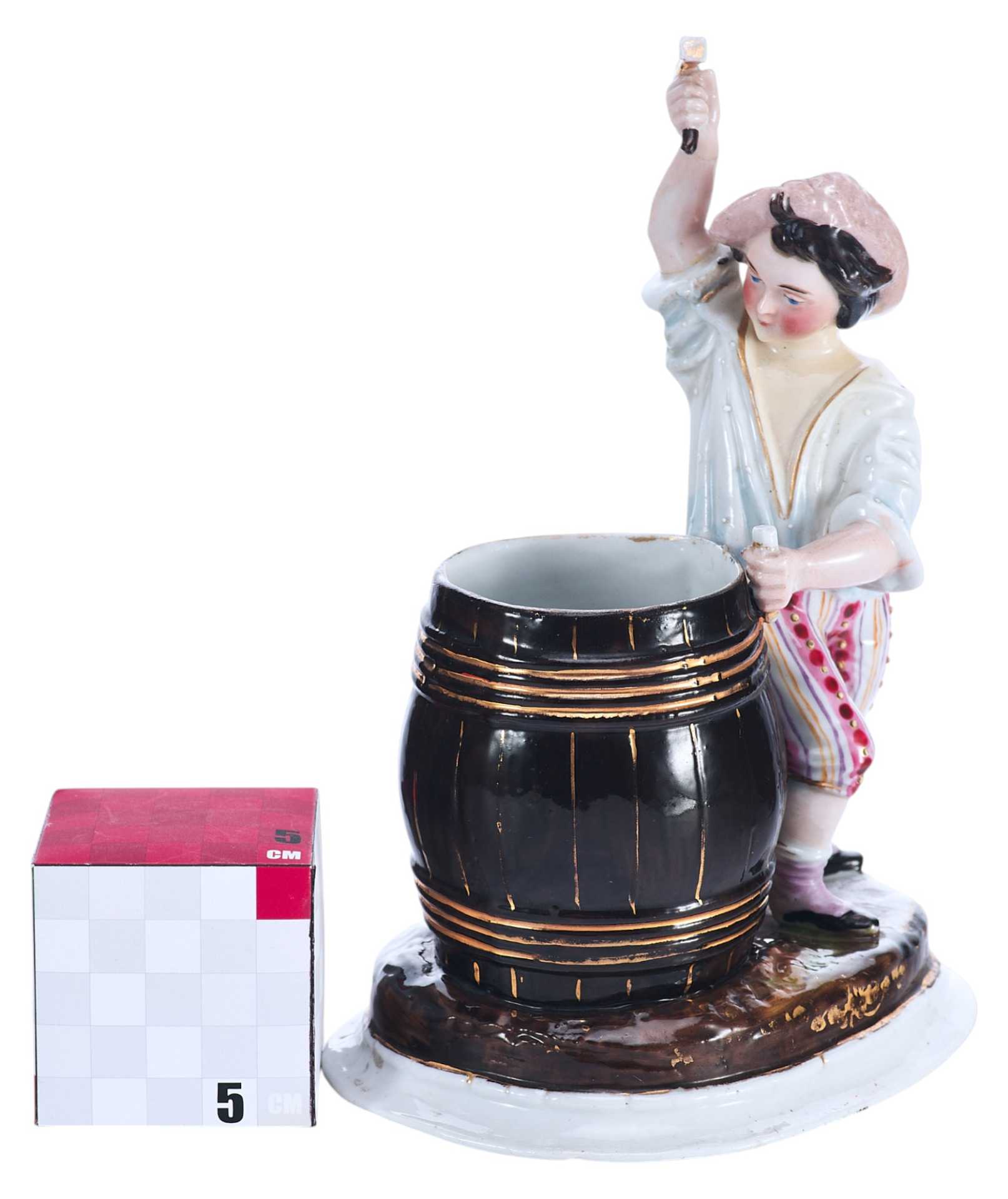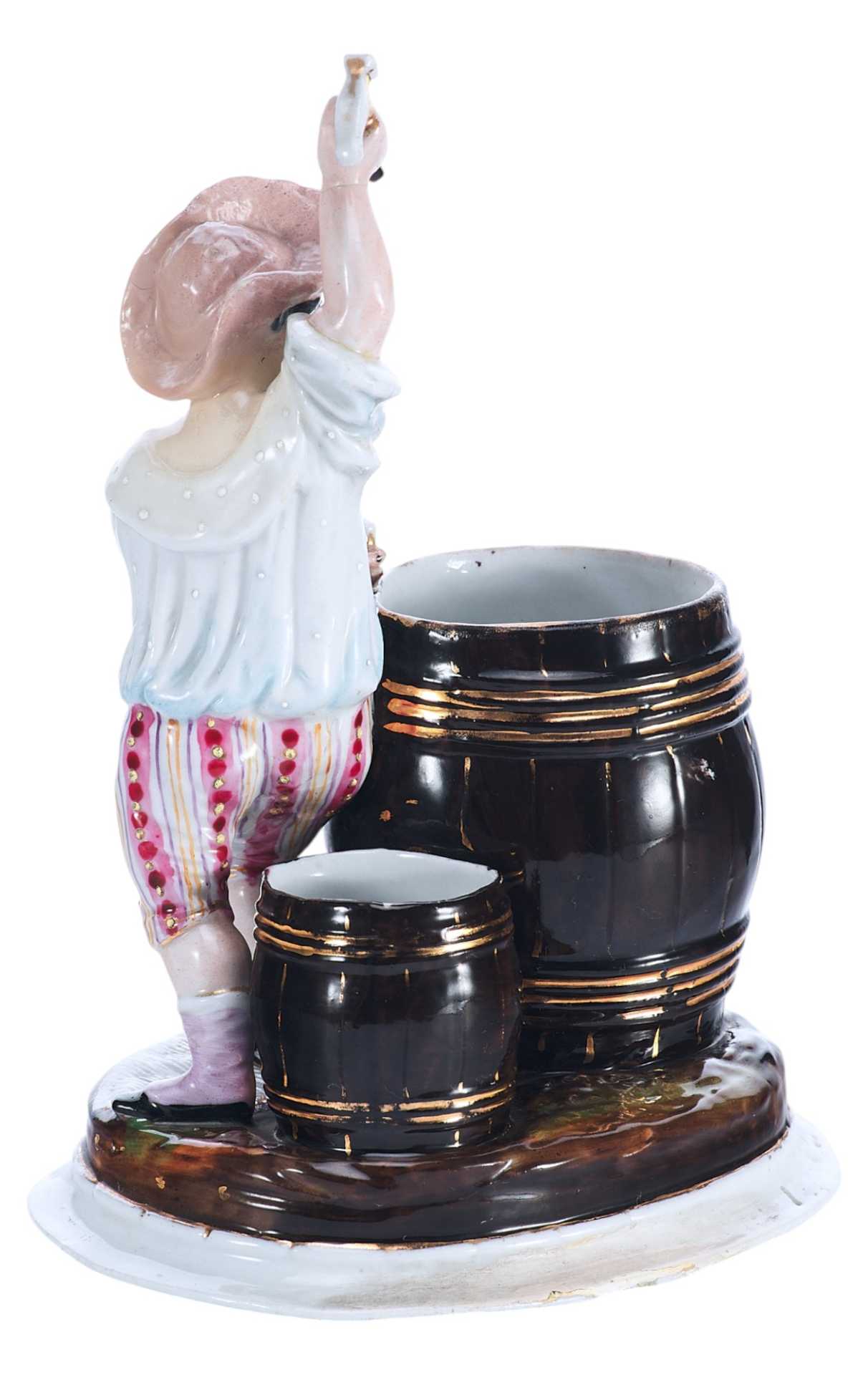 На основании карандашницы имеется надпись «Turingia». По стилистике росписи скульптура напоминает собою продукцию частных фарфоровых заводов Пруссии, периода середины XIX в.