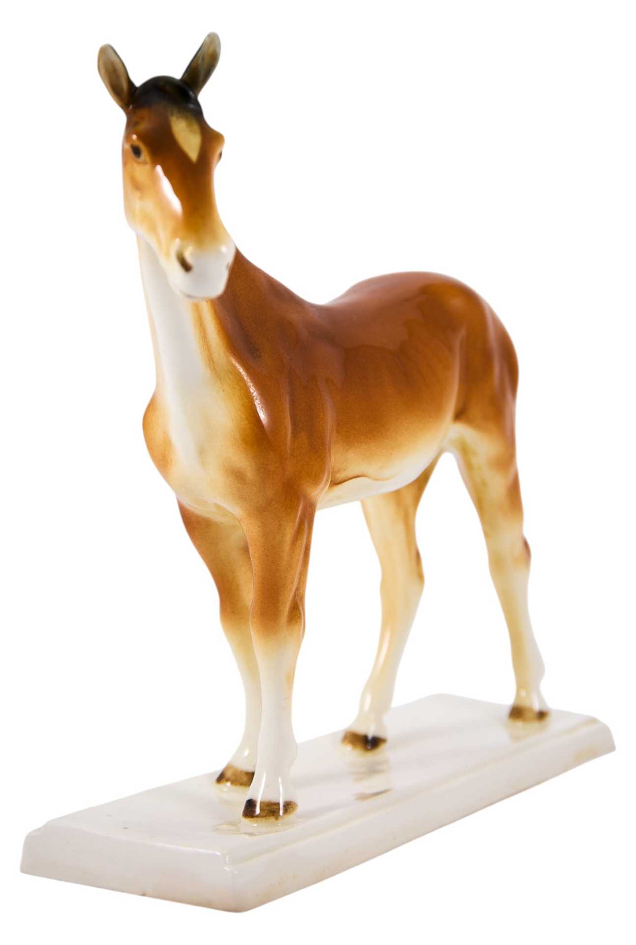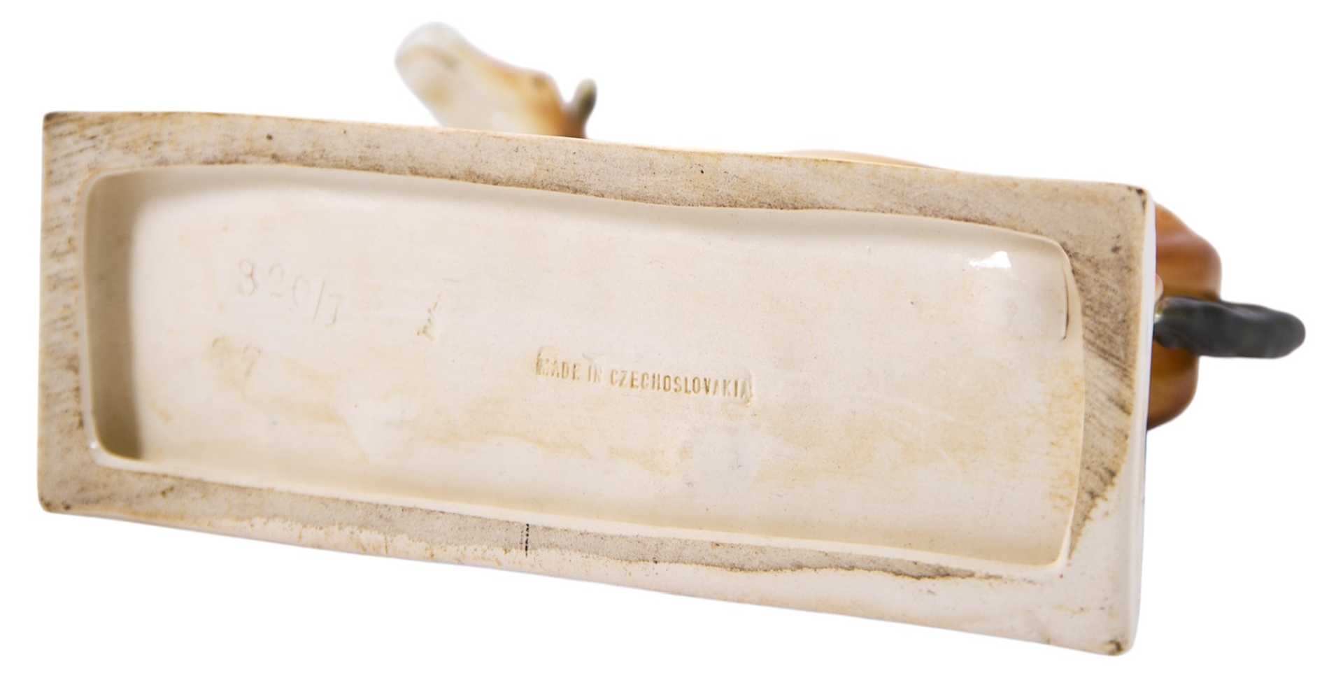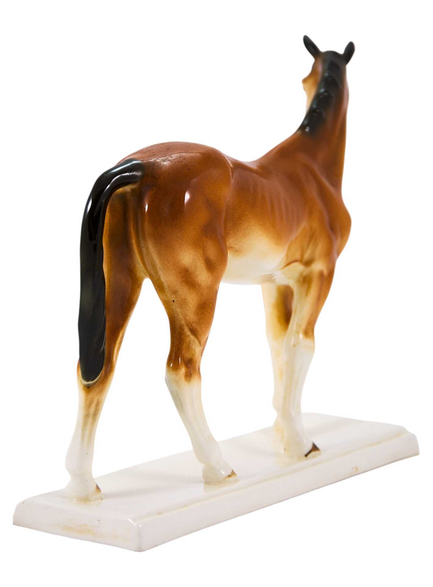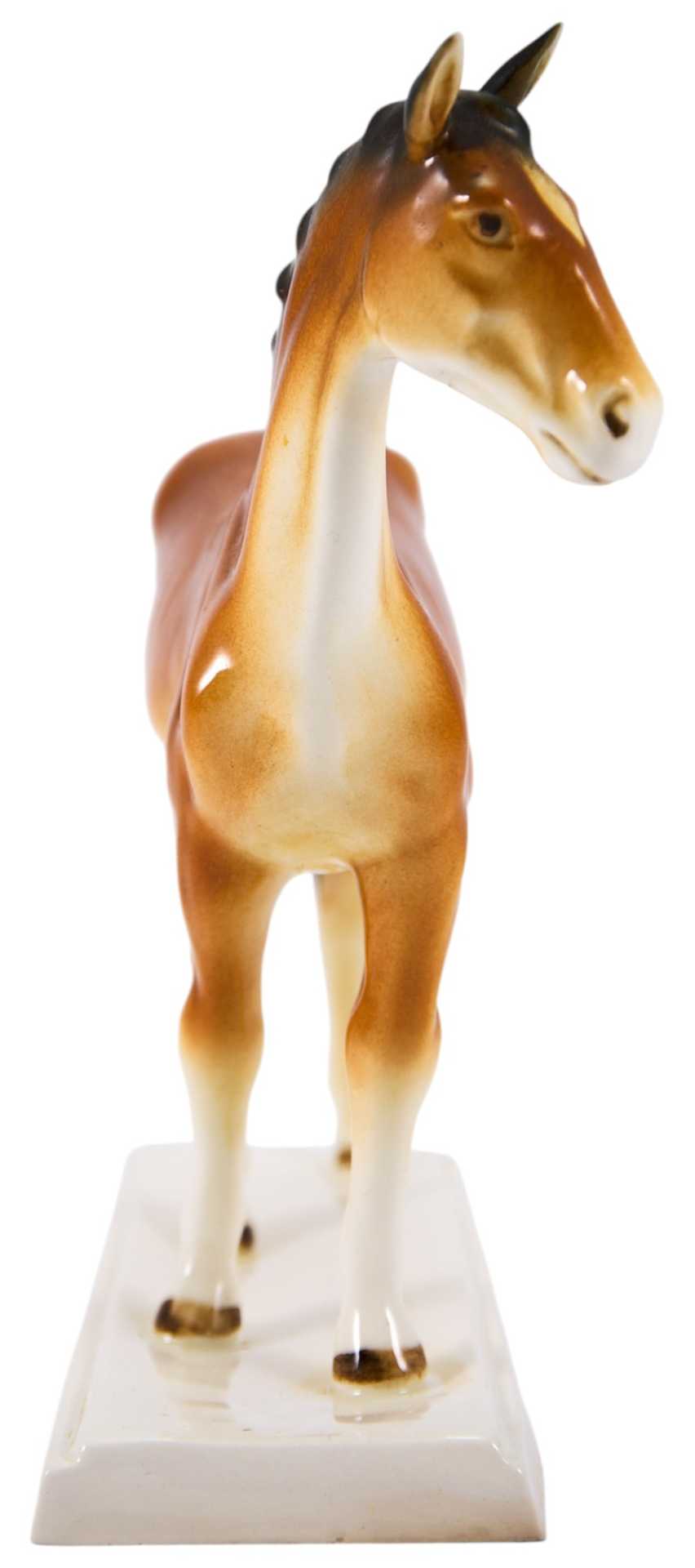 Скульптура в виде стоящей фигуры жеребенка. Круп лошади гнедой масти. На основании клеймо «в тесте»: «320/1 Made IV/37 Made in Czechoslovakia». Клеймо может принадлежать продукции фарфорово-фаянсового предприятия Czech BIHL, предназначенного для экспорта в США. Czech BULL, Ledvice История богемского и чехословацкого фарфора со всеми её конфликтами отражена в истории этого предприятия.
