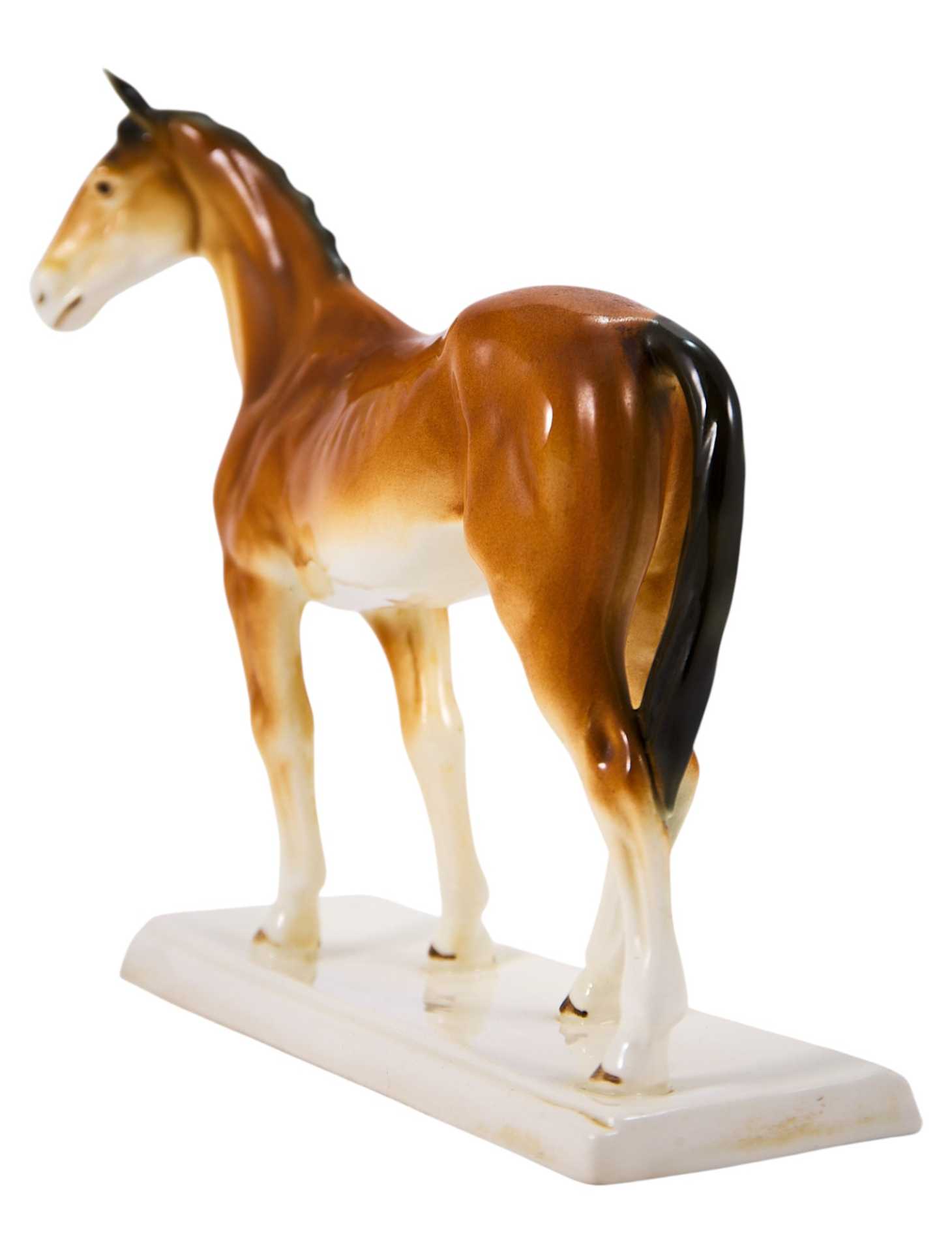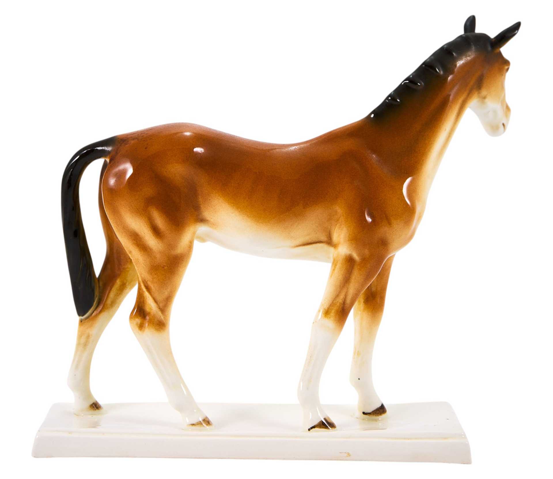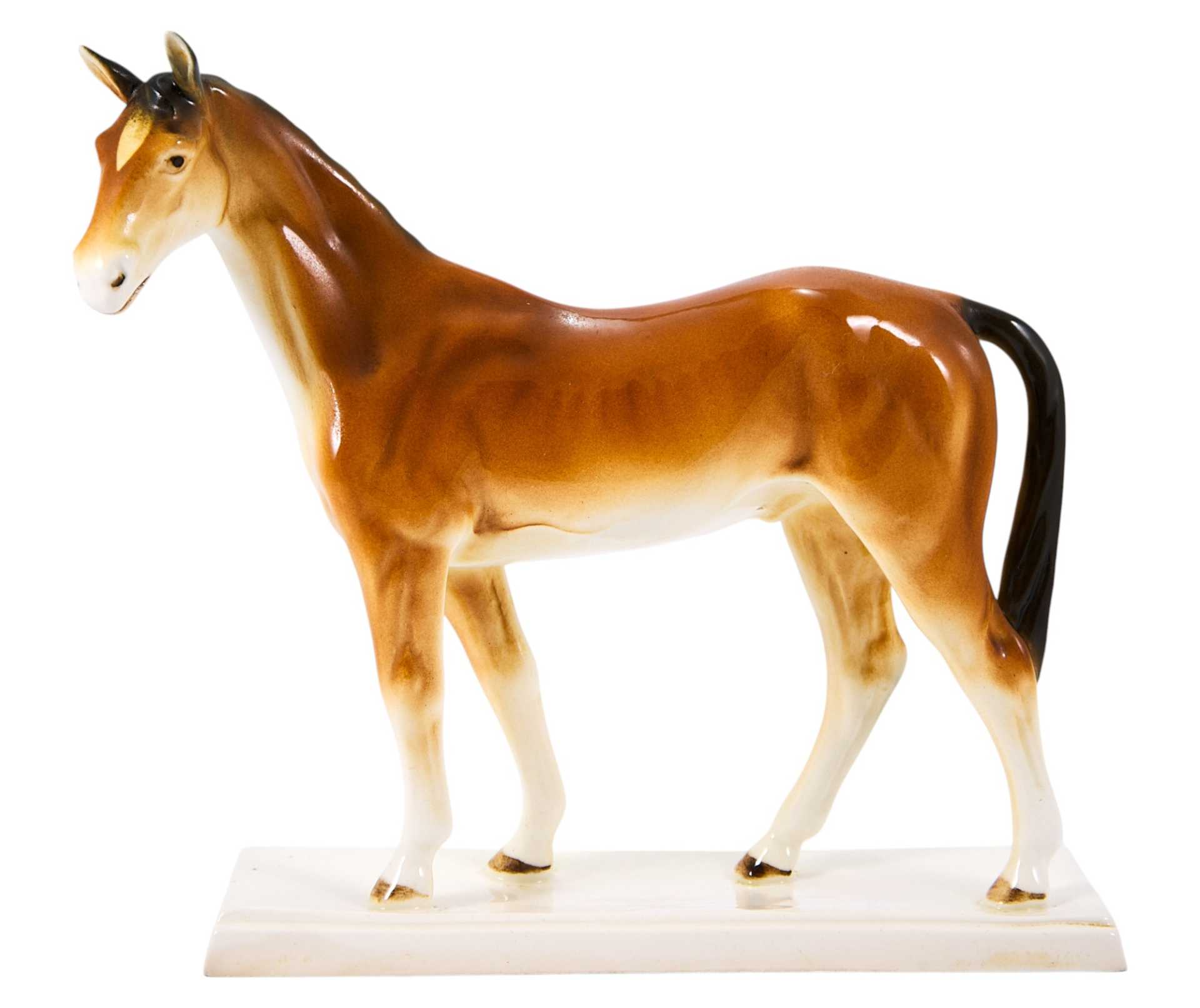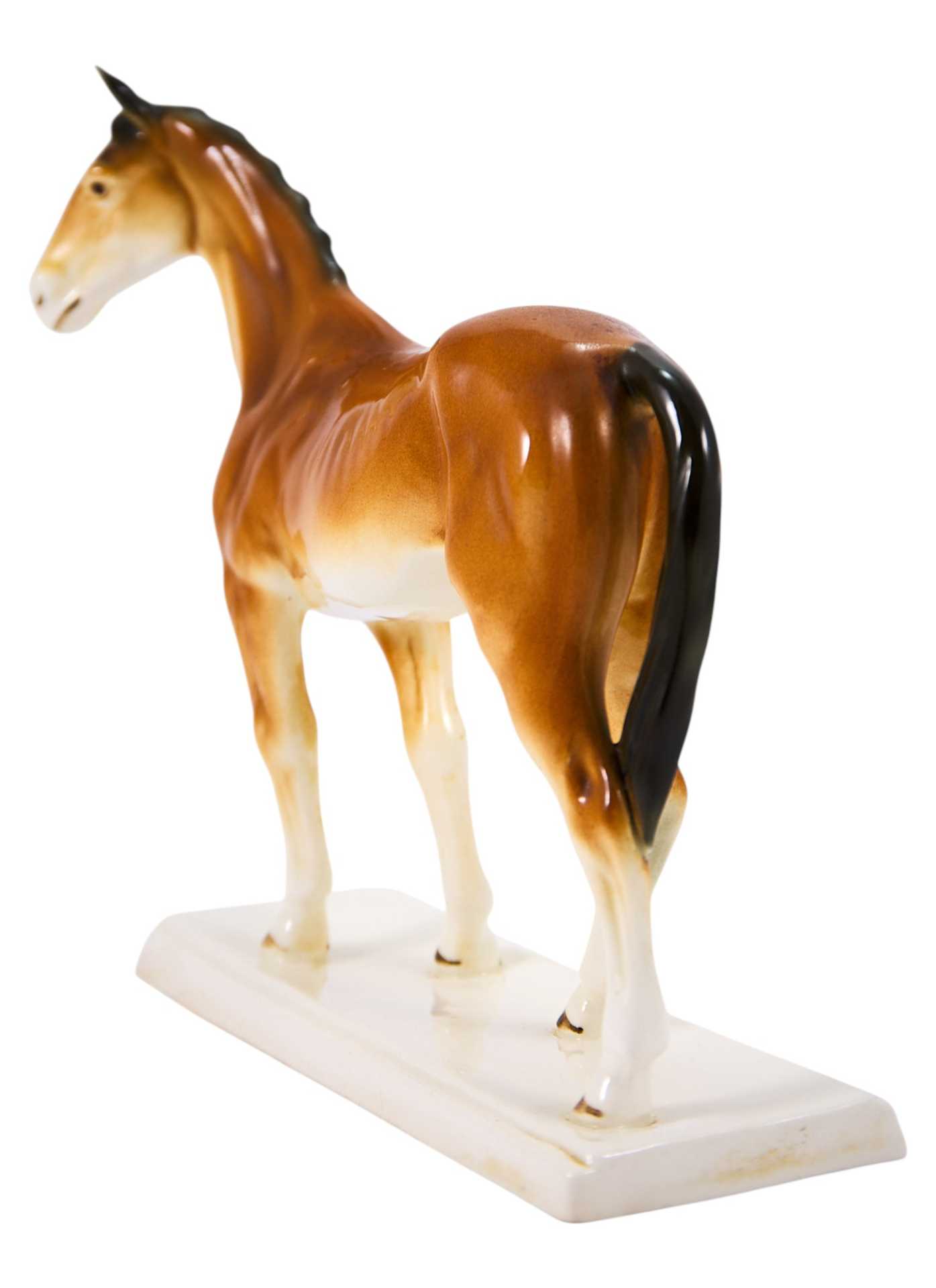 Скульптура в виде стоящей фигуры жеребенка. Круп лошади гнедой масти. На основании клеймо «в тесте»: «320/1 Made IV/37 Made in Czechoslovakia». Клеймо может принадлежать продукции фарфорово-фаянсового предприятия Czech BIHL, предназначенного для экспорта в США. Czech BULL, Ledvice История богемского и чехословацкого фарфора со всеми её конфликтами отражена в истории этого предприятия.
