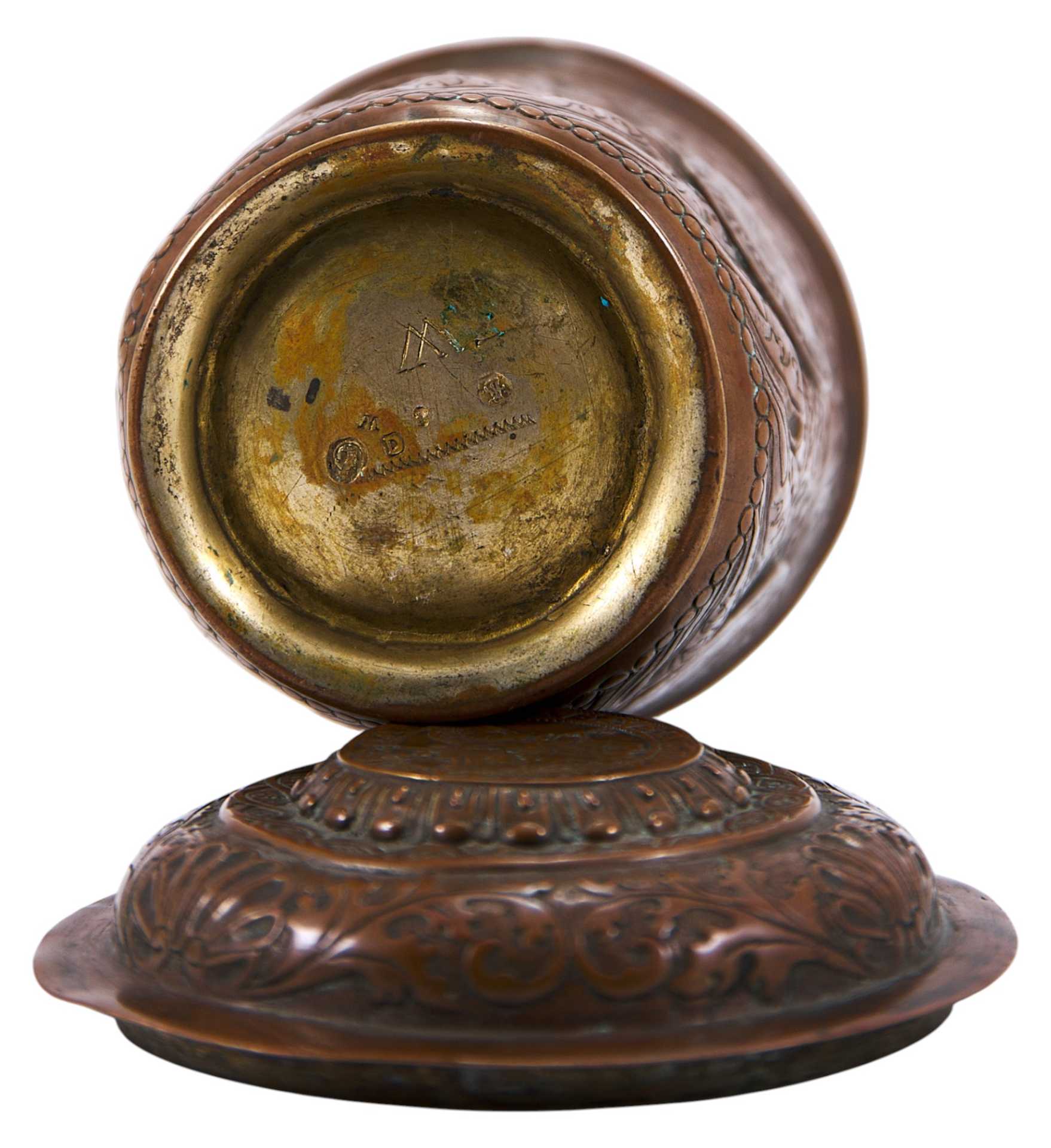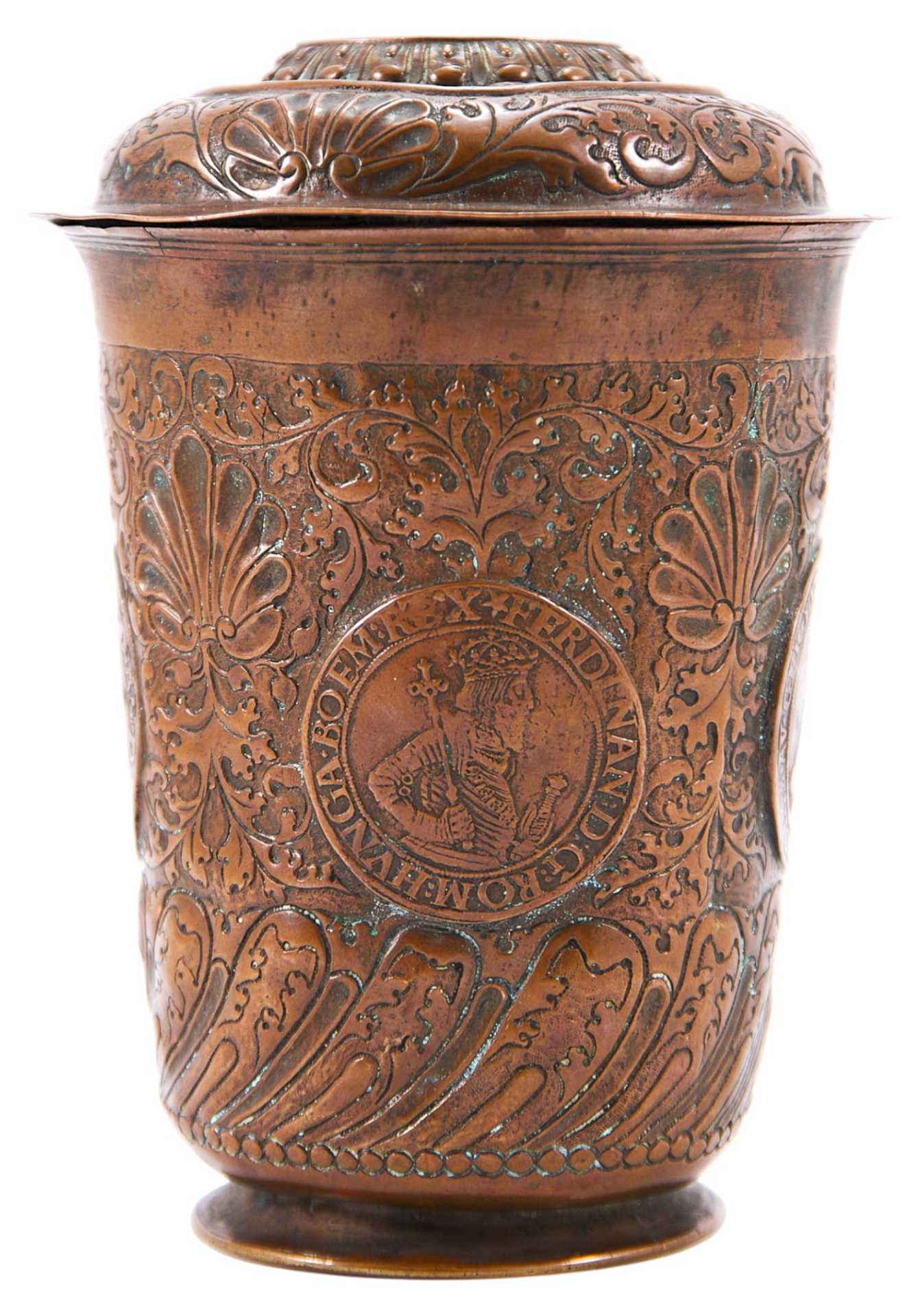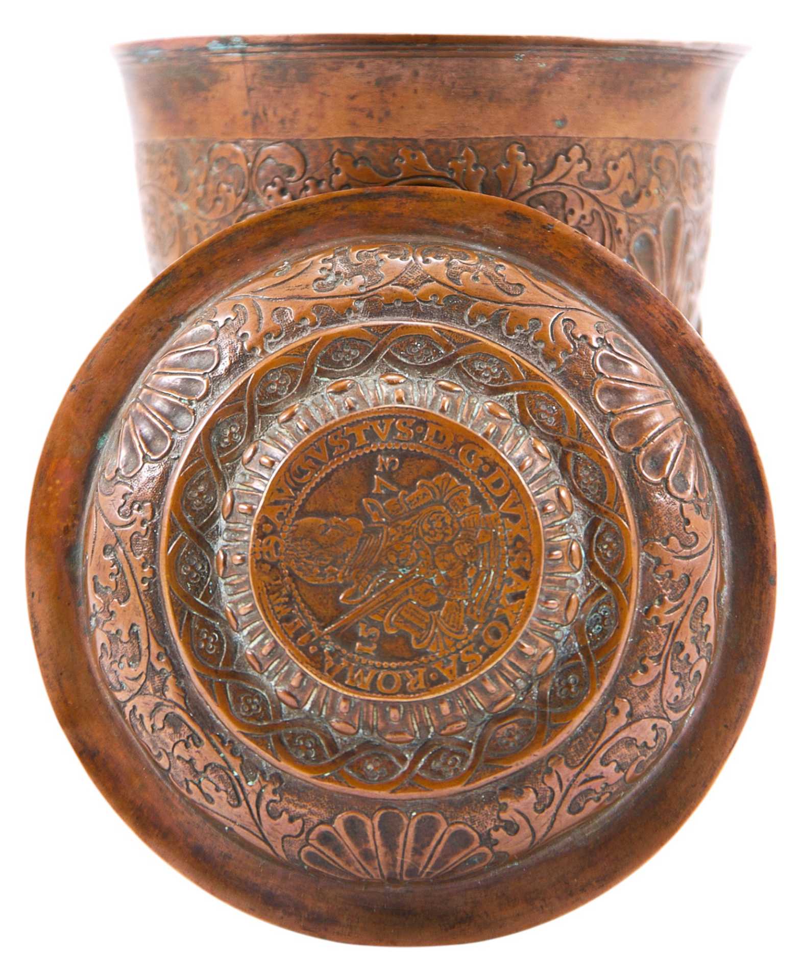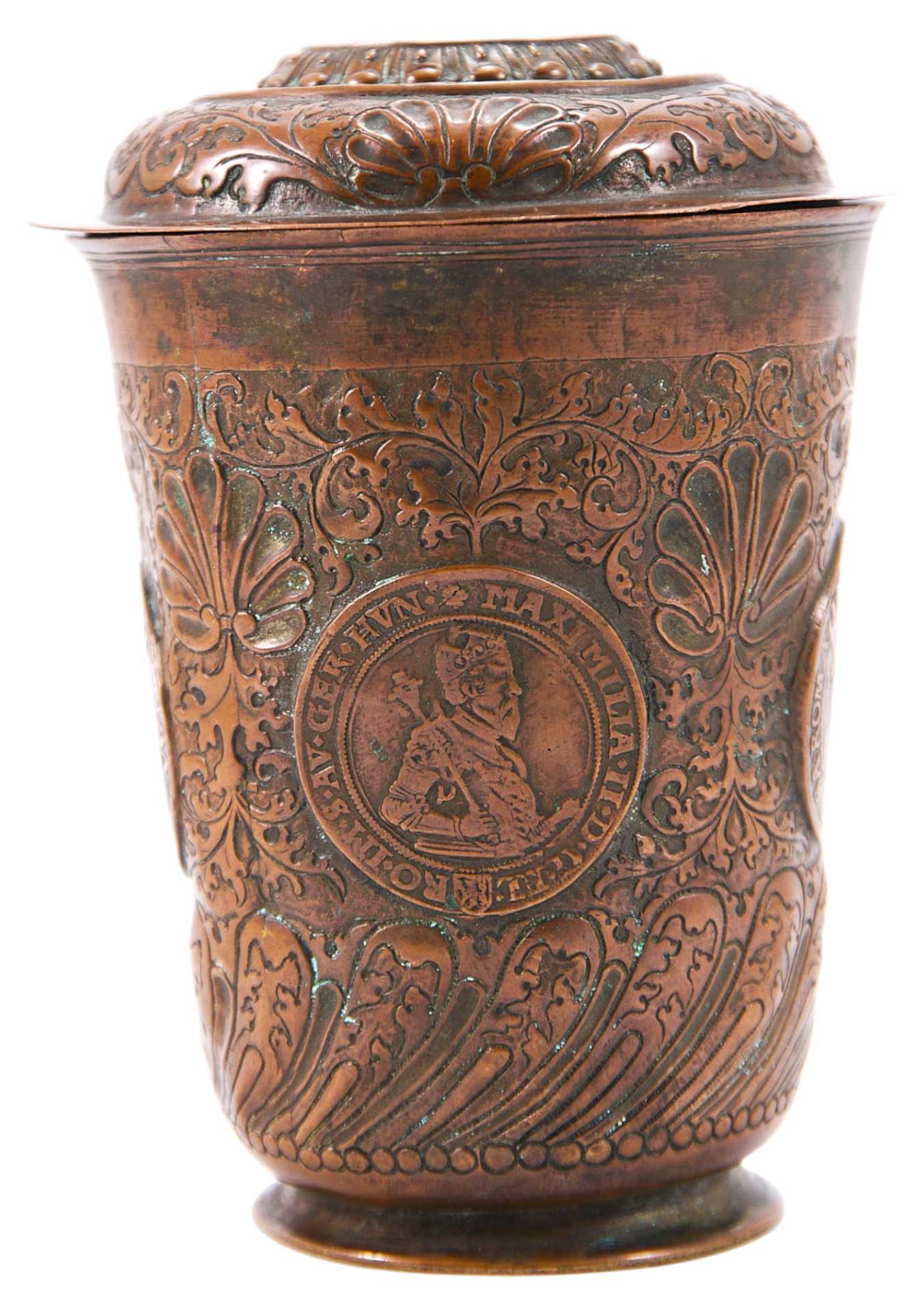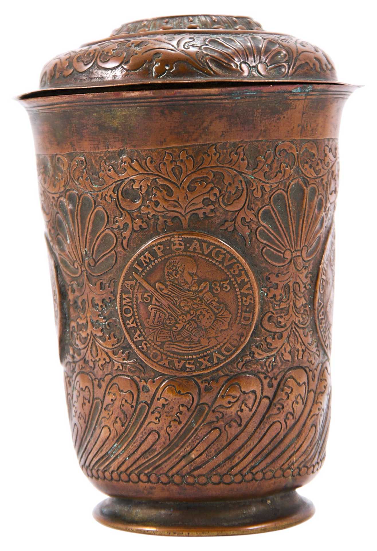 Стакан с крышкой, украшенный орнаментальными мотивами периода позднего Ренессанса, объединенные в