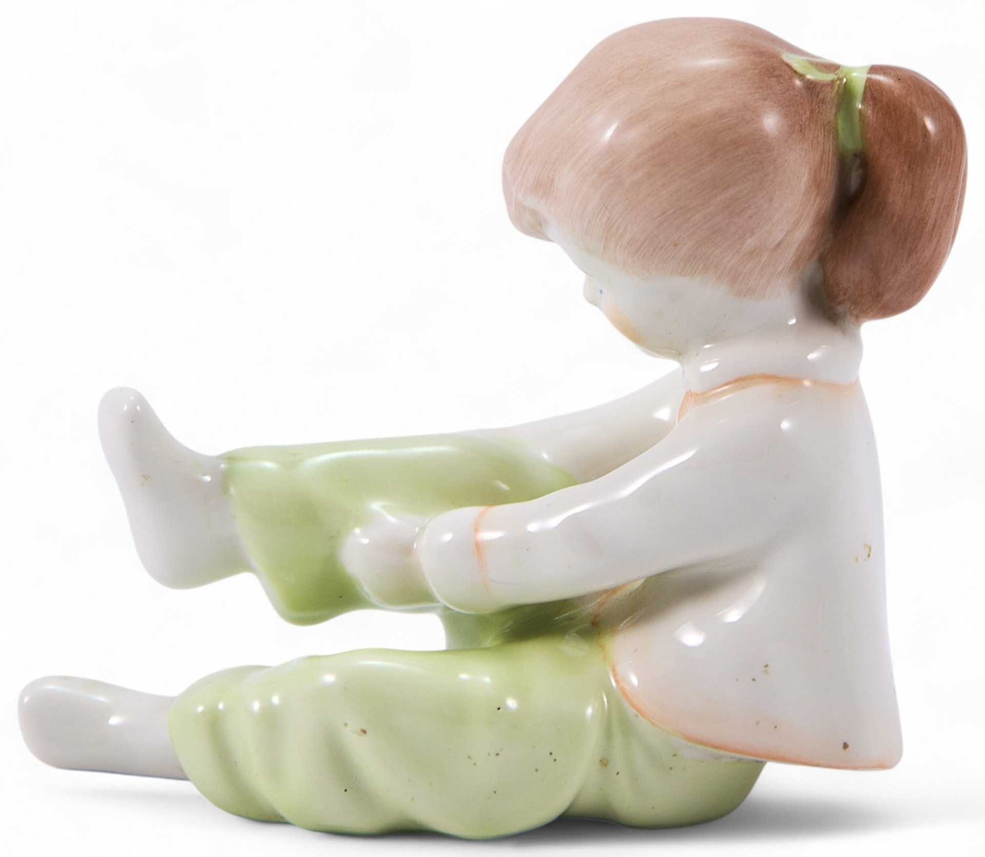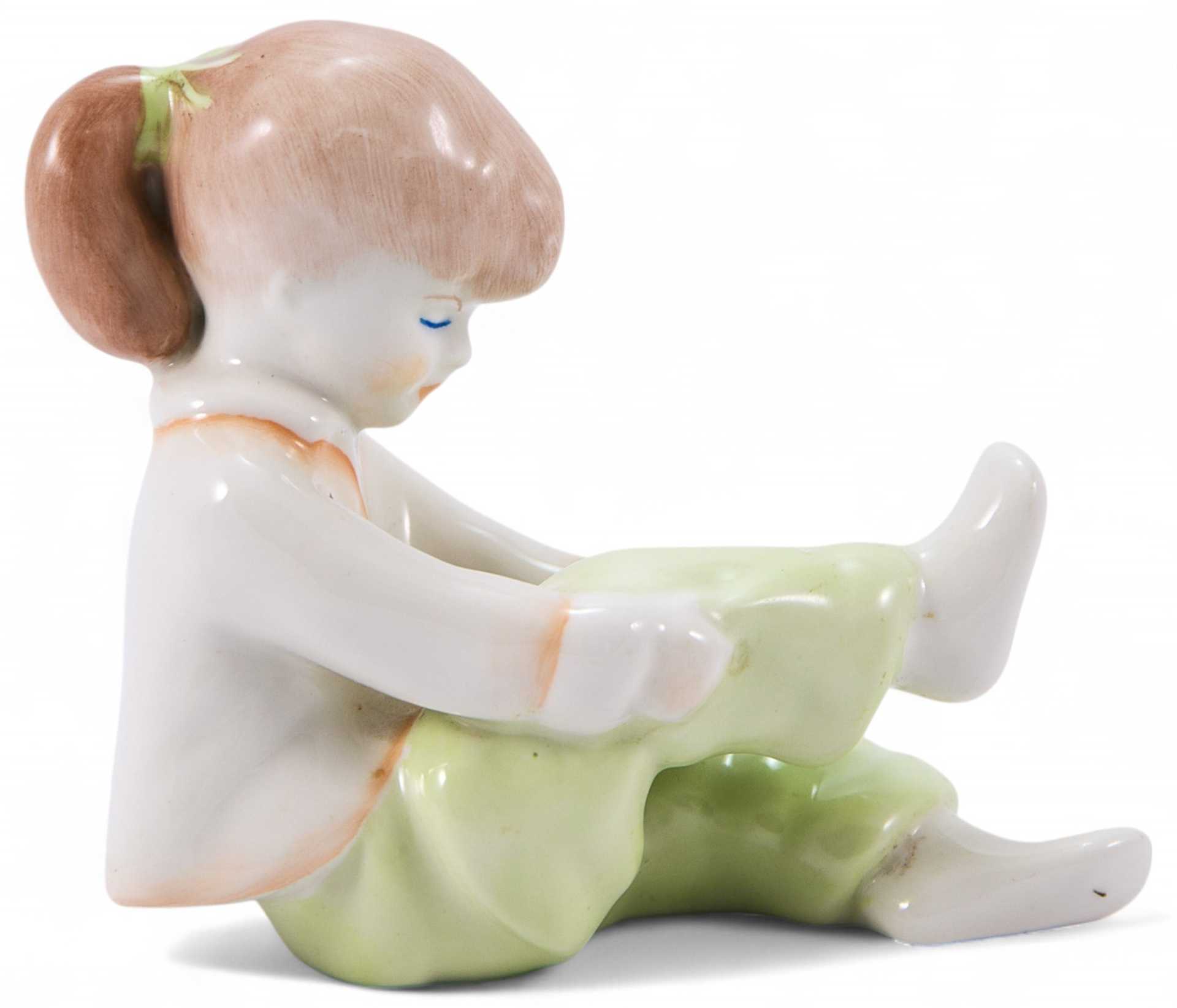 Скульптура Девочка поправляющая штаны фарфор Акуинкум (Aquincum) Венгрия ХХ в. 11х10,5 см. Акуинкум, Венгрия середина ХХ века