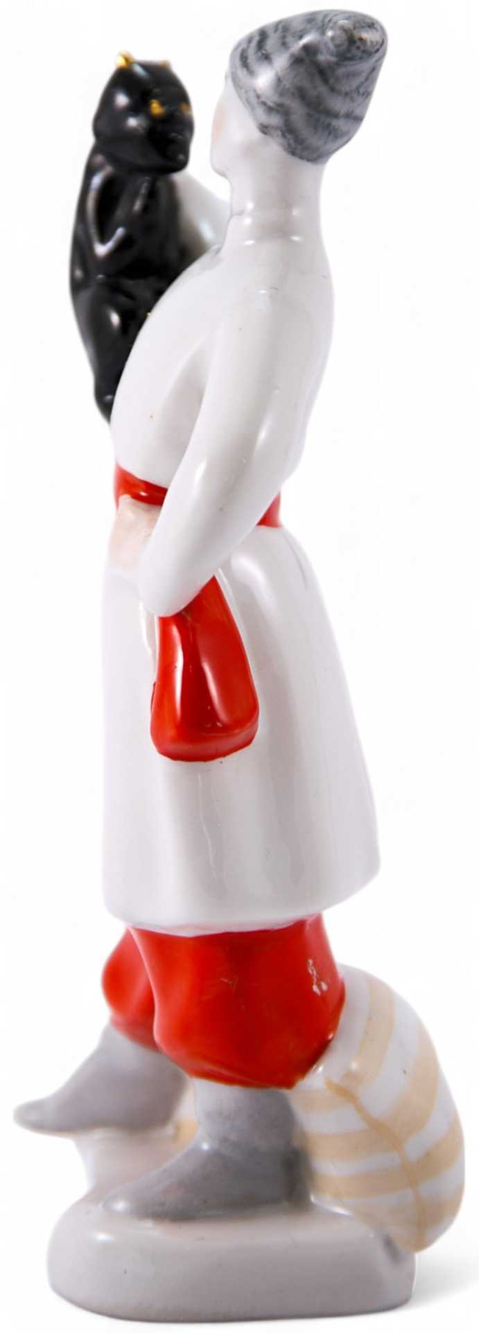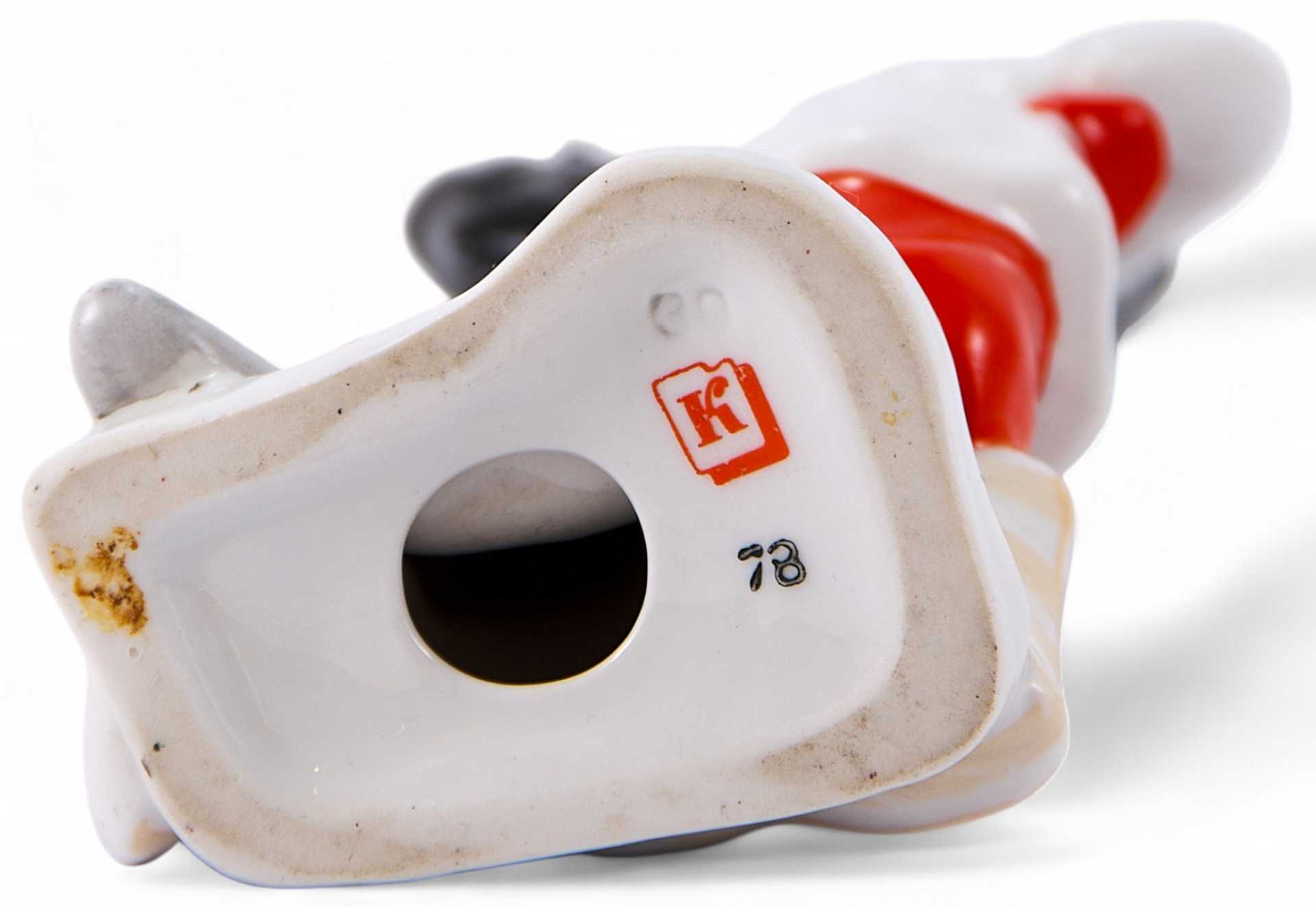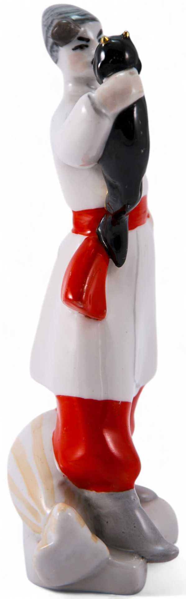 На дне статуэтки присутствует клеймо (красная, печатная литера «К» в книге) Киевского экспериментального керамикохудожественного завода. Подобные клейма ставились на заводе в 60-70-е гг. XX века. Предприятие было основано в 1924 году как мастерская по выпуску посуды с деколью в г. Вишневое Киевской области. После 1945 года создан экспериментальный цех по изготовлению художественного фарфора и фарфоровой скульптуры, куда были приглашены после Второй мировой войны наиболее сильные художники республики. После приватизации завода в июле 1993 г. было создано ОАО «Деффа». В 1999 году на производственной базе ОАО «Деффа» было организовано ООО «Киевский фарфор», которое в настоящее время является одним из крупнейших на Украине производителей ваз, скульптуры, декоративных изделий. Рассматриваемая статуэтка выполнена по мотивам произведения Николая Васильевича Гоголя «Вечера на хуторе близ Диканьки»; отличается высоким уровнем проработки, присутствием характерного яркого колорита и национального духа. Клейма подлинные.