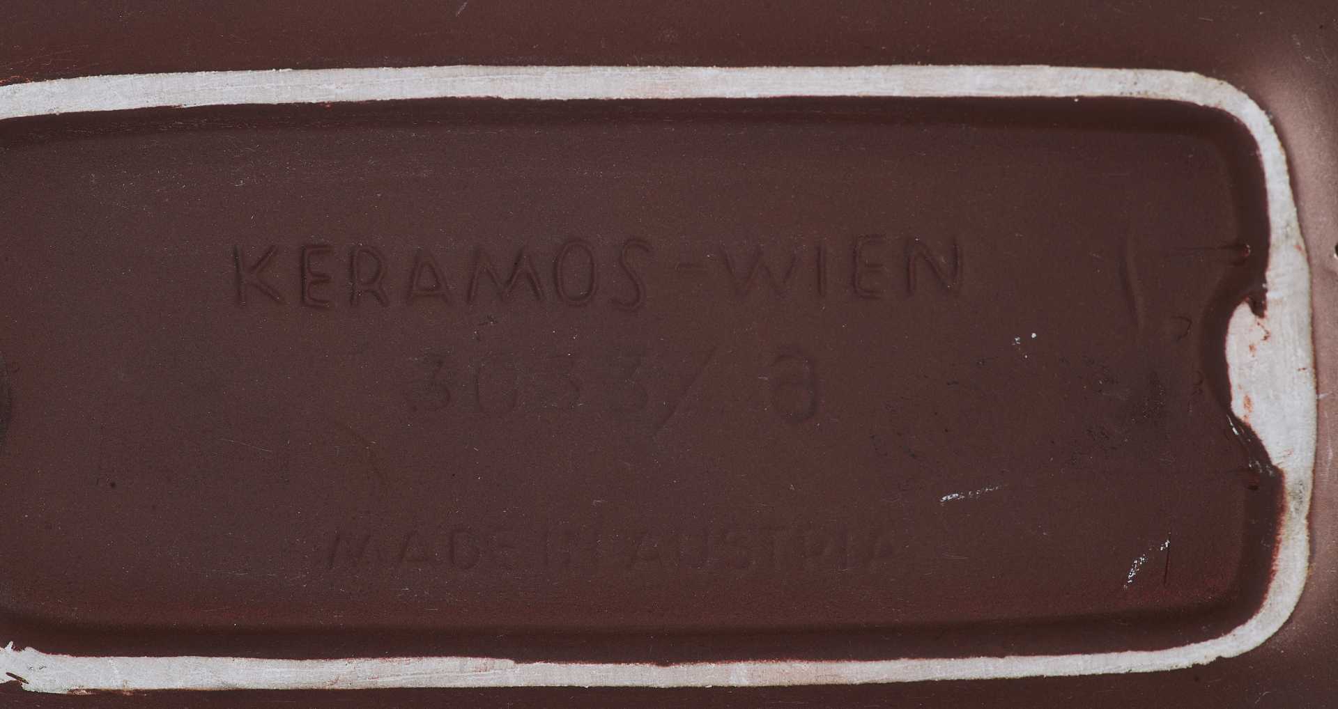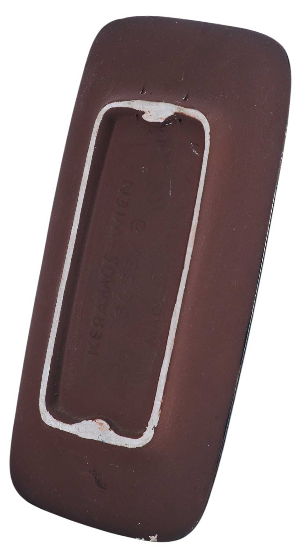 На внутренней (оборотной) стороне панно клеймо: 4‘Keramos-Wien 3033/8 Made in Austria”. Панно изготовлено на венской фабрике “Keramos” «Keramos» (Wiener Kunst-Keramik und Porzellanmanufaktur). Венская фабрика художественной керамики и фарфора была основана в 1910 году несколькими акционерами, финансово поддержанными государством. Затем фабрика преобразуется в открытое акционерное общество с директором Отто Коллером и Рудольфом Вольфом и Генрихом Вольфом. Компания находилась в знаменитом Хофбурге (ранее зимней резиденции Габсбургов). Производство находилось в Вене, на Schleiergasse 17.