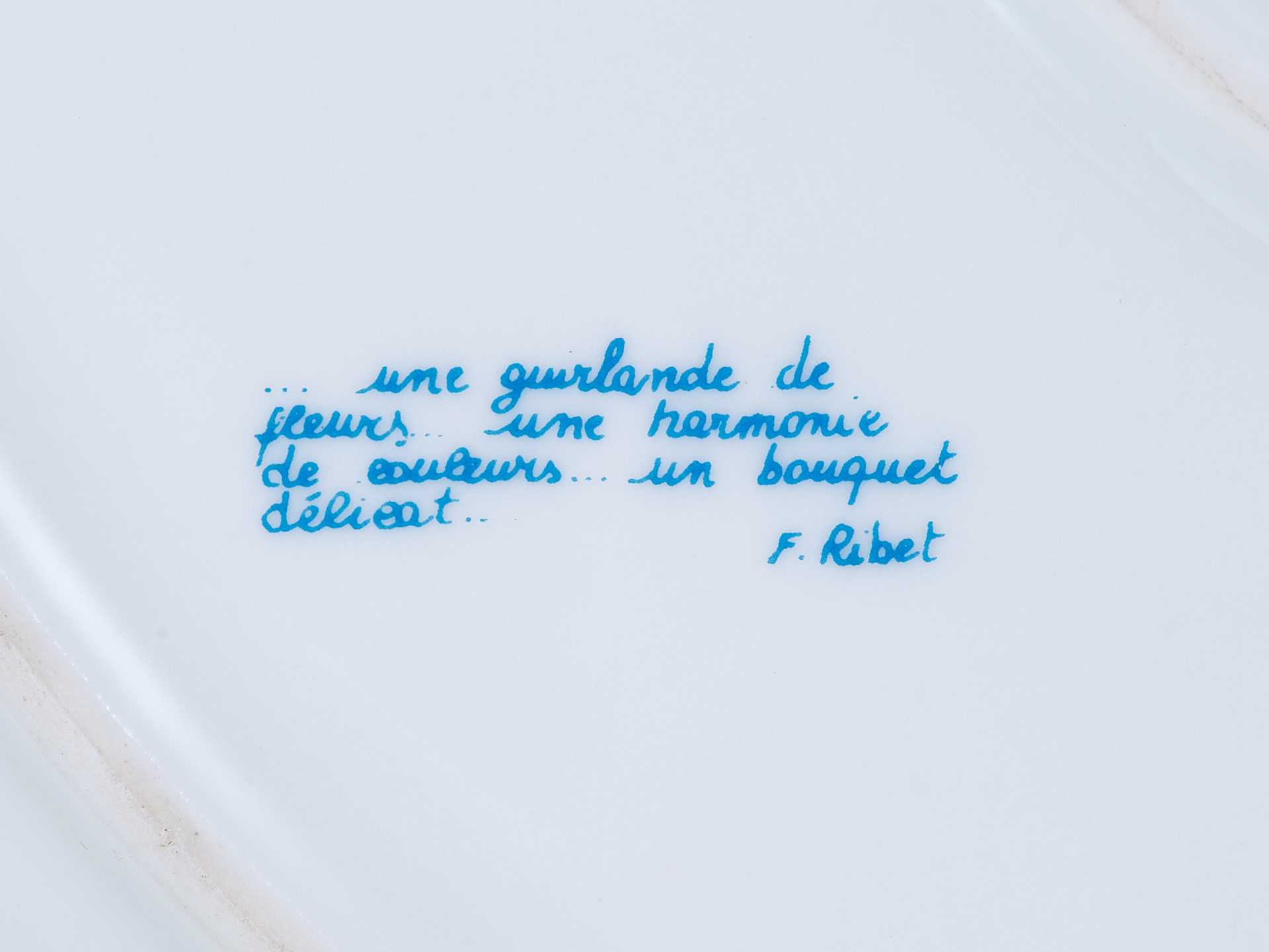 2. Надпись: «... une geurlande de fleurs ... une harmonie de euleurs ... un bouquet delieat / F. Rebet»