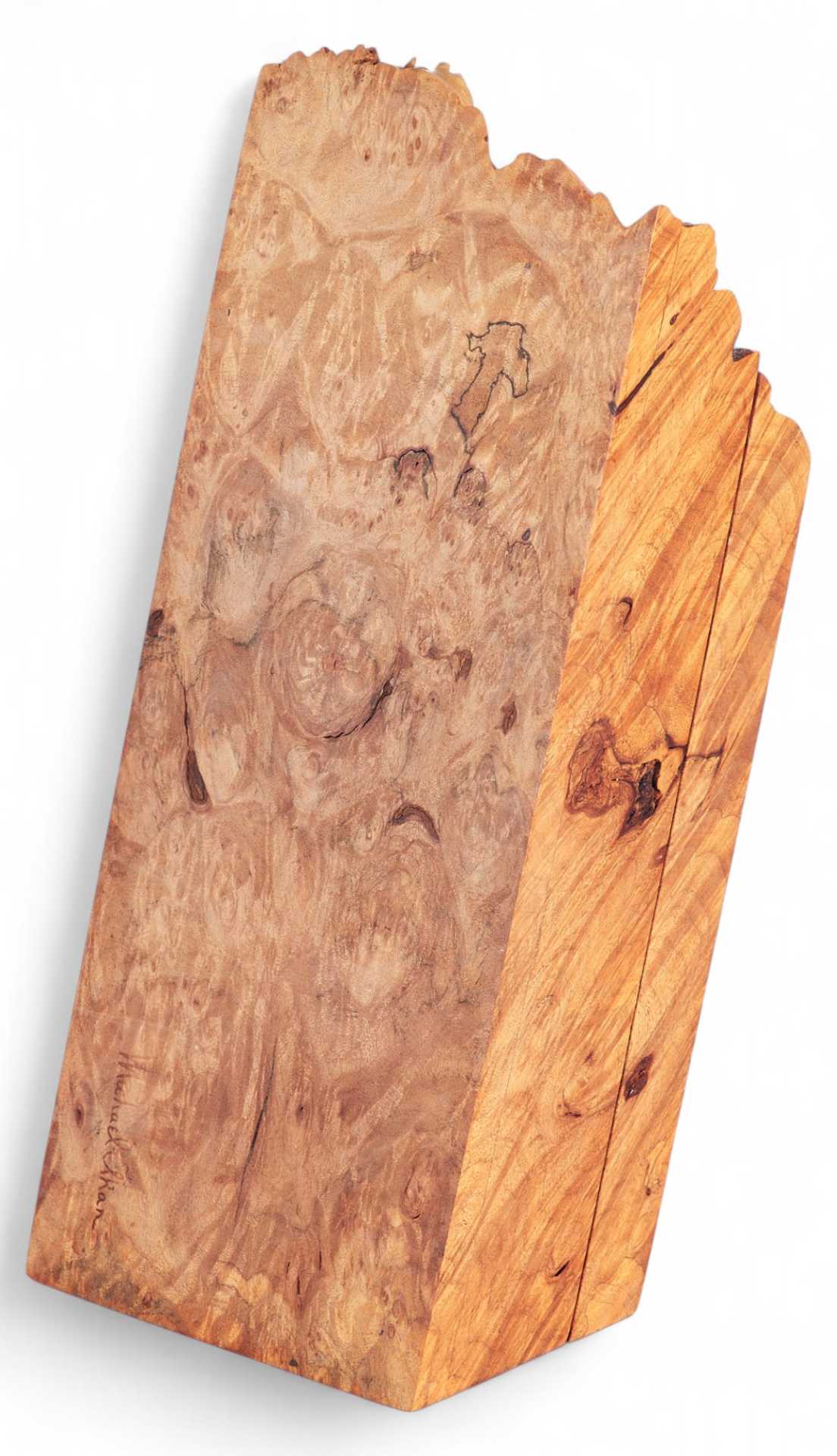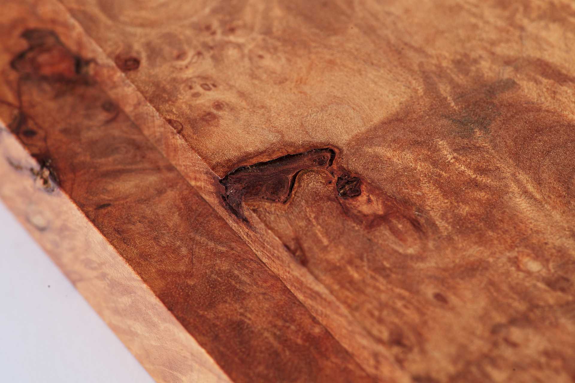 Кап — наросты и утолщения, которые встречаются на стволах березы, клена, дуба, ореха, сосны и т. д. Его название происходит от славянского “кап” — голова. И действительно кап напоминает на дереве человеческую голову. Кап встречается на ветвях старых деревьев, на стволах. Также встречается капо-корень, это кап, который образовался у корневой части дерева. Самые крупные капо-корни достигают в диаметре 2 метра. Из капо-кория часто делают мебель. Кап это необычайно прочный и чрезвычайно декоративный материал, который ценится наравне с древесиной ценных пород. Тексту-ра его рисунка на распиле — это переплетение годичных слоев, сердцевины спящих почек в виде концентрических кругов и темных точек. Из капа изготавливают красивые шкатулки, курительные трубки, рукоятки для ножей. А также из капа получаются декоративные вазы, подсвечники, скульптуры и т. д. Декоративные изделия из капа призваны производить на окружающих выразительный визуальный и смысловой эффект.