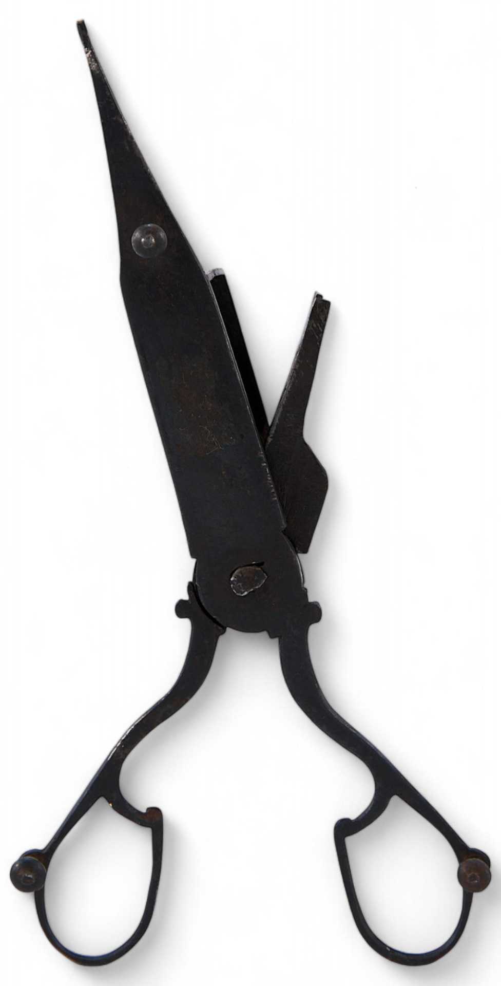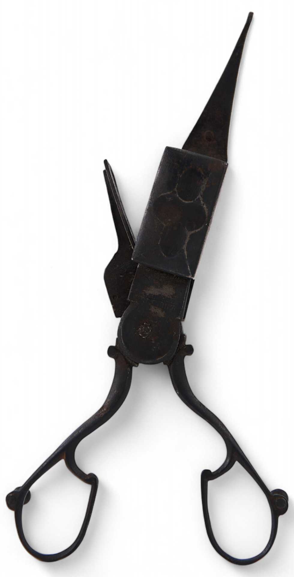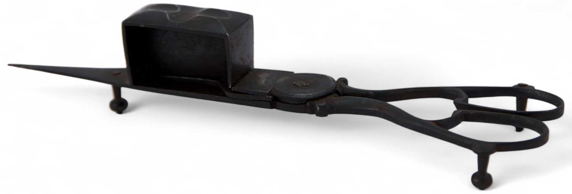 снятия нагара с фитиля свечи. Клеймо подлинное. Его наличие, а также стилистические особенности предмета и состояние материала позволяют сделать вывод, что съемы были изготовлены в России, до начала XX века.