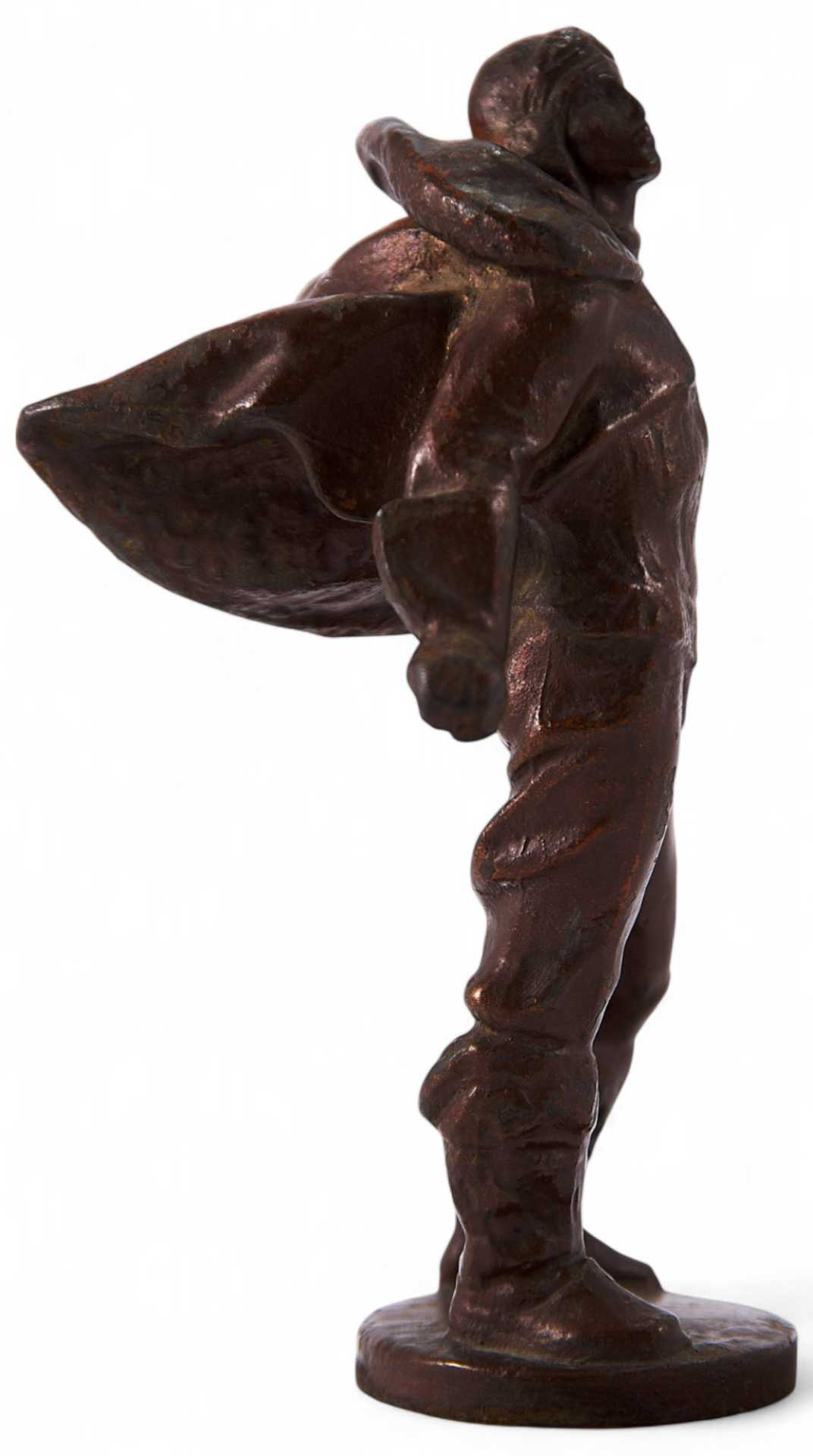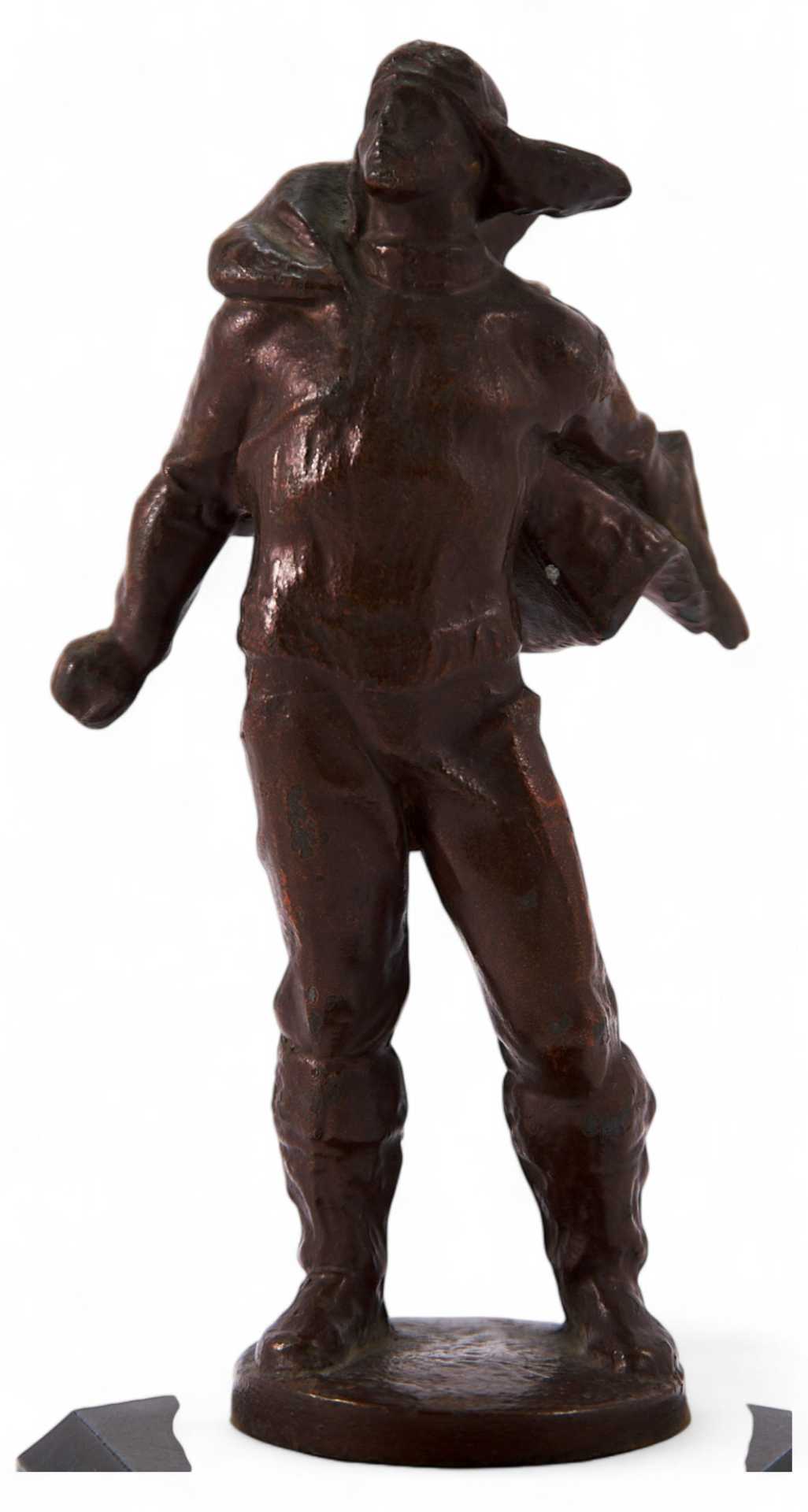 Фигура молодого мужчины в шлеме, развевающейся авиаторских унтах. На надписью: “памятник Саранск”