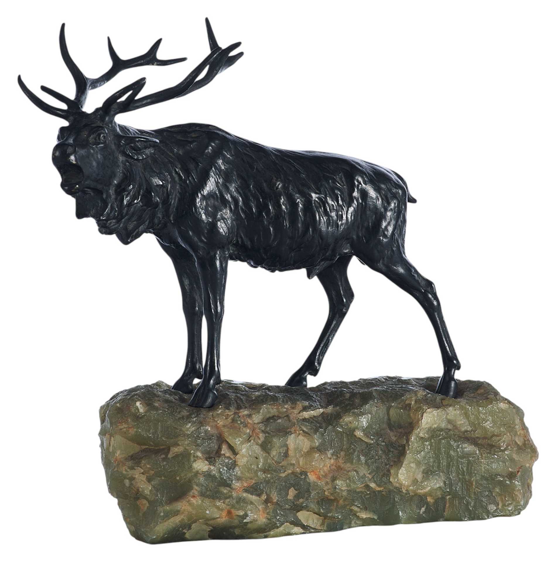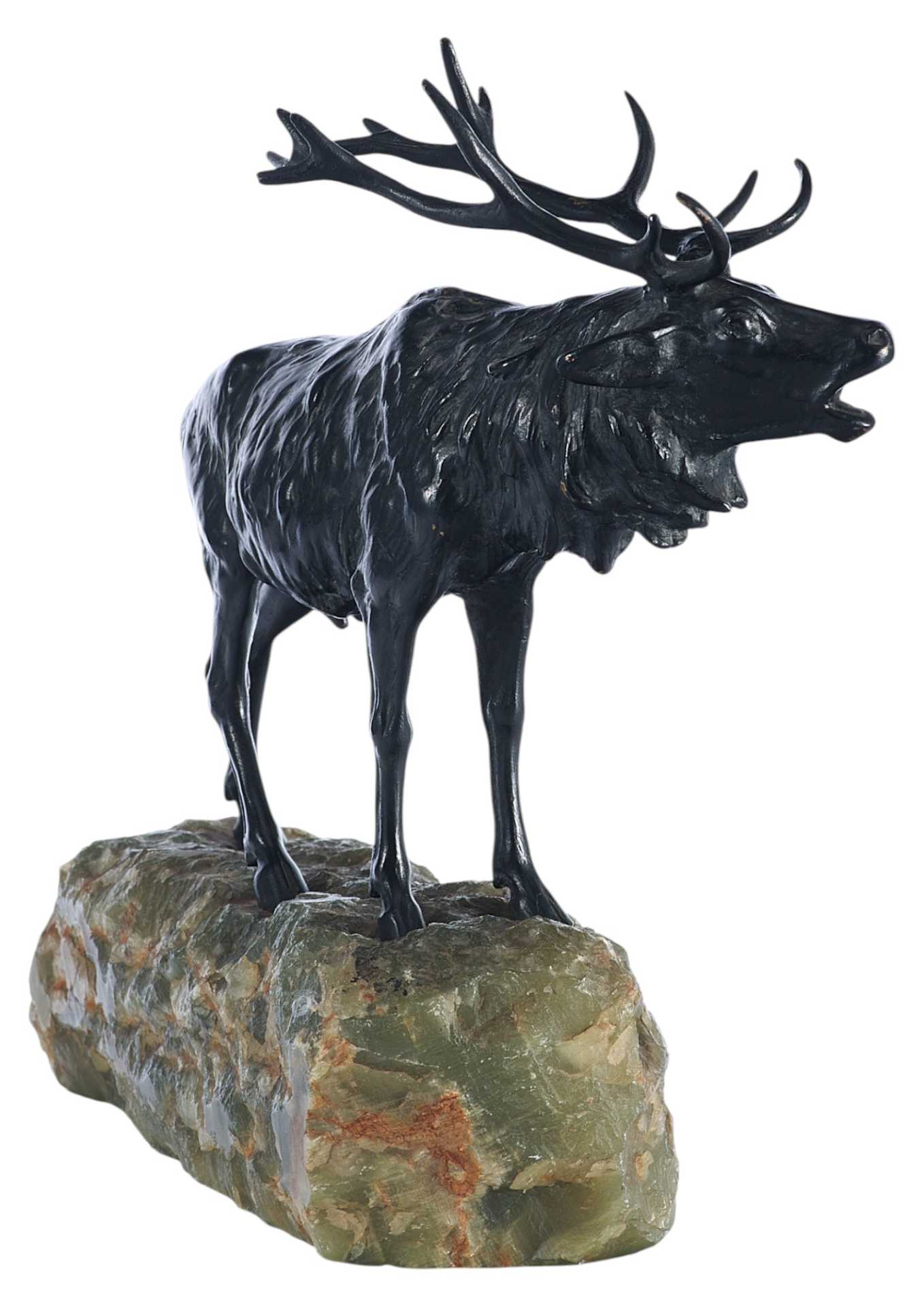 Скульптура ревущего оленя. Скульптура представляет собой типичный пример венской «бронзовой» пластики, отлитой по модели австрийского скульптора-анималиста Рудольфа Биндера. Венскую бронзу — скульптурную миниатюру, анималистику, небольшого размера жанровые композиции в духе «ориенталь», «кабинетную» эротическую бронзу «с секретом» — искренне любили и коллекционировали самые широкие слои населения с начала ее производства в Австрии, с середины XIX века.
