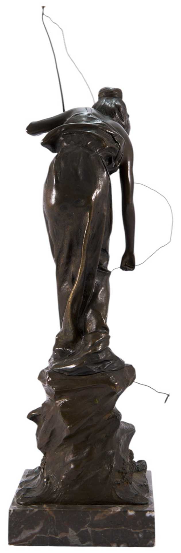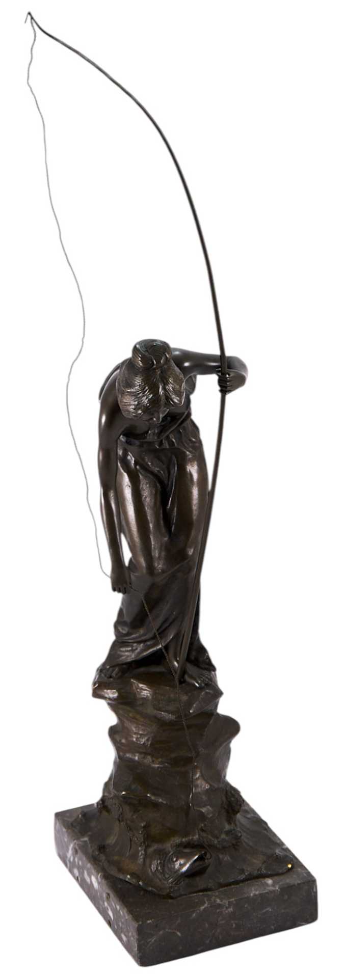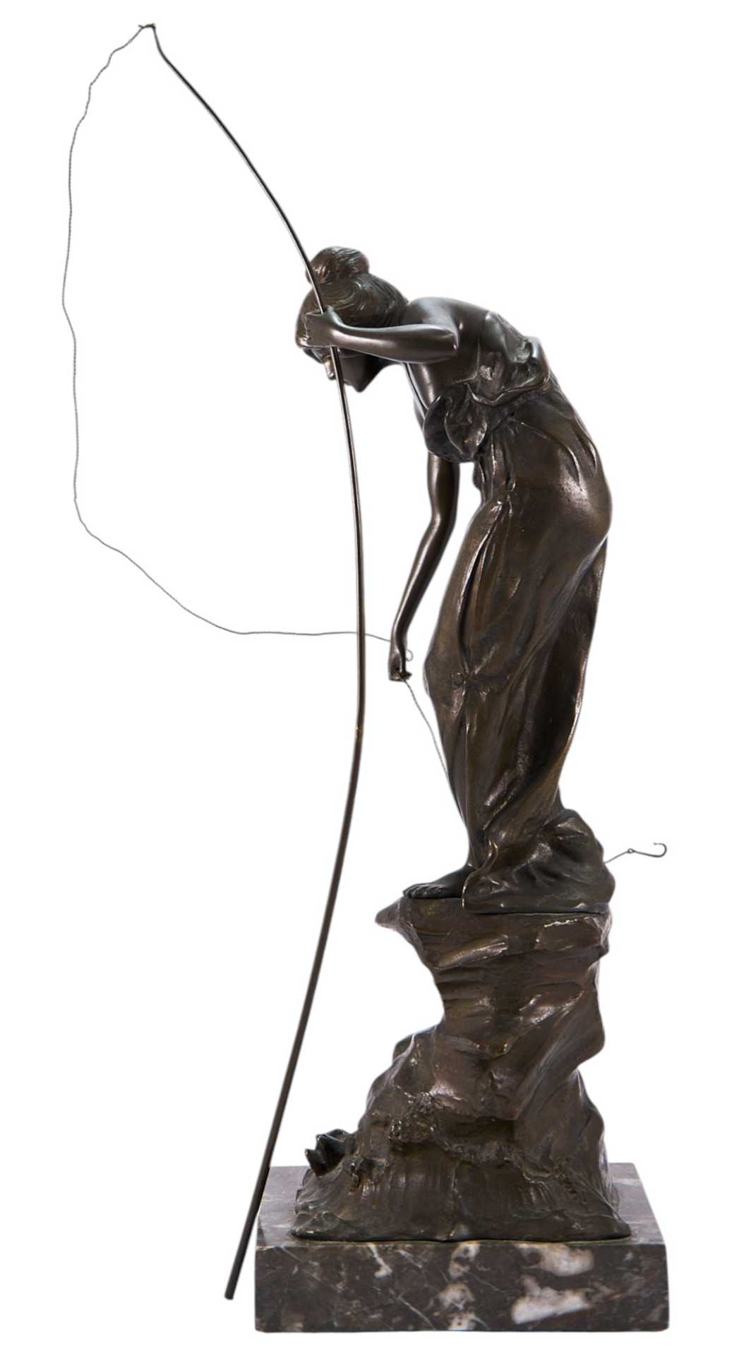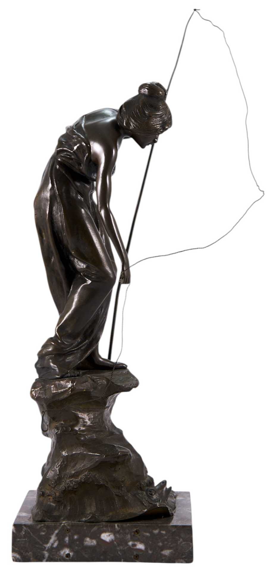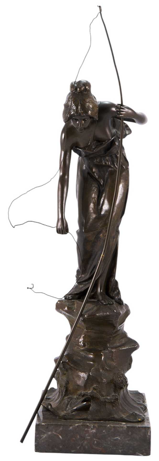 Скульптура женщины в платье, ловящей рыбу. Модель скульптуры соотносится с одноименной композицией австрийского скульптора Виктора Хайнриха Зайферта. Нередко эта модель отливалась как обнаженная с удочкой, либо скульптура