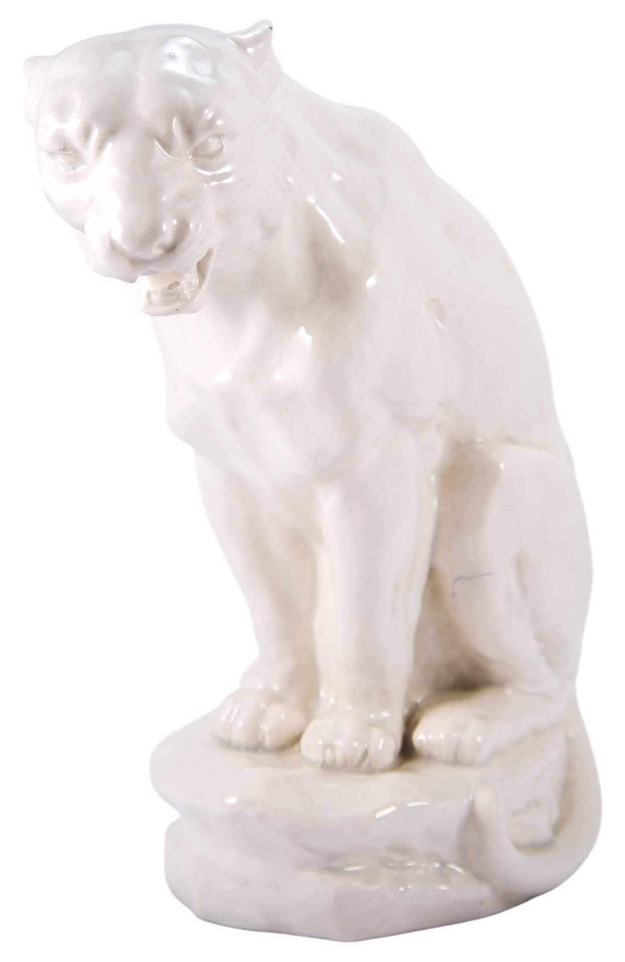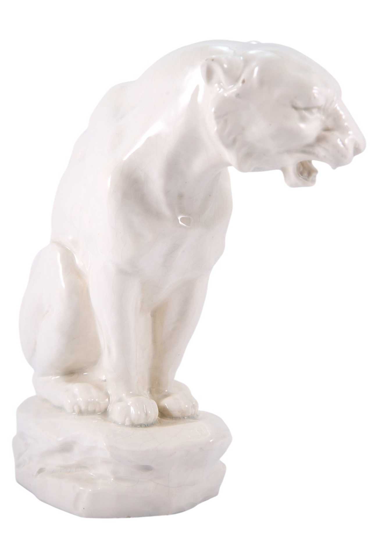 Скульптура Сидящая львица фаянс, Германия (?) 1920-30-е гг. Н-29,5 см. Германия.(?) первая половина XX века