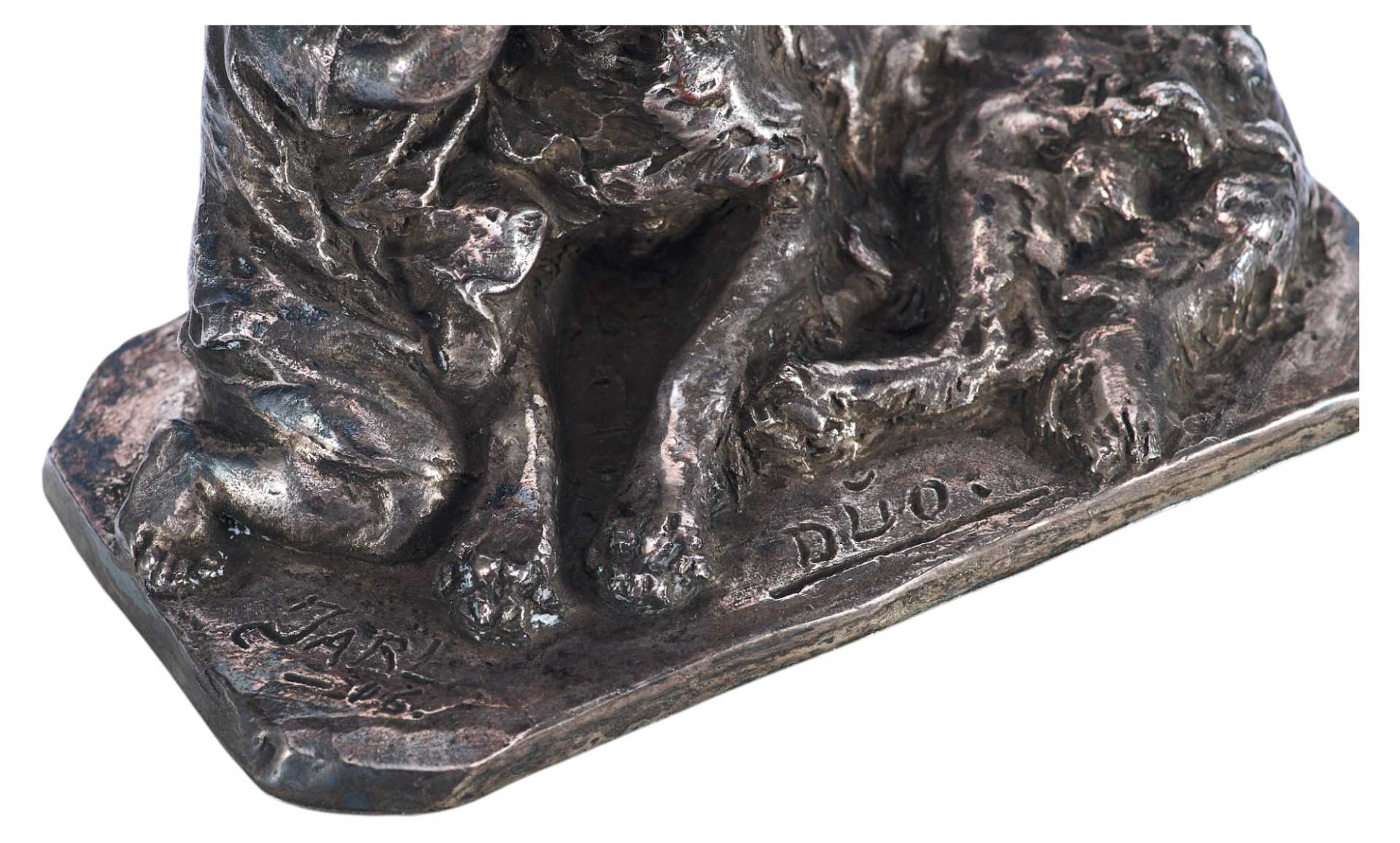 Скульптурная пластика стилистически близка направлению экспрессионизма в европейском искусстве. На основании скульптуры название: «Düo». Рядом воспроизведена подпись автора и датировка: «Jarl 1916». Возможно, что скульптура была изготовлена сыном австрийского скульптора Отто Ярла. Отто Ярл (Otto Jarl, 1856 - 1915) - скульптор шведского происхождения, жил и работал в Австрии. Известен своими моделями животных, которые легли в основу многочисленных скульптурных произведений из бронзы, а также фарфоровых фигур, в том числе, Мейсенской мануфактуры, ROYAL DUX