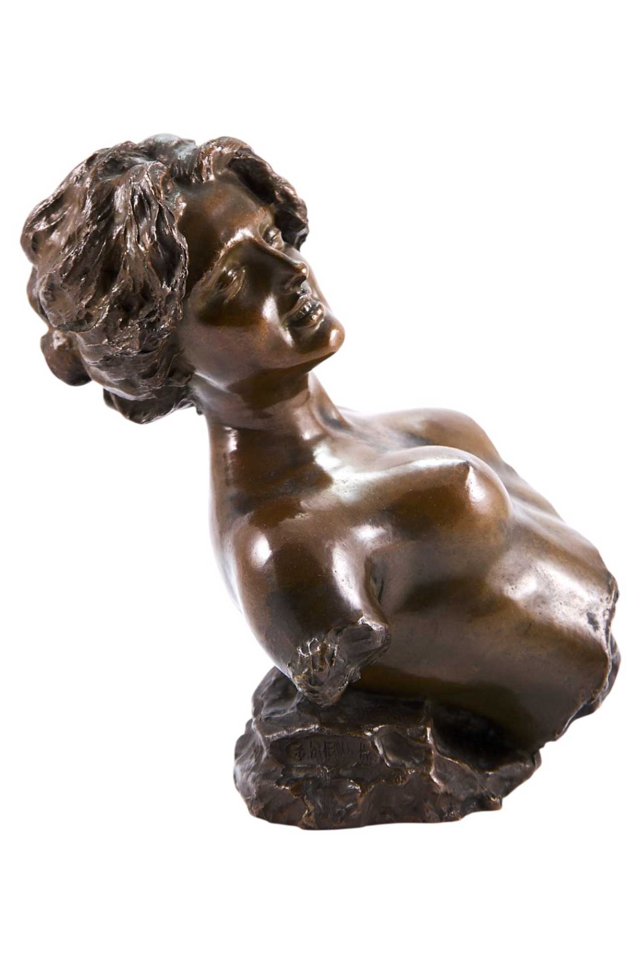 Скульптура — бюст обнаженной женщины, выполненный в бронзе. На основании скульптуры авторская подпись: «G. Renda». Джузеппе Реида (1862-1939).
