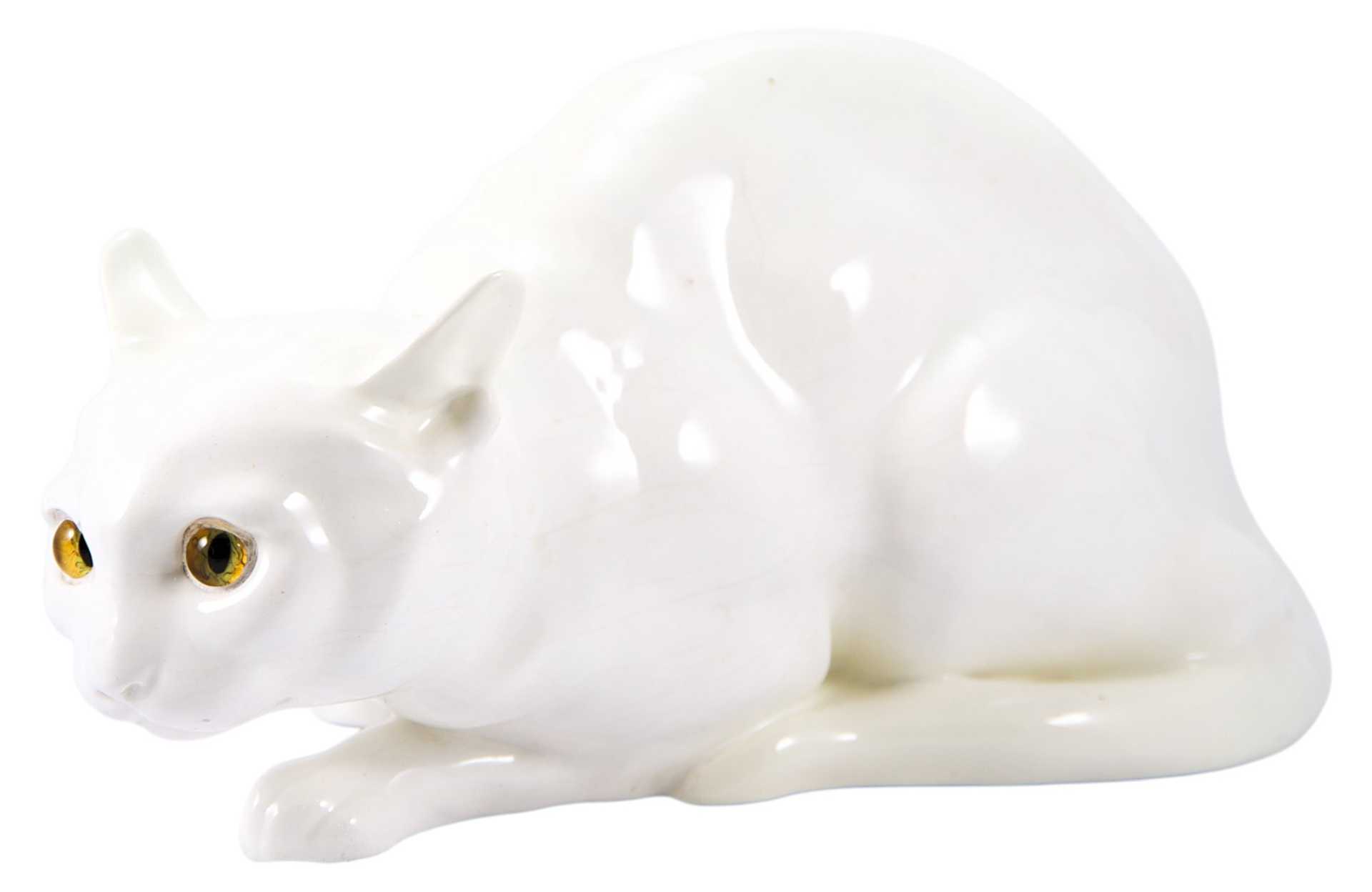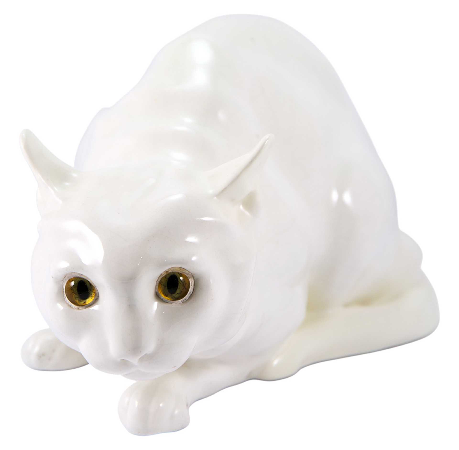 Скульптура Модерн Белая кошка фабр. А. Фёрстера (Busch & Ludescher) Австрия 1906-08 гг Н-21 см. фабрика А. Фёрстера, Австрия 1906-1908 гг