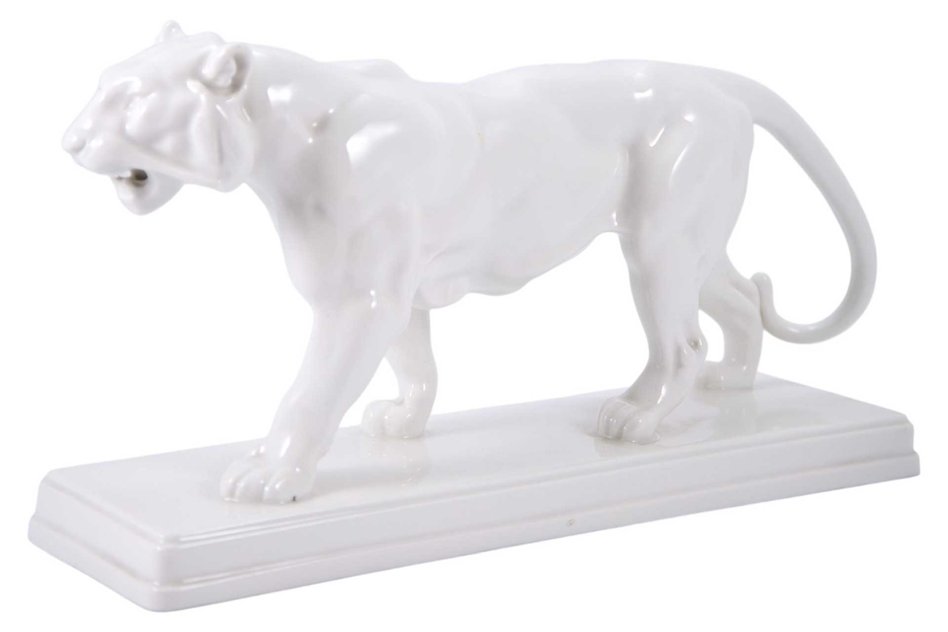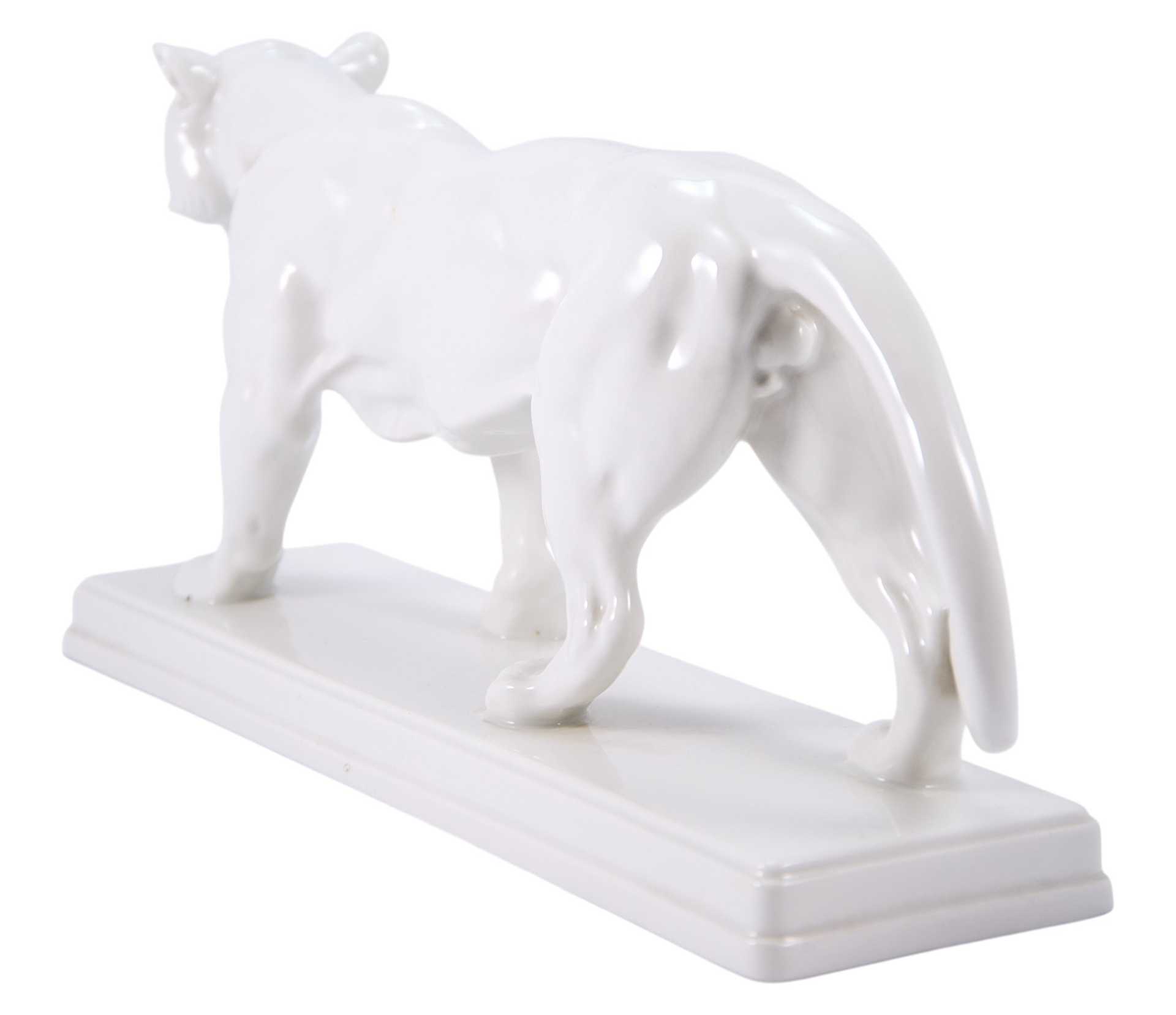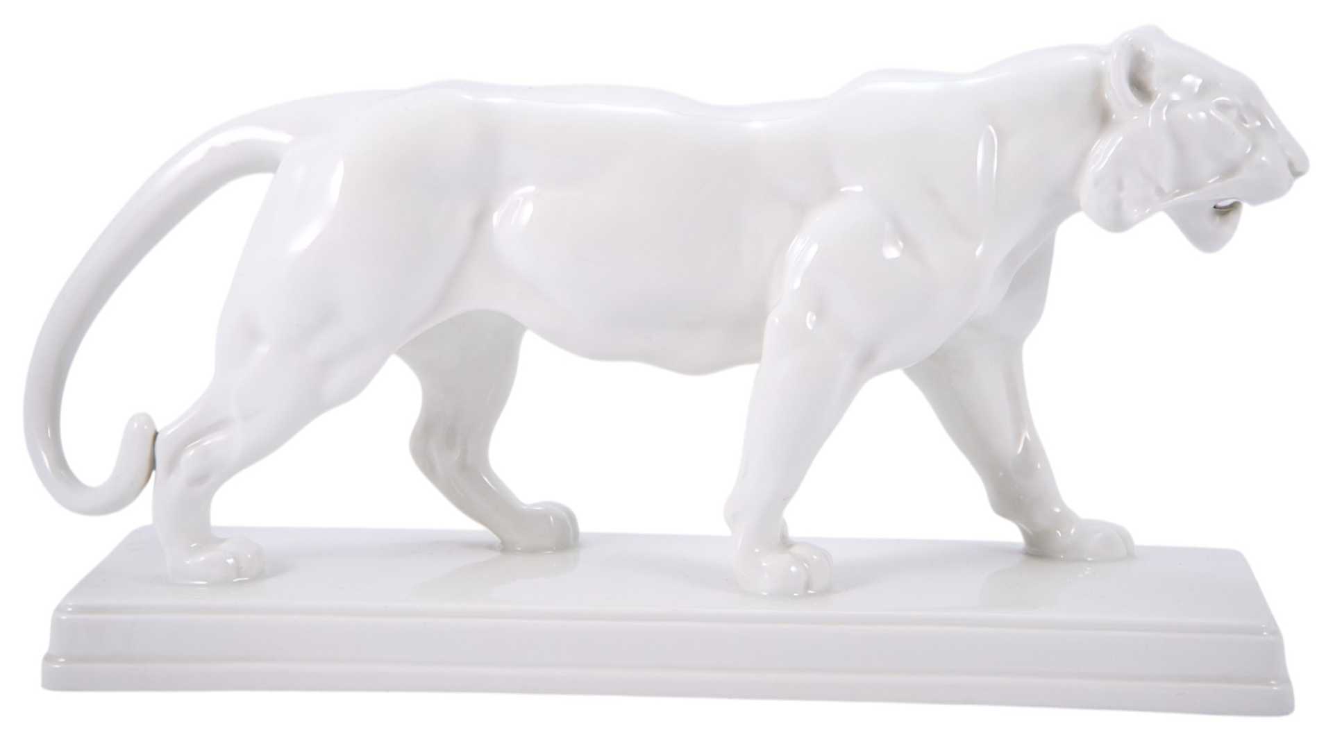 Фарфоровая скульптура шагающей львицы. На основании клеймо Берлинской королевской фарфоровой мануфактуры, ставившееся в XX веке. мАнималистика сочетает в себе естественнонаучные и художественные начала. Главной задачей анималиста может быть, как точность изображения животного, так и художественно-образные характеристики, включая декоративную выразительность или наделение животных присущим людям чертами.