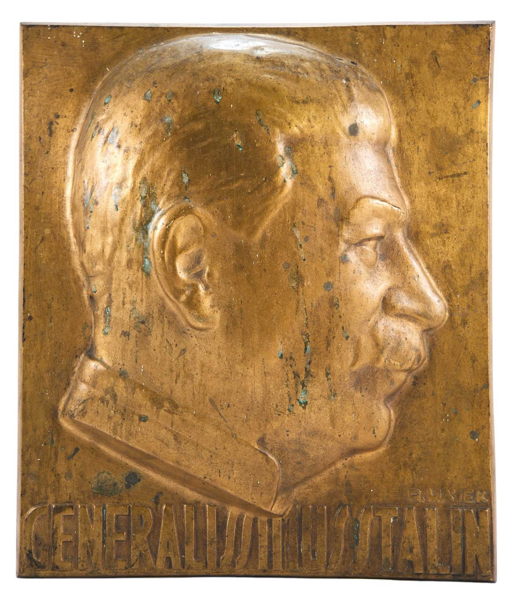 Мемориальная доска с изображением И.В. Сталина, выполненная в виде барельефа. Надписи на доске: «GENERALISSIMUS STALIN» и «R.HAJEK». R.НА'JEK - чешский скульптор, работавший, предположительно, в ателье Я. В. Мыслбека, Л. Салоуна (The ateliers ofJ.V. Myslbek, L. Saloun) и др. По всей видимости специализировался на изготовлении портретов вождей.