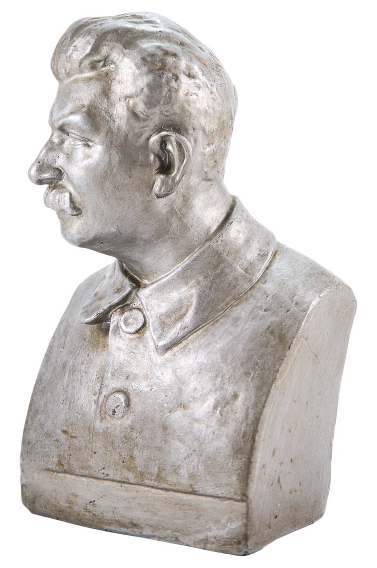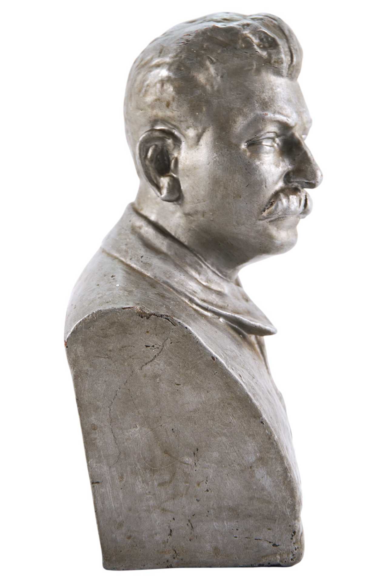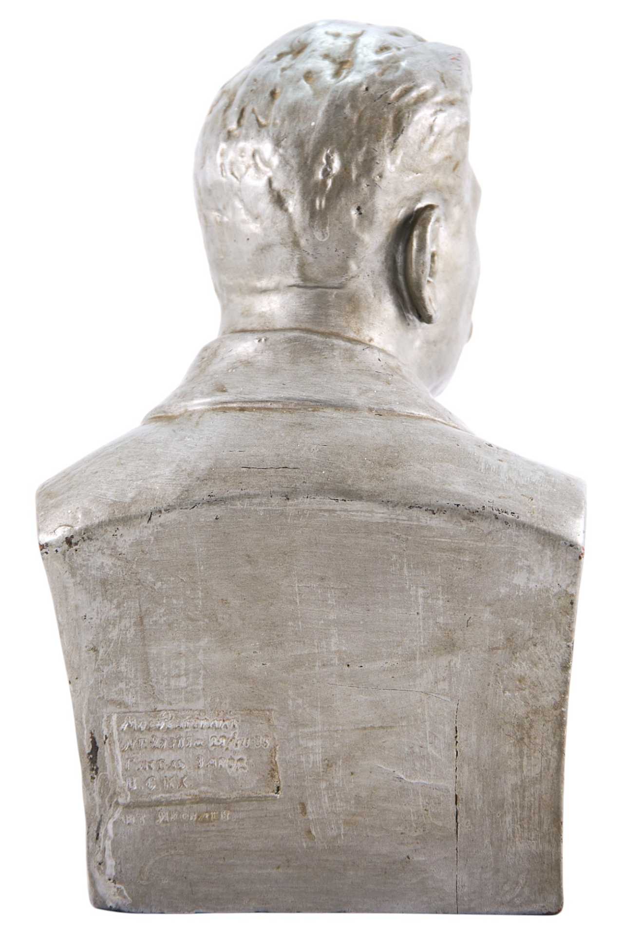 В.С.К.Х. Авт. Яковлев». Бюст представляет собой скульптурное реалистичное изображение Сталина. Образ трактован более мягко и лаконично, чем в стандартном государственном портрете; отсутствует привычная атрибутика: маршальские погоны, орден. Иосиф Виссарионович Сталин (1878 (1879) - 1953 гг.) — советский государственный, политический и военный деятель. Генеральный секретарь Комитета Всесоюзной коммунистической партии (большевиков) с 1922 года, глава Советского Правительства (Председатель Совета Народных Комиссаров с 1941 года, Председатель Совета Министров СССР с 1946 года), Генералиссимус Советского Союза (1945).