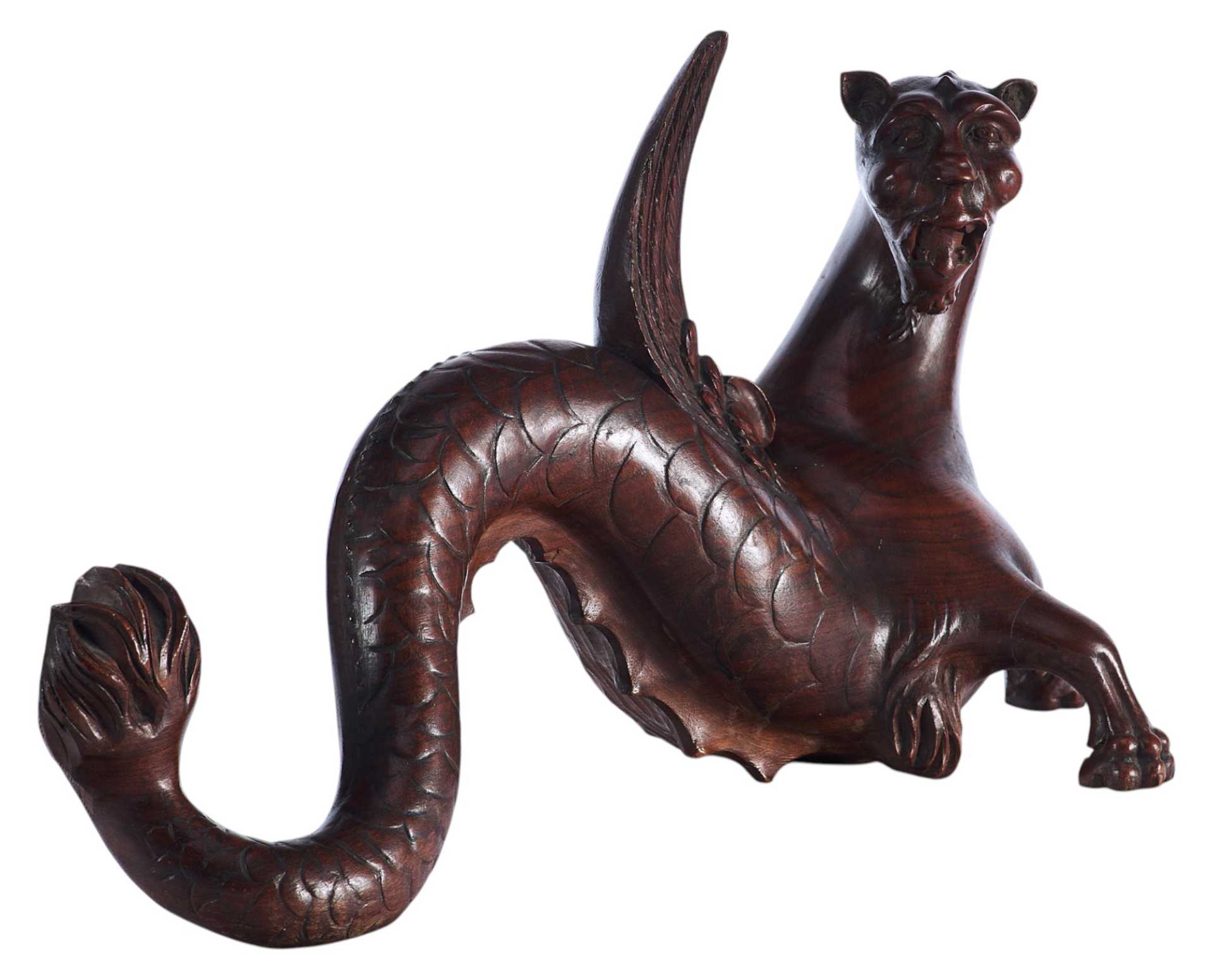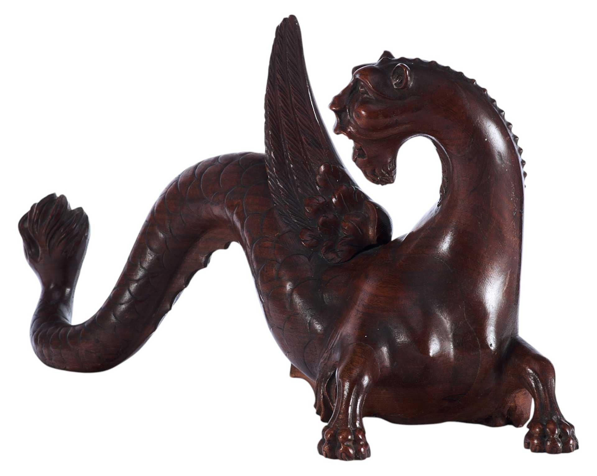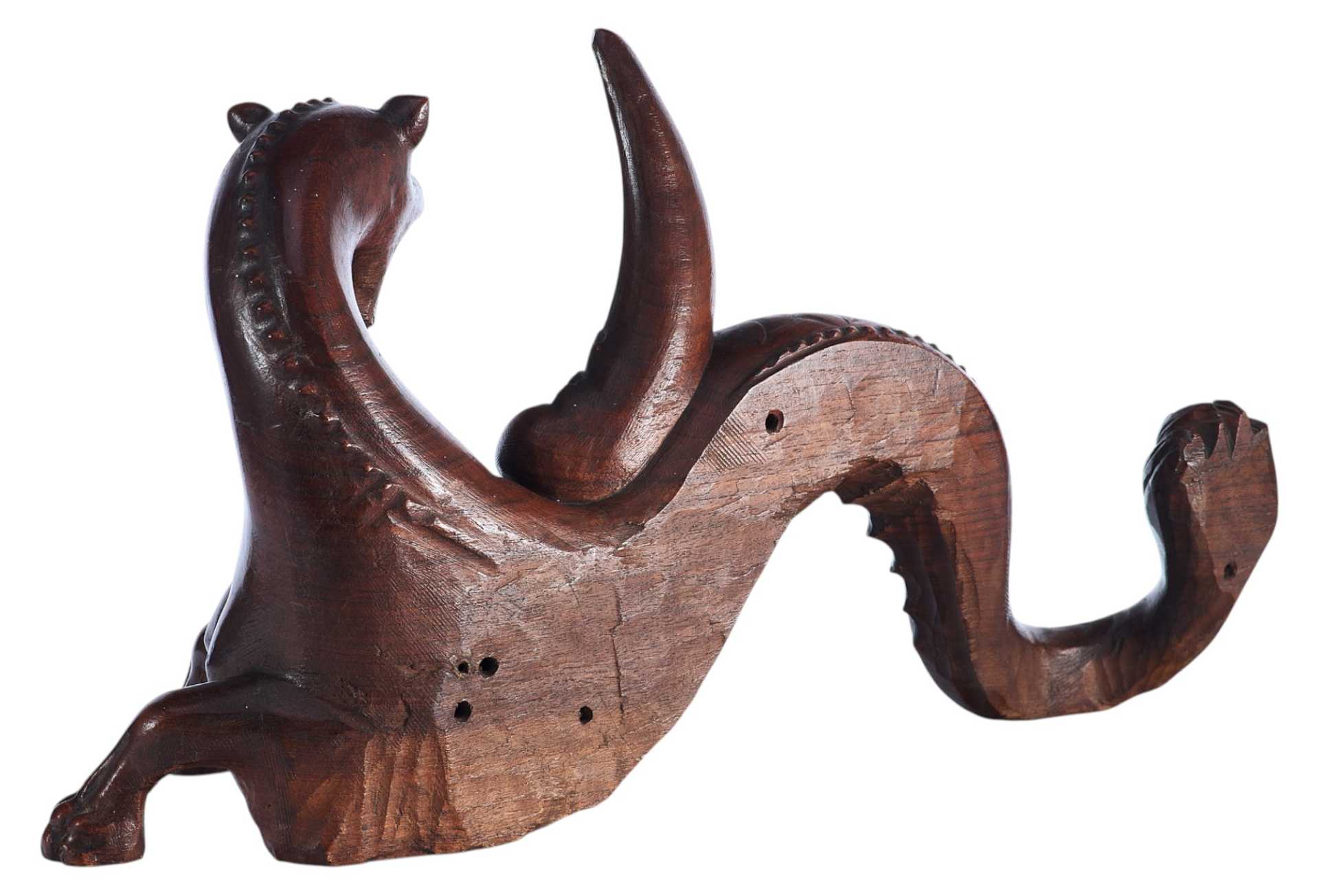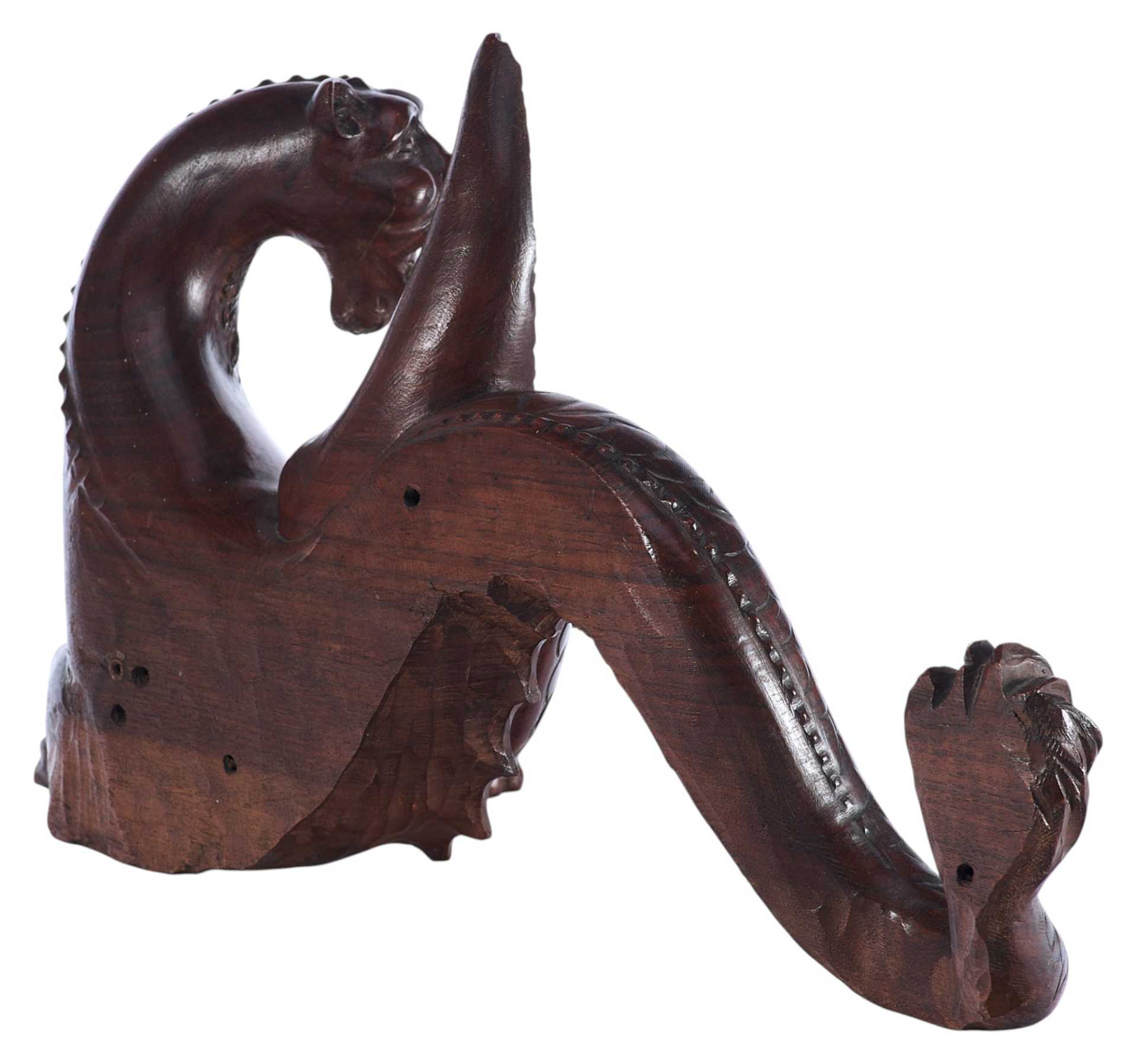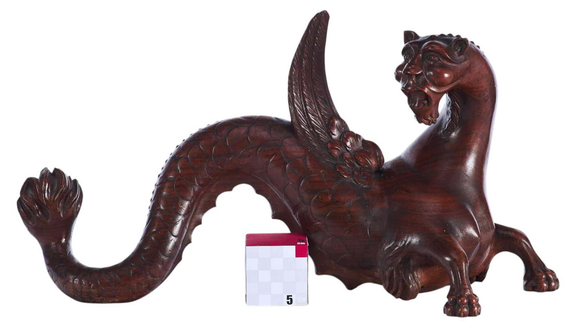 На основании скульптуры три отверстия для крепления. На тыльной стороне шесть отверстий для крепления. Дракон, крылатый (летучий) змей, мифологическое существо, представлявшееся в виде сочетания элементов разных животных,