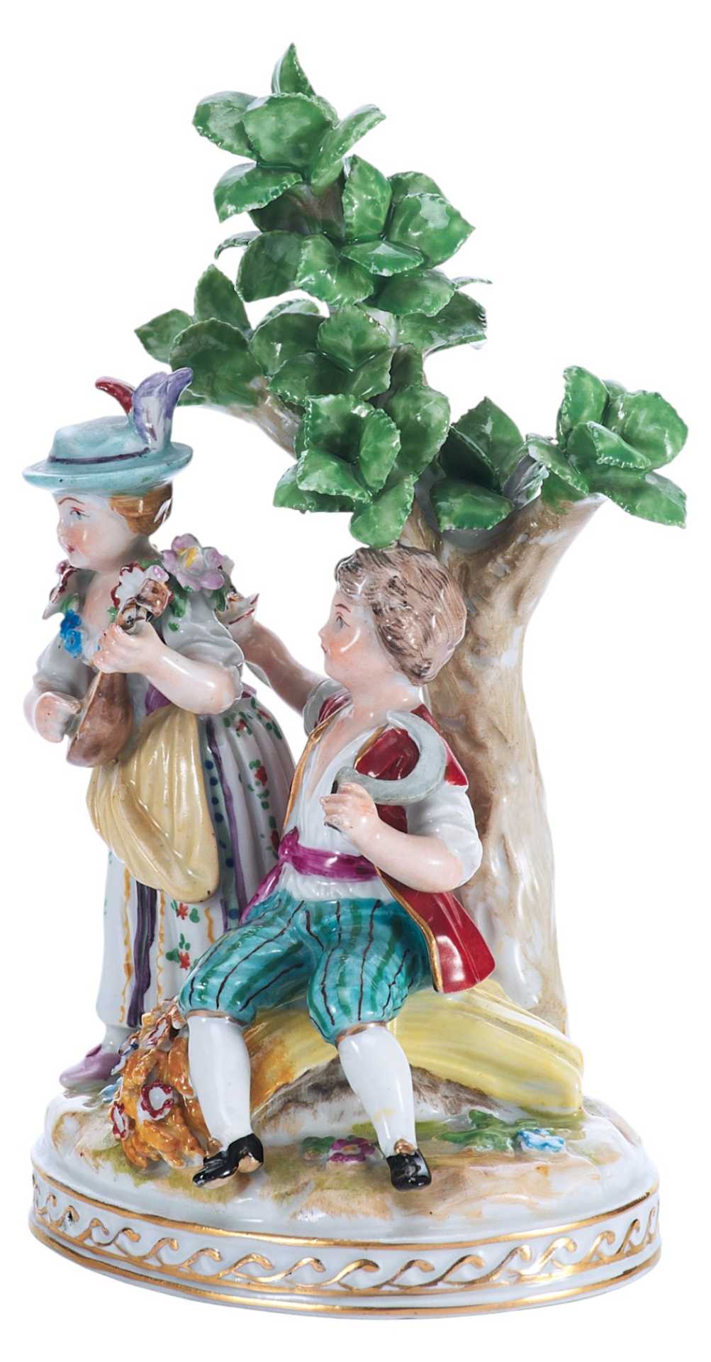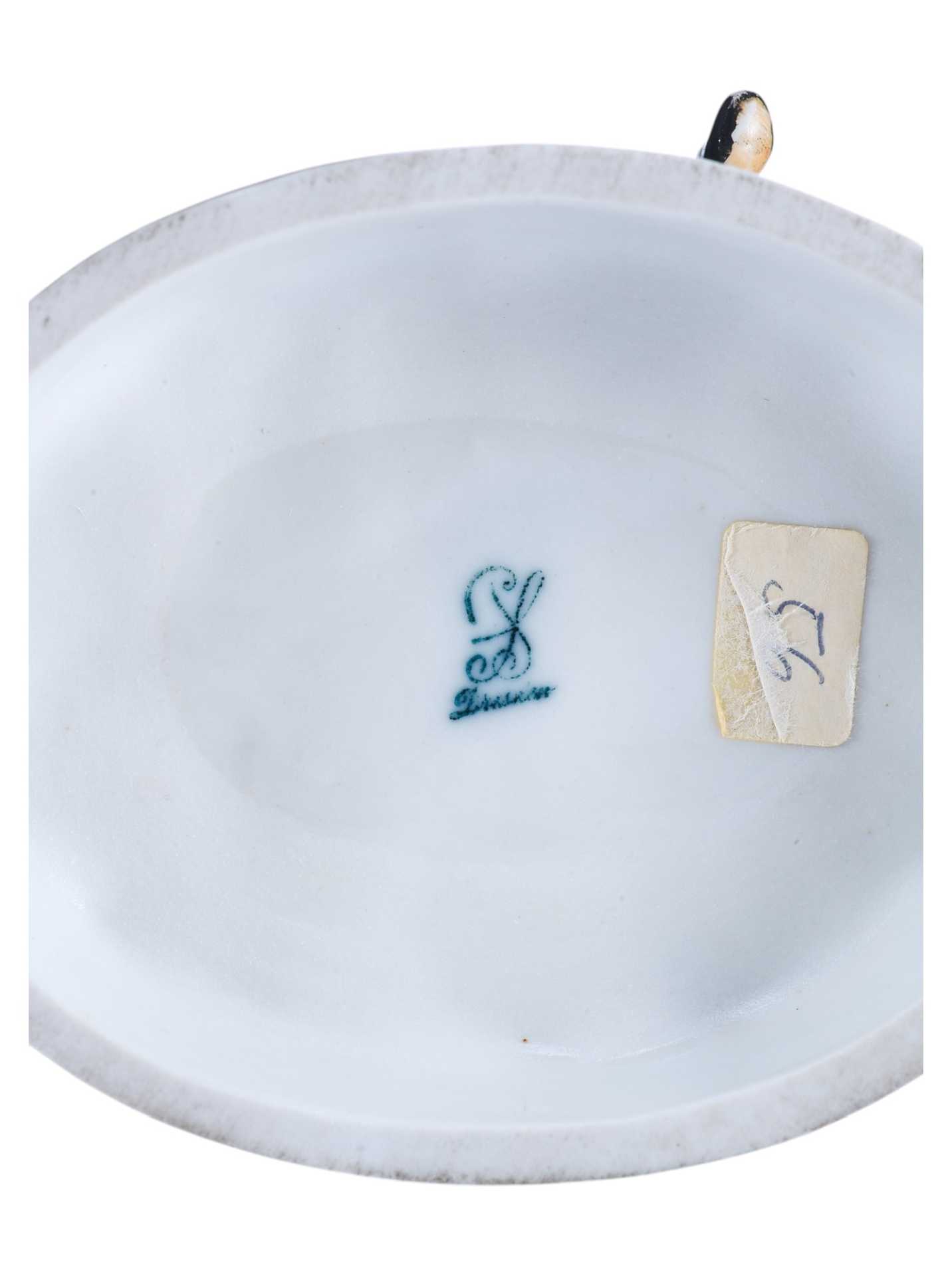 характерно для этого периода времени. На основании фигуры клеймо изготовителя — фарфоровой мануфактуры Sächsische Porzellan-Manufaktur Dresden (Саксония), 1900-х годов Потсшаппель (Германия) Эта фабрика была основана в 1872 году дрезденским художником Карлом Готлибом Тимом (Carl Gottlieb Thieme). Изначально продукцией фабрики был художественный и декоративный фарфор. С 1888г., после смерти Тима, фабрику возглавил один из его выдающихся художников Karl August Kuntzsch. Он сделал эту мануфактуру известной, с успехом представив её продукцию в США и