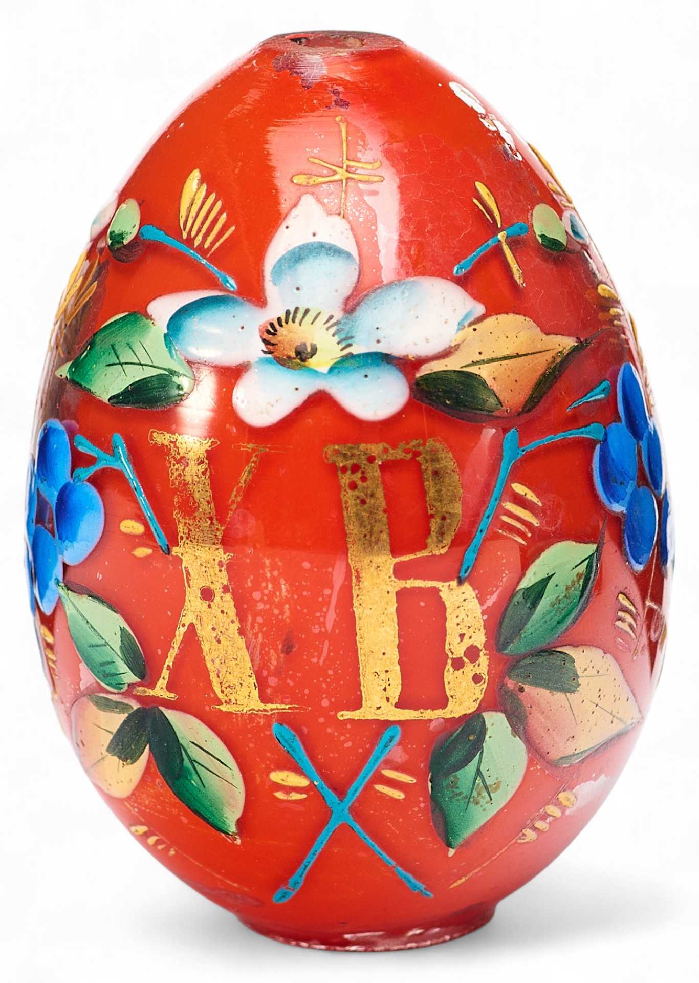 Яйцо пасхальное, в центре золотистые буквы “ХВ” Россия конец XIX - начало XX вв