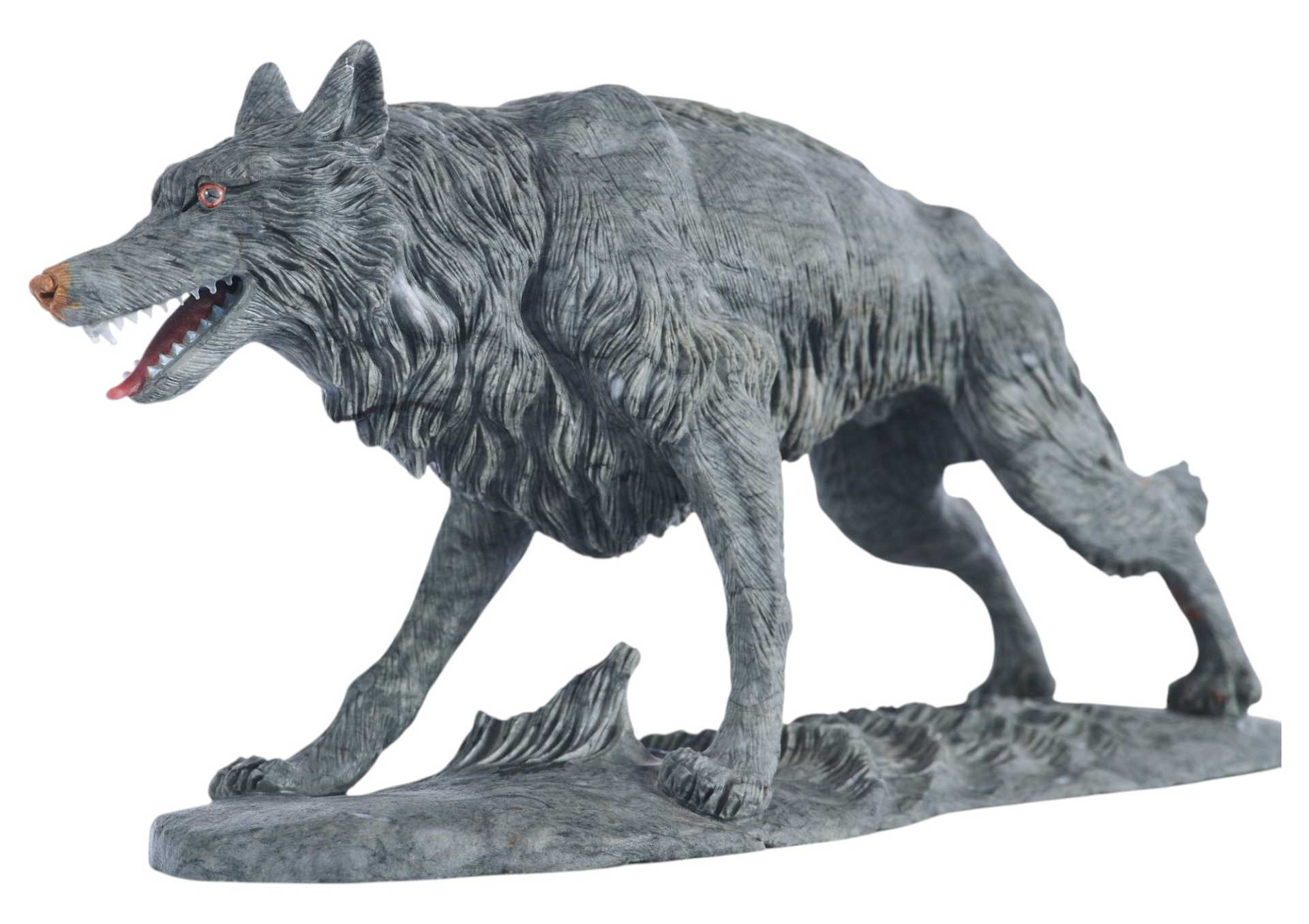 Удачно передан характер, образ дикого зверя. Скульптор уверенно обращается с материалом - мягким, податливым к инструменту стеатитом, известным своими лечебными и эзотерическими свойствами. В целом статуэтка выполнена на очень хорошем техническом уровне. В европейском фольклоре волк традиционно ассоциируется со свирепостью, коварством, жадностью, жестокостью, тогда как в восточной культуре он чаще выступает в роли тотемного животногопрародителя, храброго, заботящегося о потомстве.