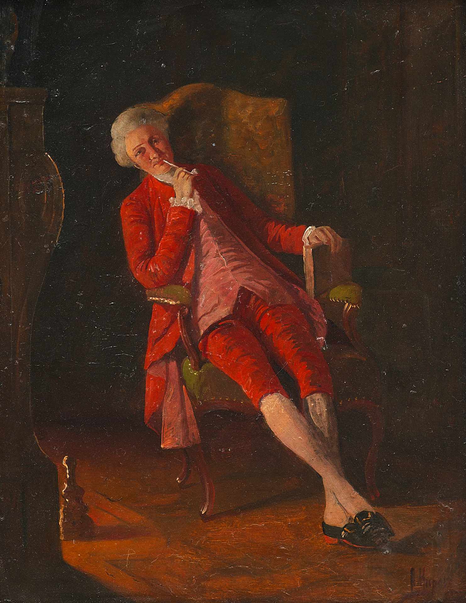 Картина "Портрет кавалера с трубкой и книгой" Европа Последняя четверть XIX века