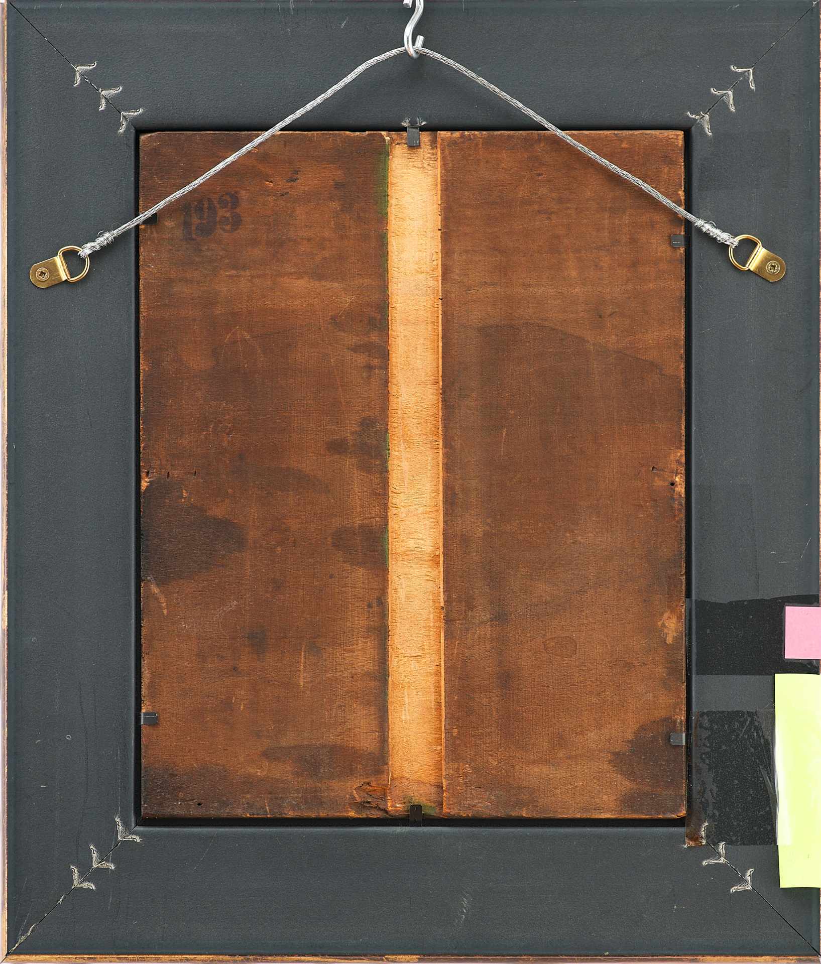 Справа внизу авторская подпись: "А. Кпоор" - выполнена по сухому красочному слою, выявляет общий с живописью характер старения, является авторской.