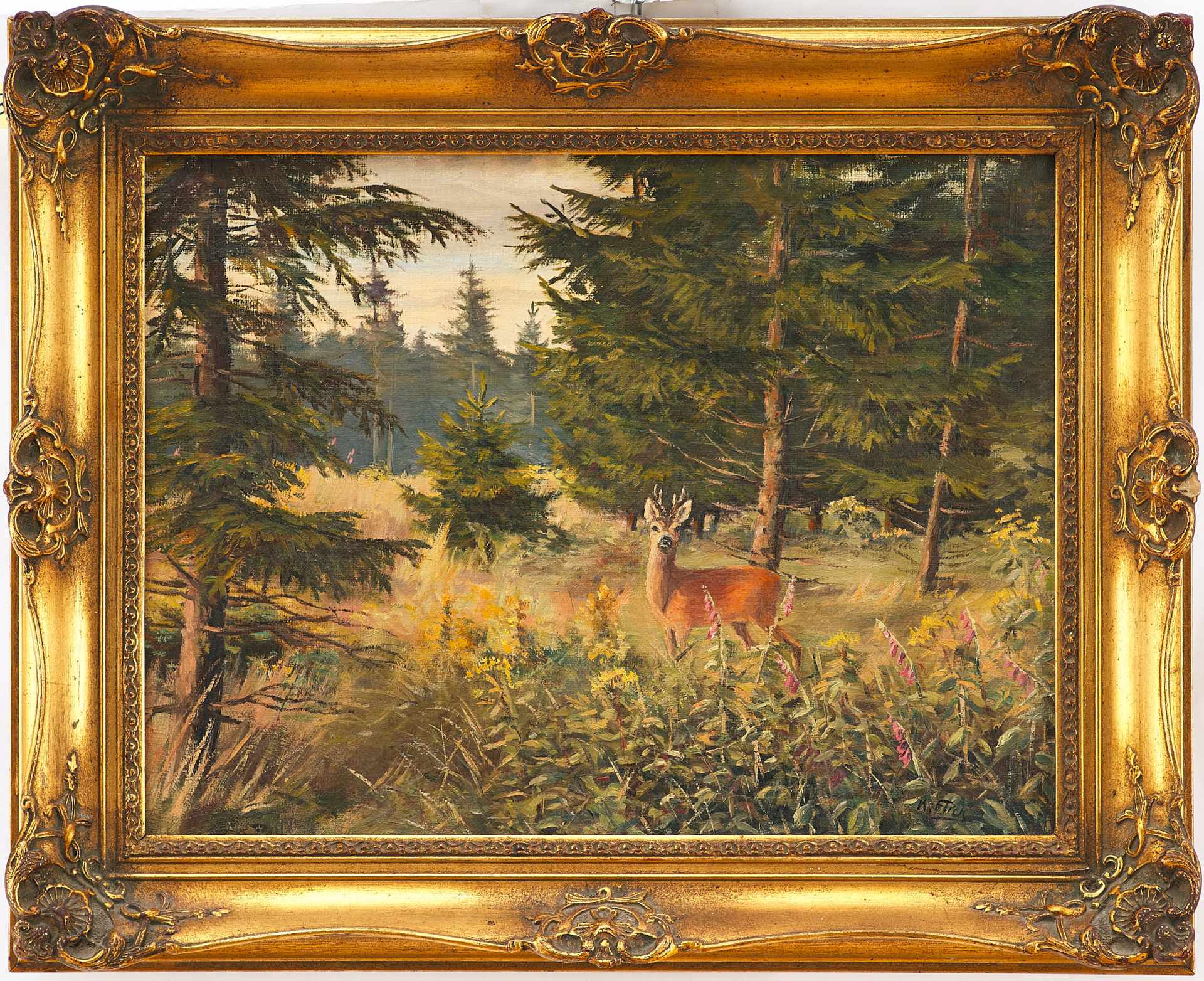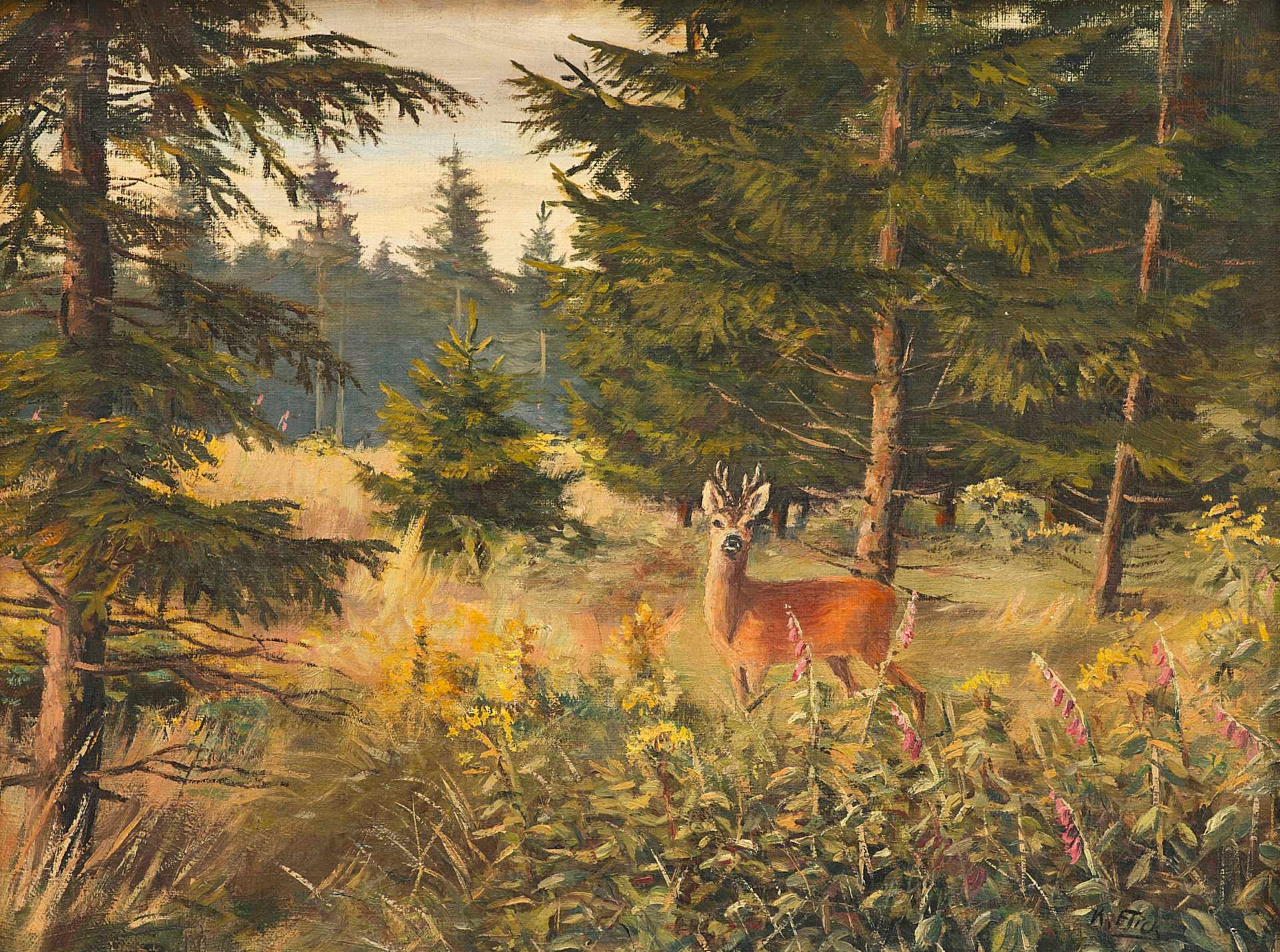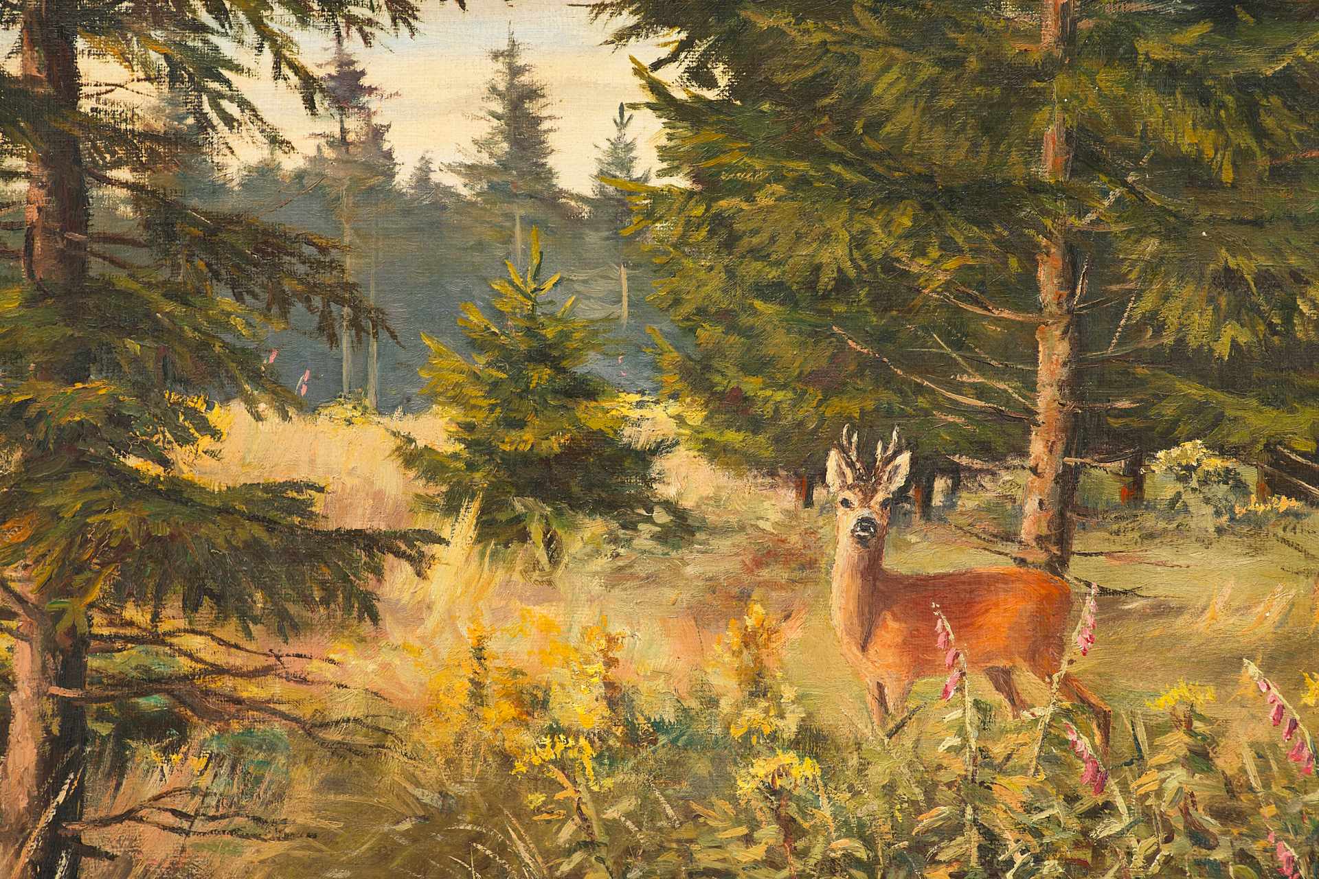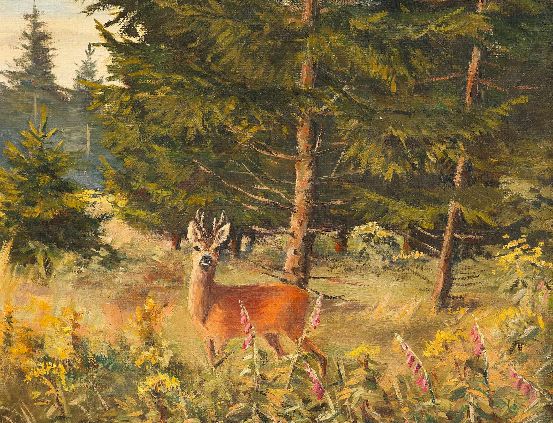 Картина "Косуля в лесной чаще" Германия начало ХХ века