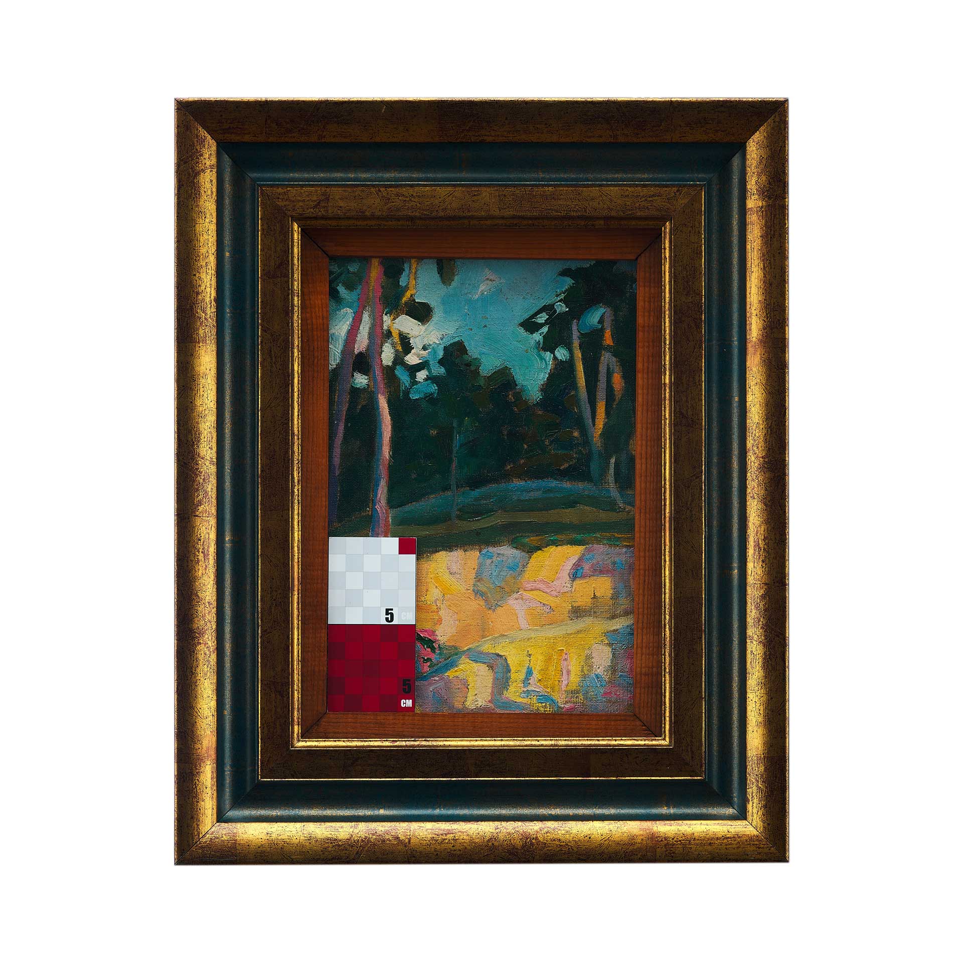 На экспертизу представлен двусторонний этюд, на одной стороне которого изображены пестрые дома южного города и полоска моря вдали. На другом этюде сосны на крутом склоне оврага, освещенные теплым розовым светом заходящего солнца. Этюды написаны в яркой цветовой гамме, что соответствует живописным приемам близким манере письма И.Д. шейнберга. Картины поступили из семьи художника. Данные произведения являются частью творческого наследия И. Шейнберга. Исаак Давидович Шейнберг (Бердичев 1 (13) мая 1887 - 1965 Мешерск, Моск, обл.).