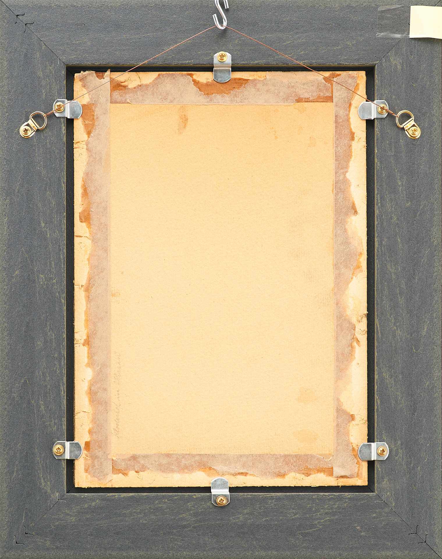 Судя по сопроводительной надписи на немецком ("Кlosterhof in Не ... ") на обороте картины, можно предположить, что это монастырский сад где-то в Германии, Австрии или Illвейцарии. Традиция монастырских садов в этих странах насчитывает более тысячи лет. Первые приусадебные хозяйства появились с распространением в Европе монастырей в эпоху Средневековья. Так монахи выращивали все необходимое для жизни . В сохранившейся до наших дней инструкции "Капитулярий о поместьях" по управлению королевскими угодьями, в том числе и монастырскими, Карл Великий предписывает возделывание более 70 видов полезных злаков, растений и деревьев.