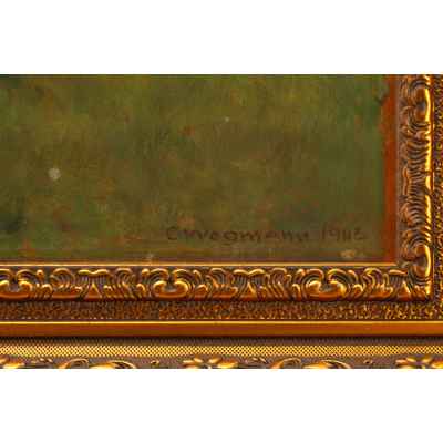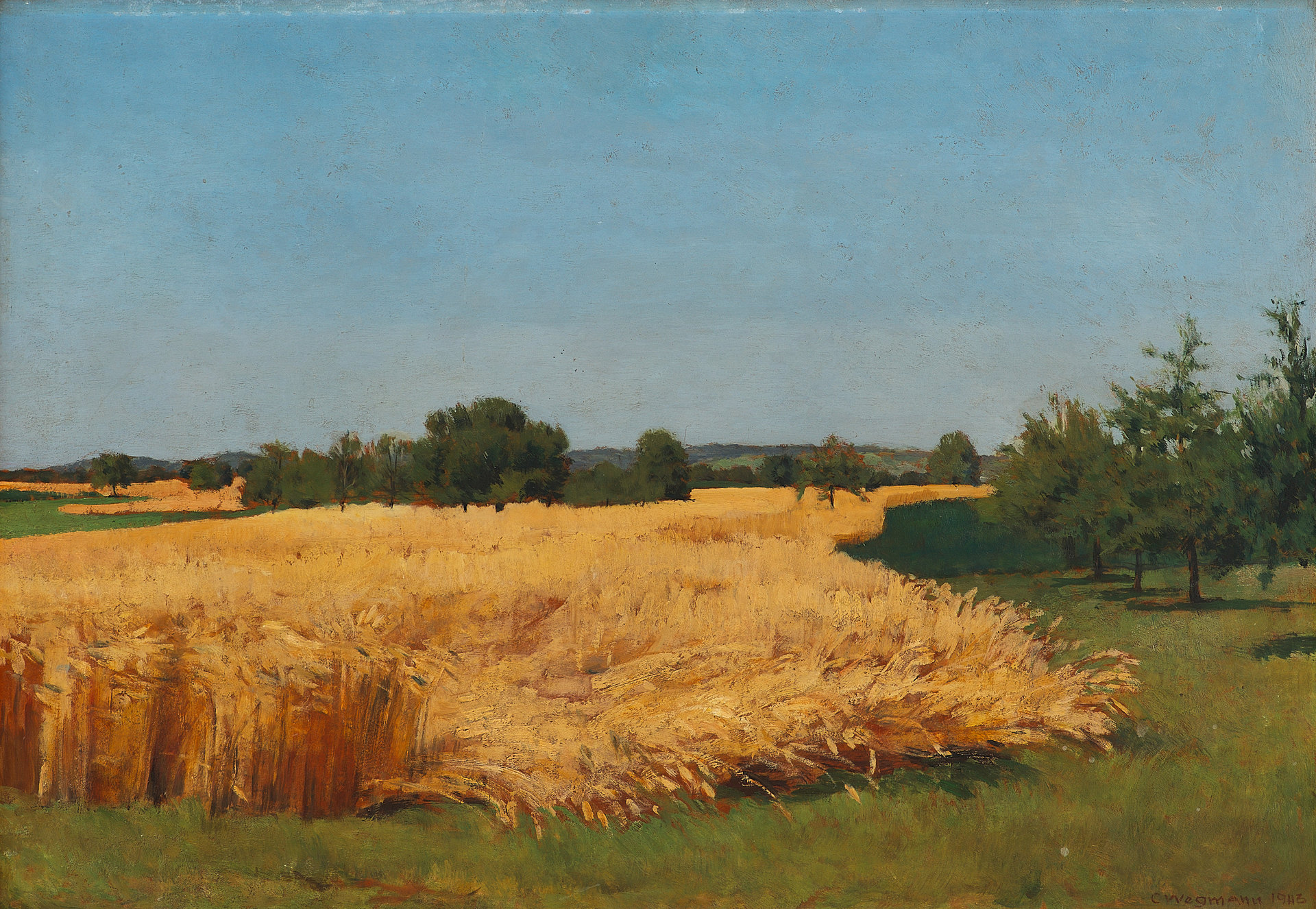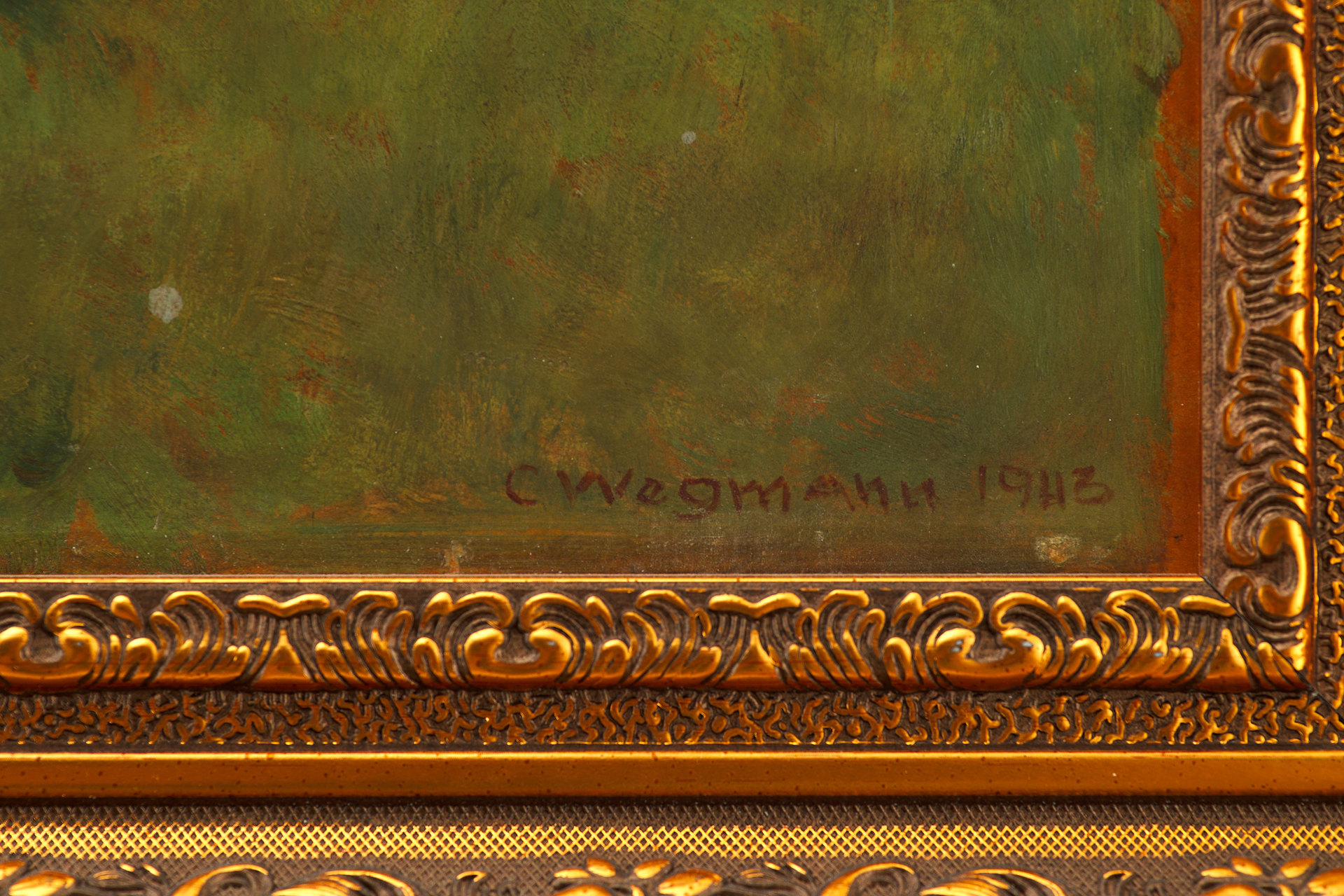 В правом нижпем углу на картино авторская подпись и дата: "С Wegmann 1943".