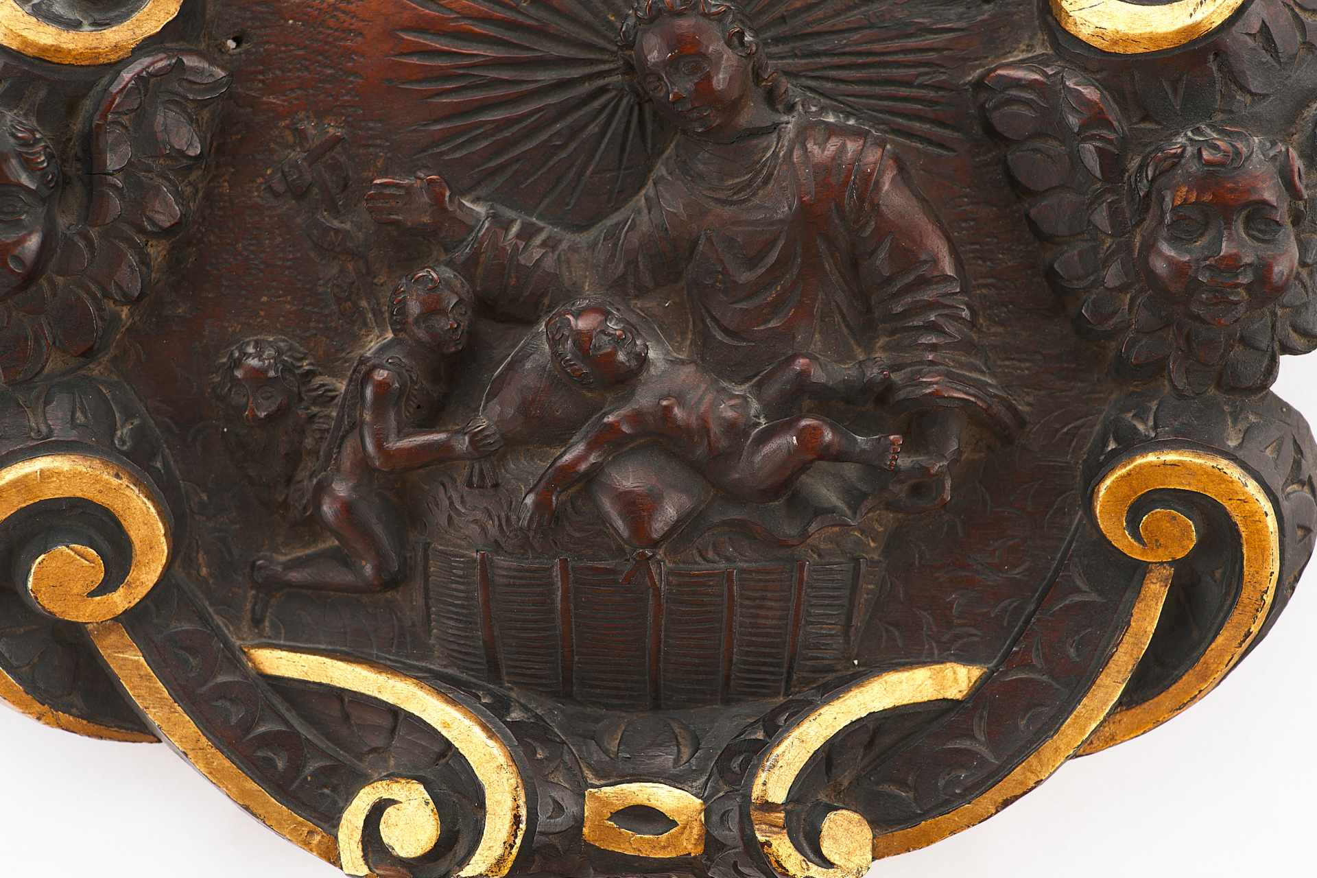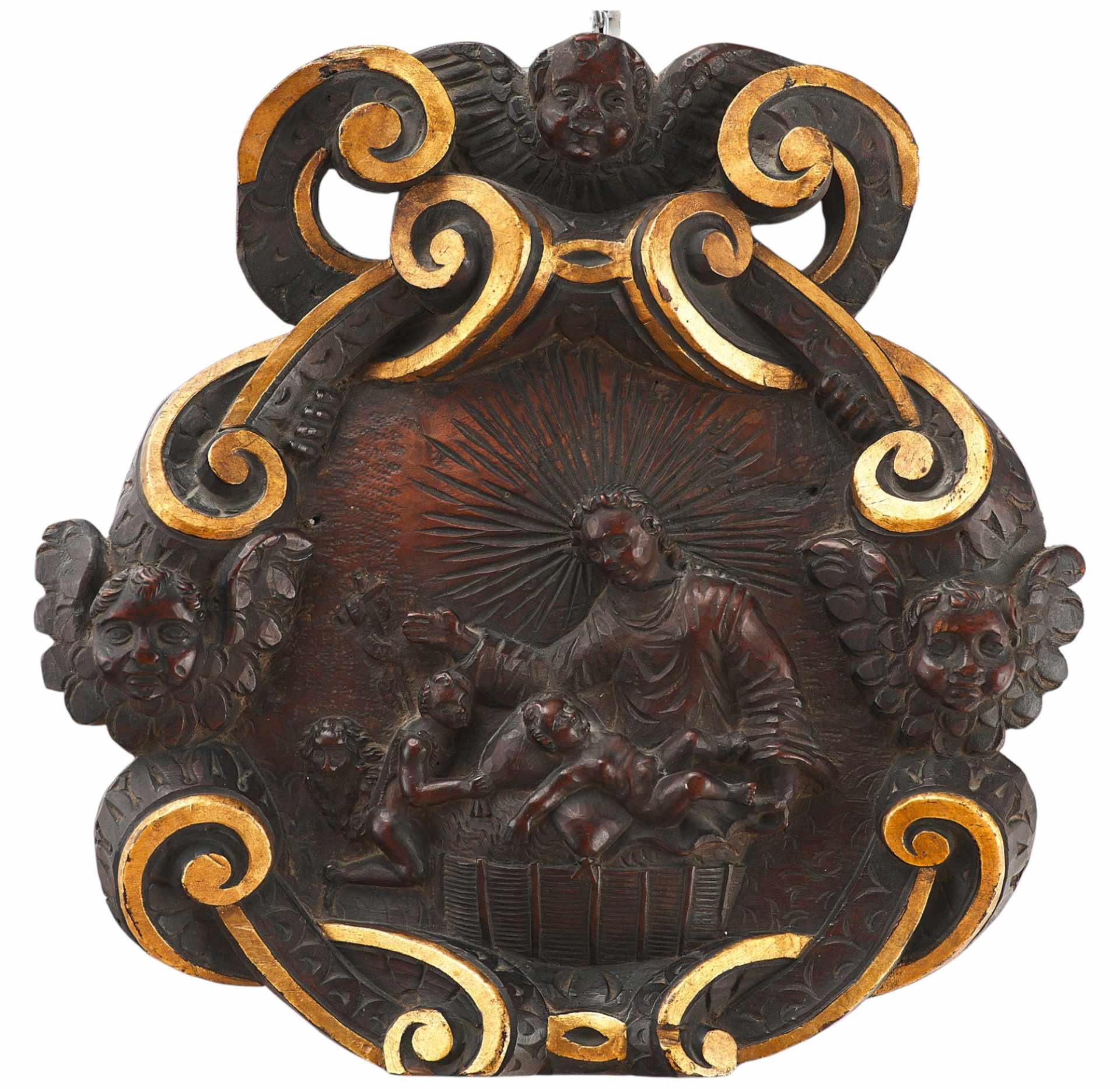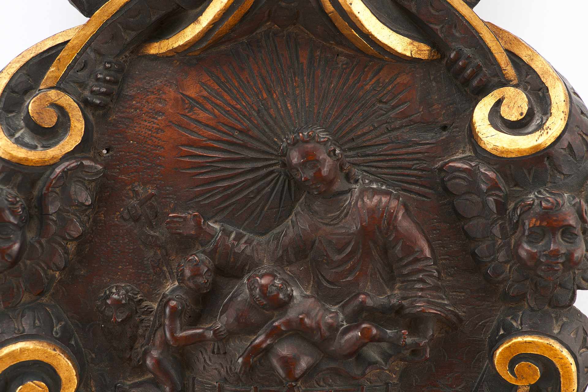 Барельеф Богоматерь с Младенцем и Иоанном Крестителем дерево XVII в. 39x39,5x6,2 см. Европа Вторая половина XVII века