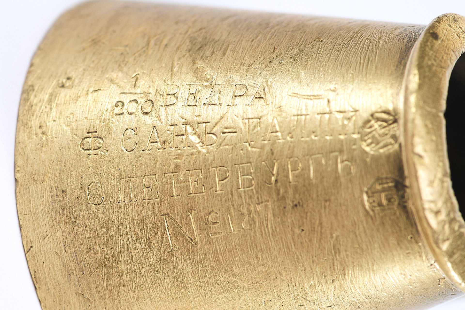 На мерке имеются клейма: «1/200 Ведра Ф. Санъ-Галли С Петербург №187», клеймо даты производства под имперской короной - октябрь 1911 г.