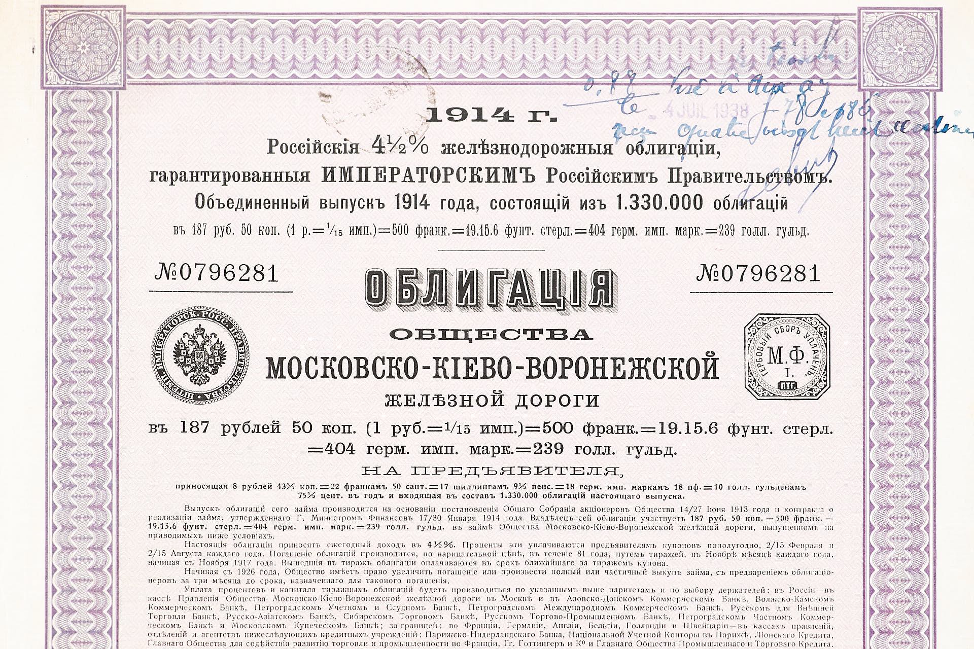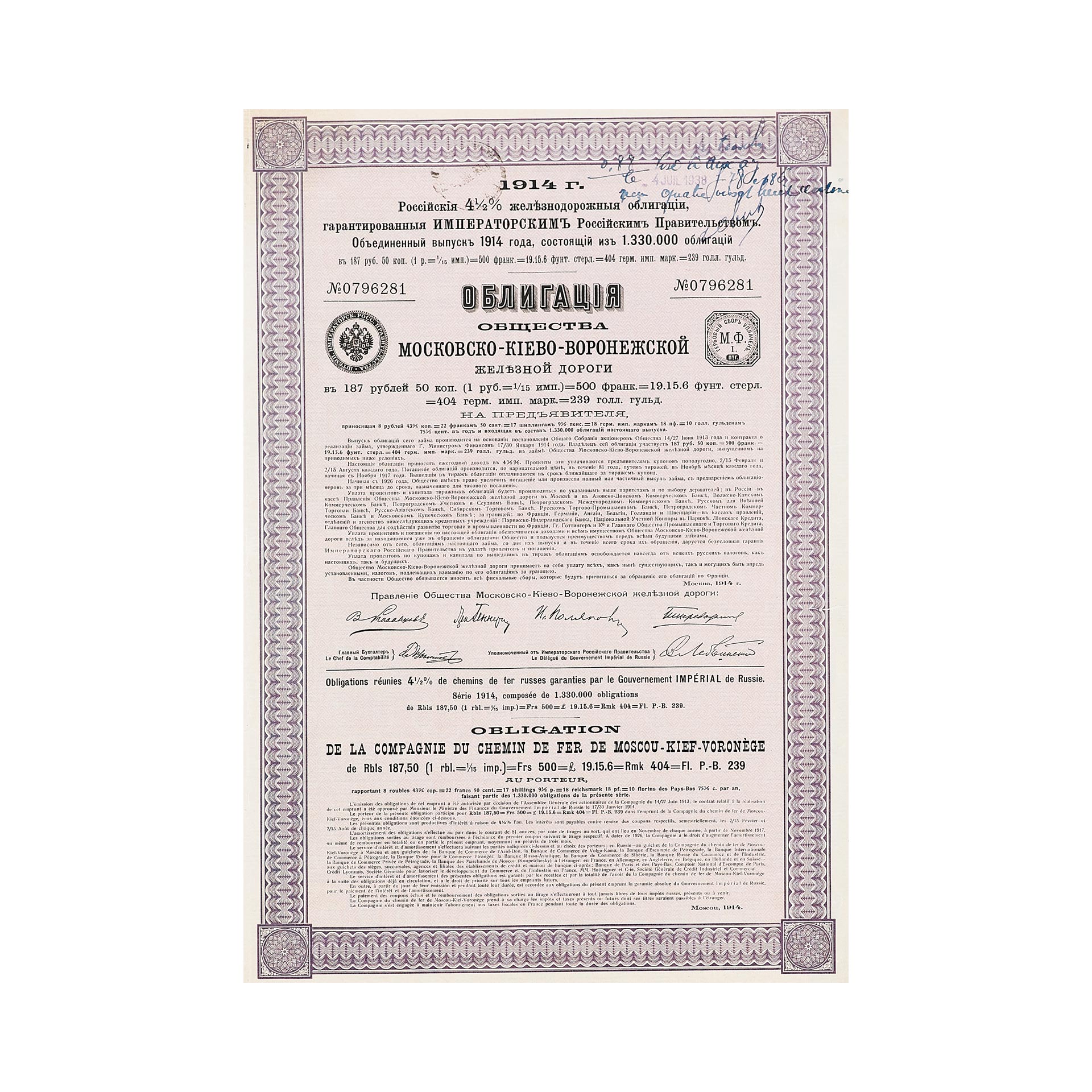 Облигационный заем 4% 1903 г. Общества Рязанско-Уральской железной дороги Российская империя 1903