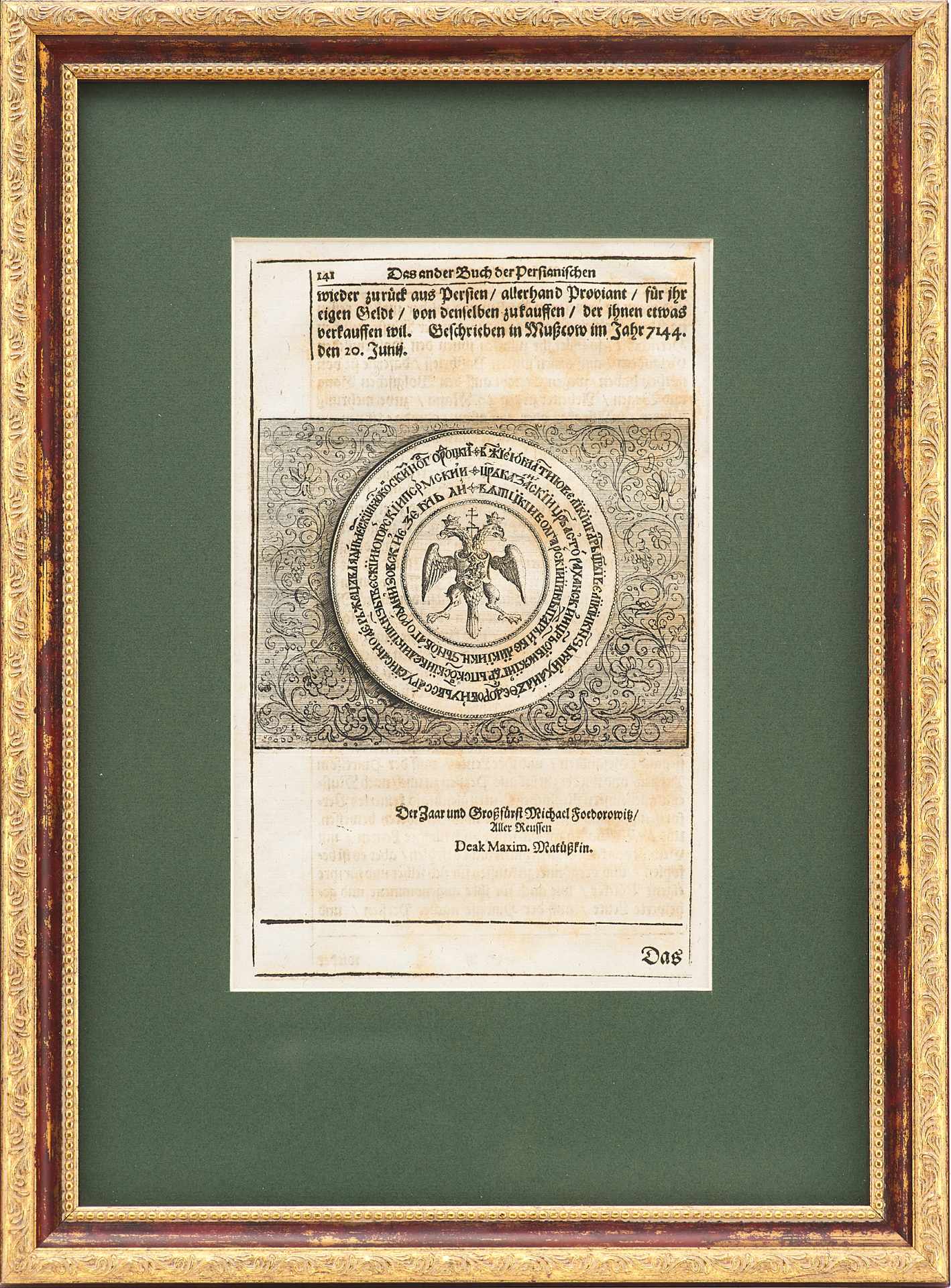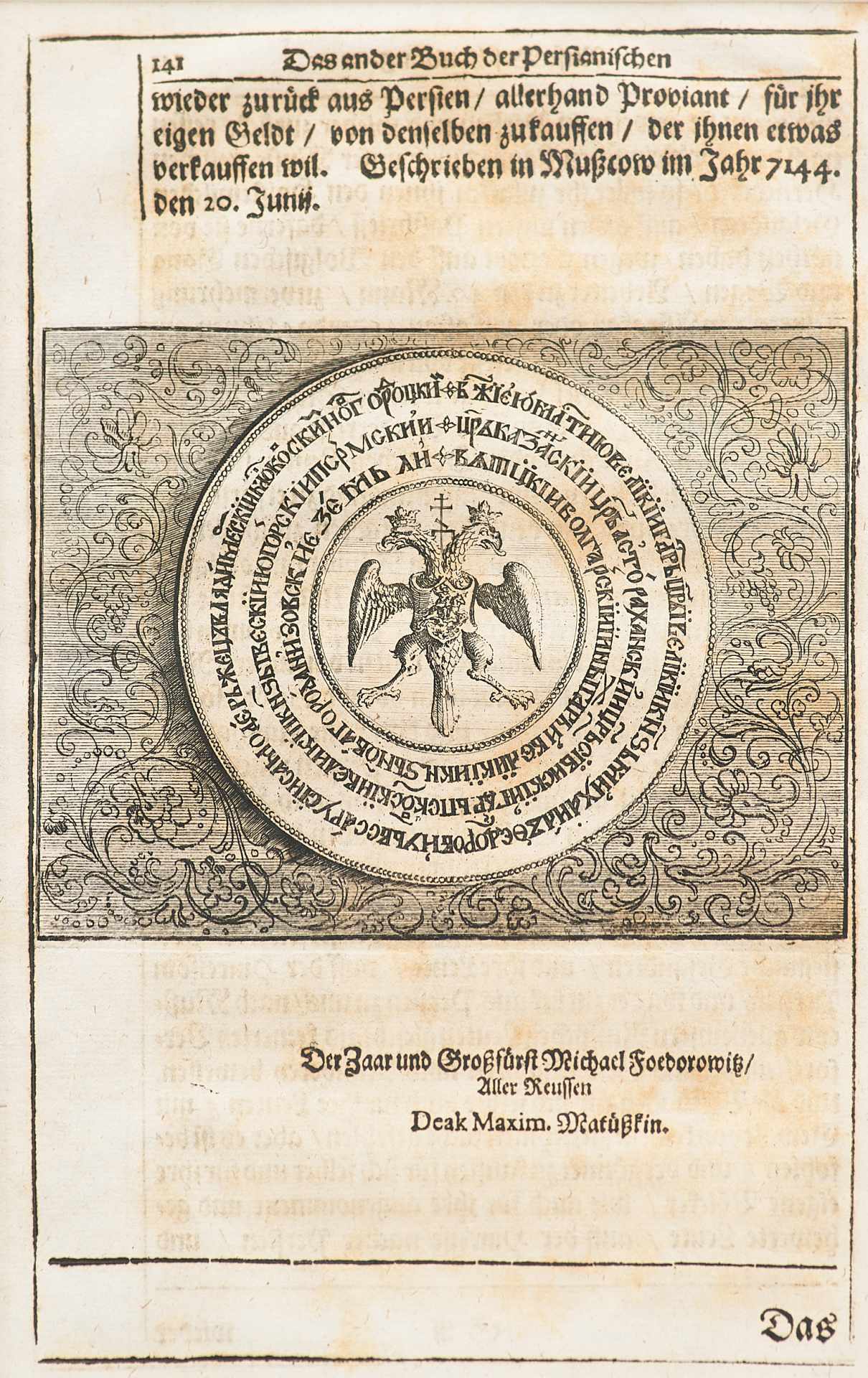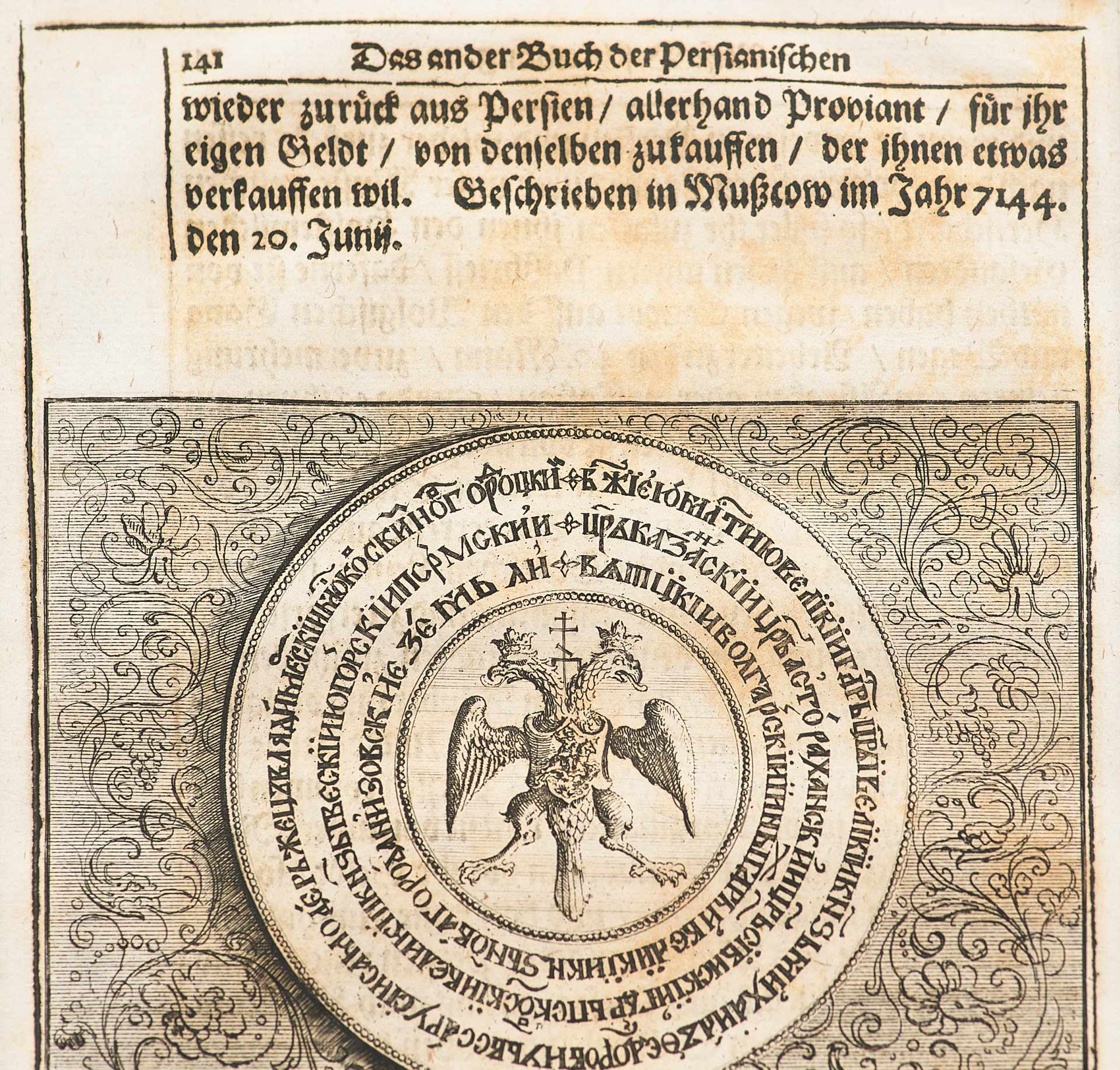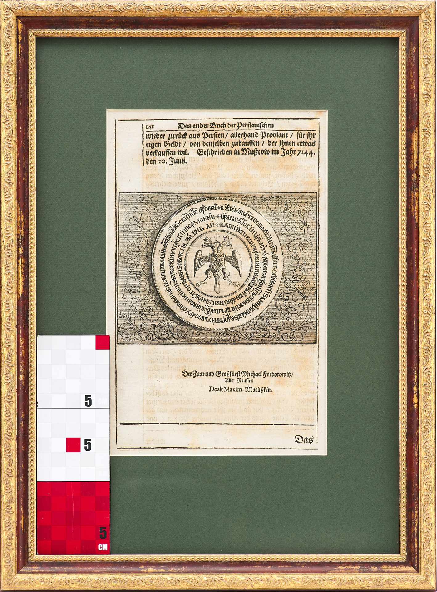 Эстамп "Печать царя Михаила Федоровича" для книги Адама Олеария около 1656 г