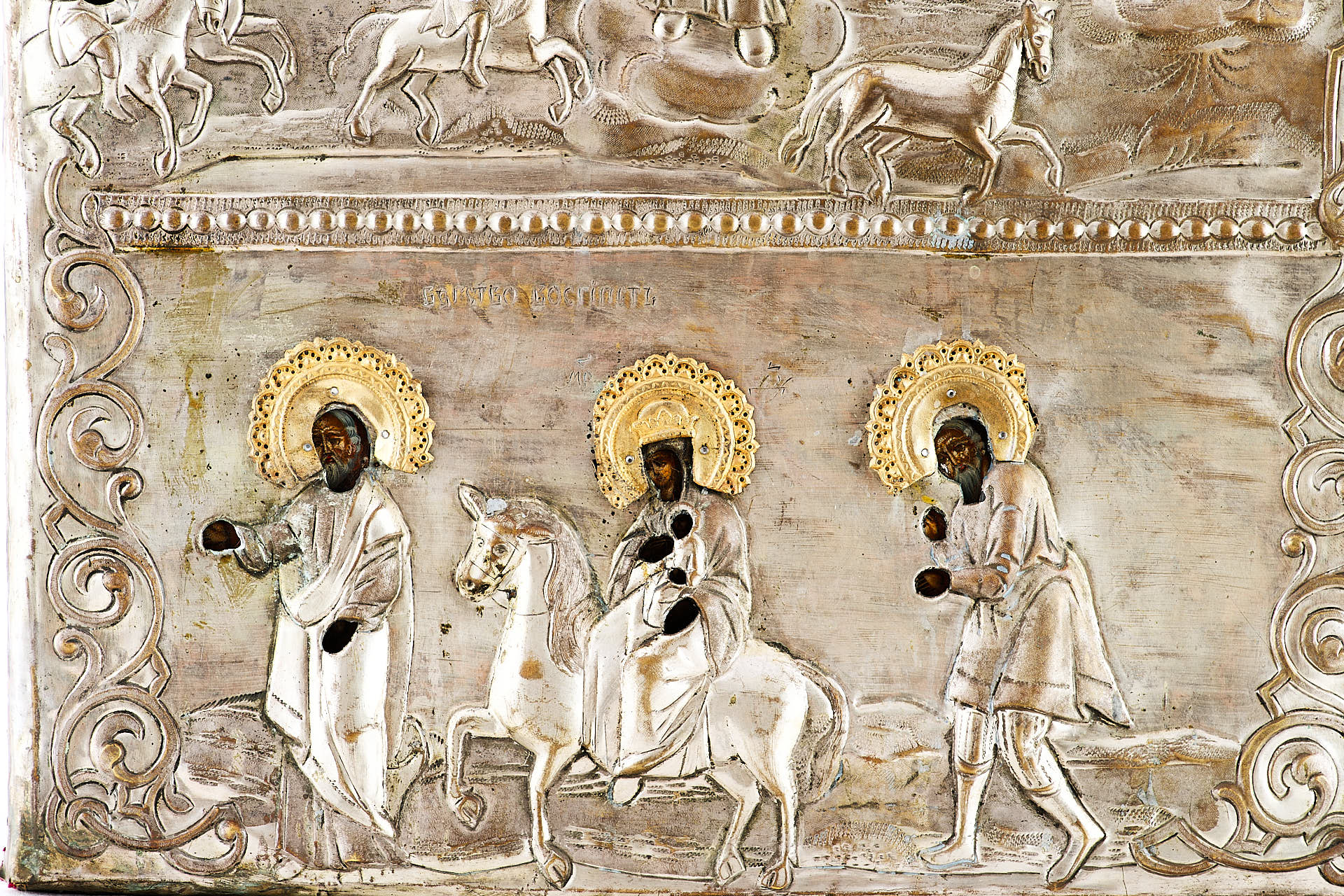 Икона Рождество, Арх. Михаил, Флор и Лавр, Бегство в Египет сер. XIX в. 94,7x53 см. третья четверть ХІХ века