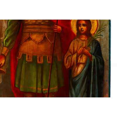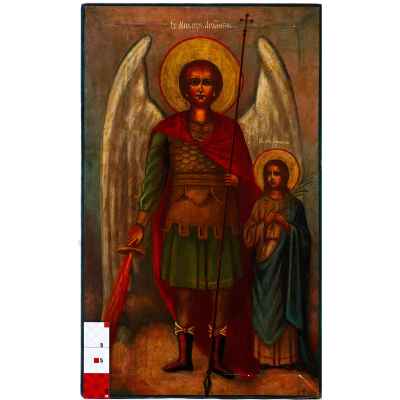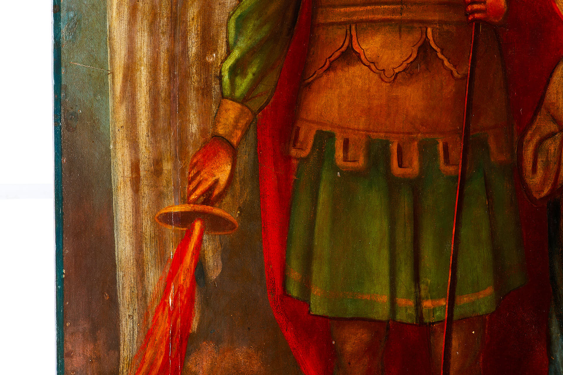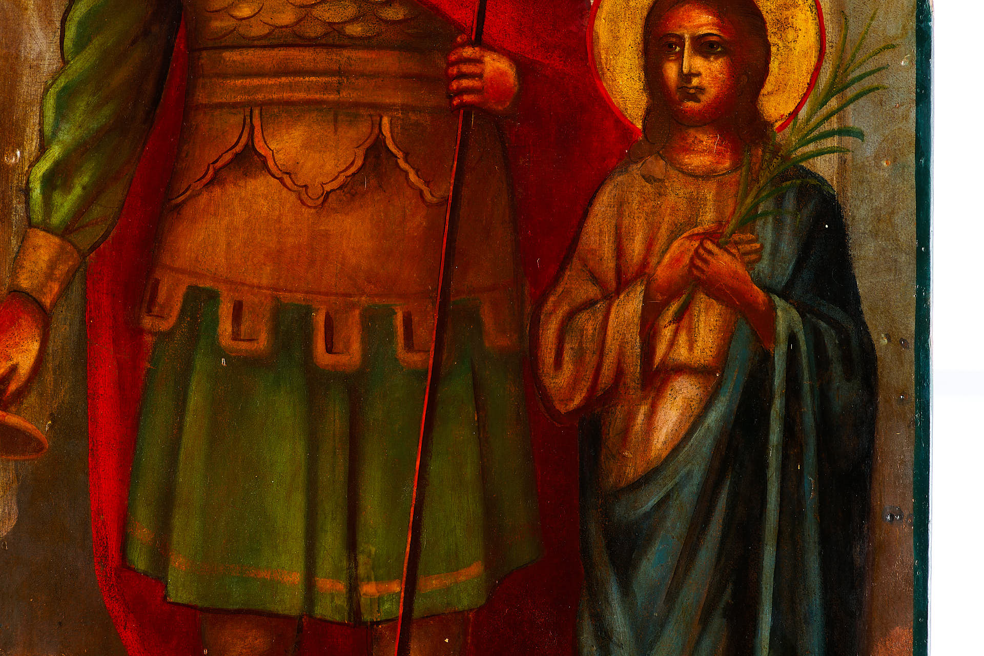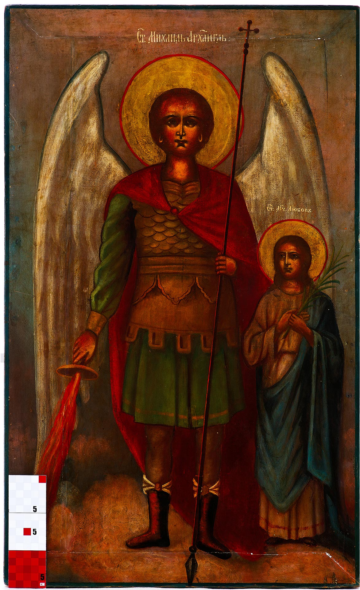 Храмовая кона Архистратиг Михаил и Святая мученица Любовь масло сер. XIX в. 77,8x47,8 см. Вторая половина XIX века