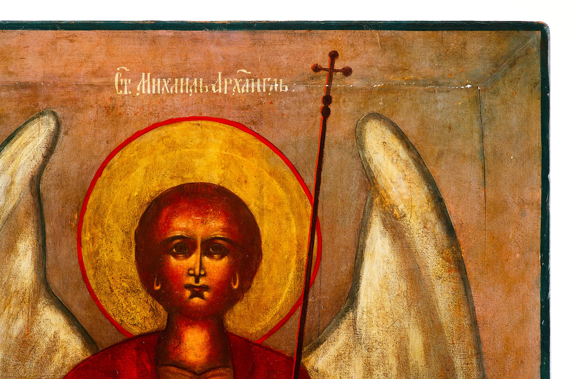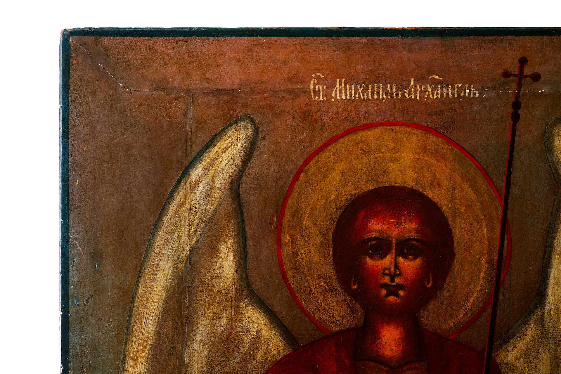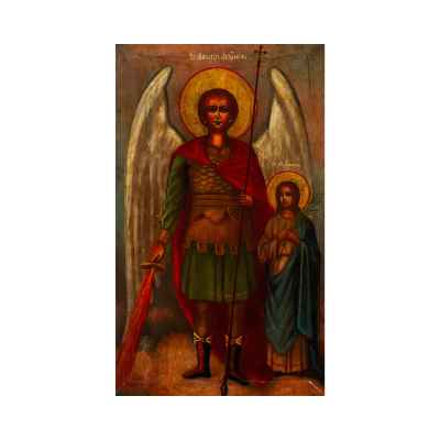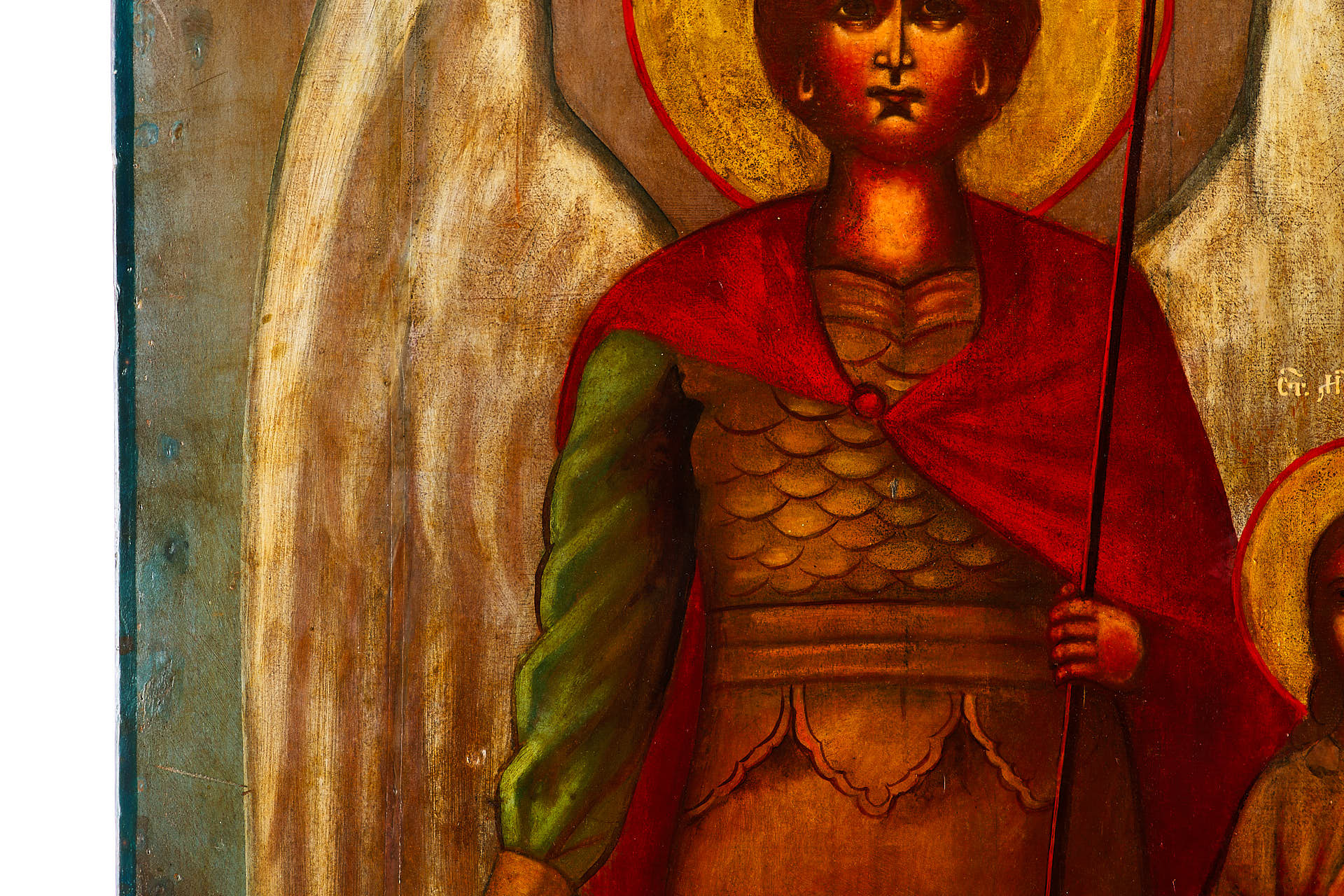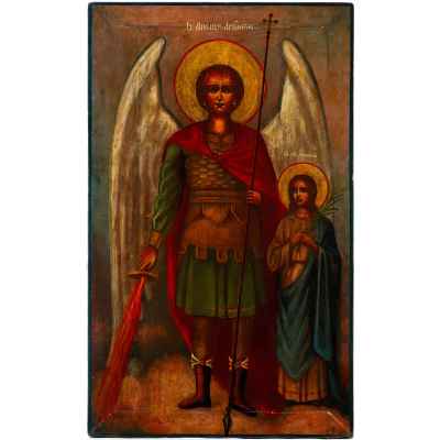 Храмовая кона Архистратиг Михаил и Святая мученица Любовь масло сер. XIX в. 77,8x47,8 см. Вторая половина XIX века
