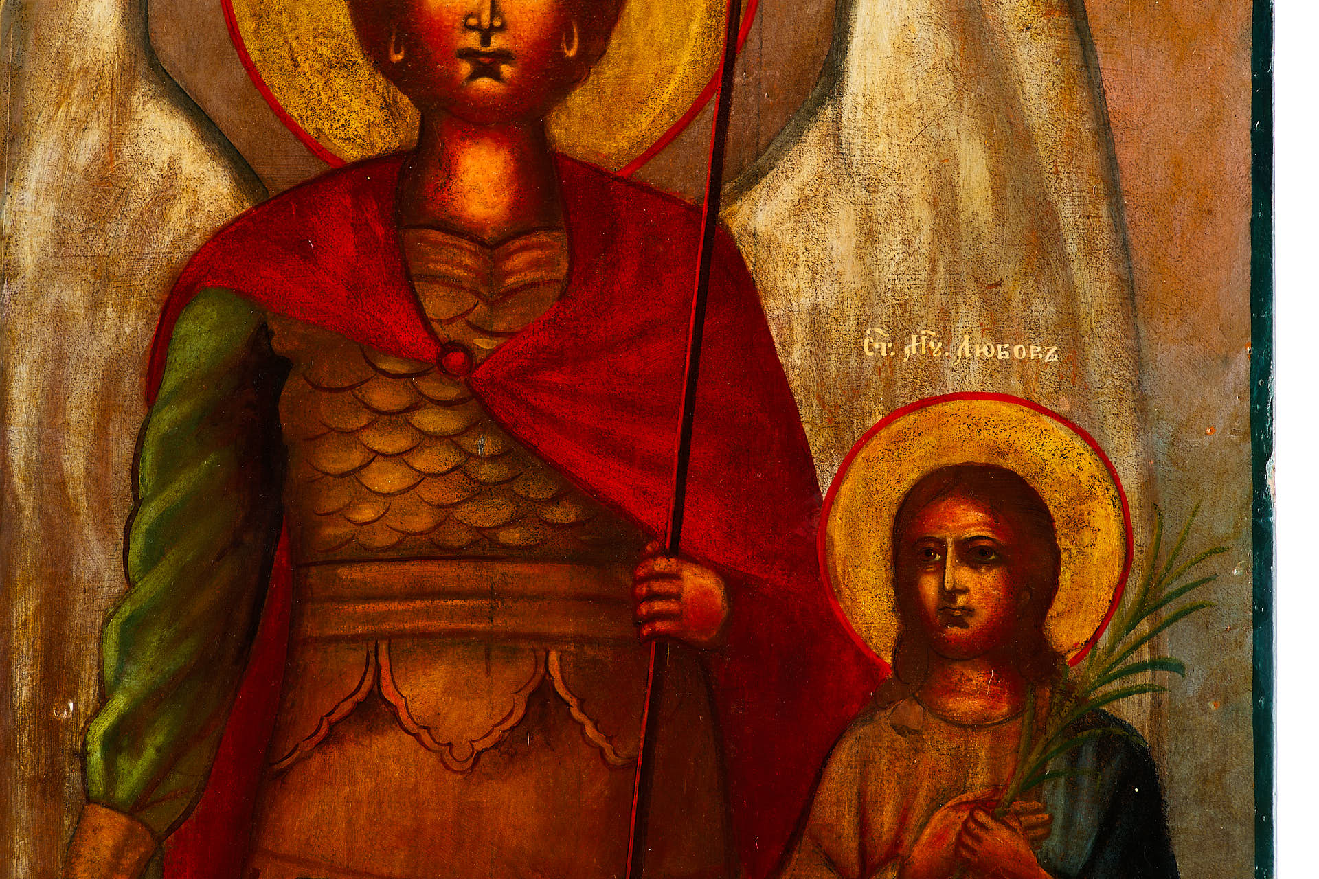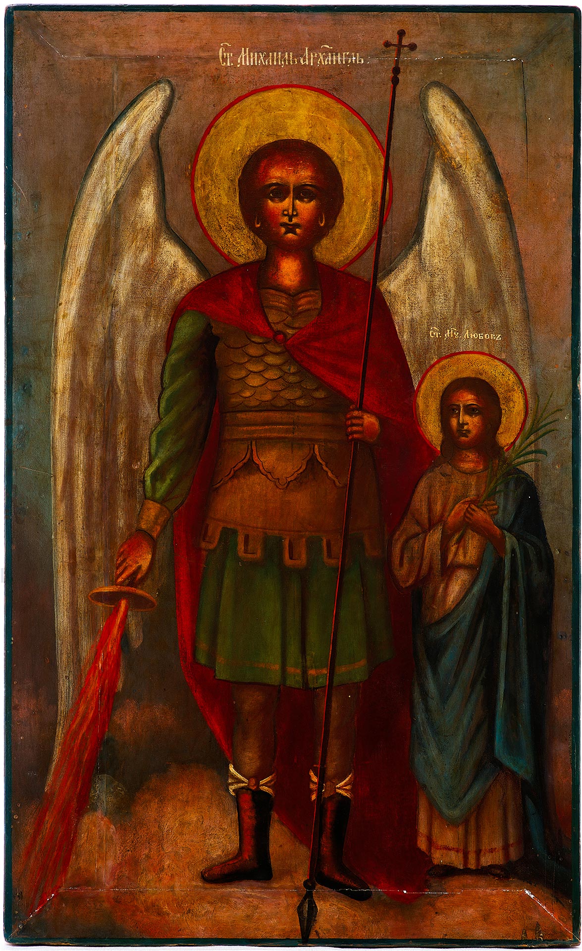 Личности Архангела Михаила и Святой Любови могли быть выбраны не случайно: вероятно, они считались небесными покровителями заказчика или его семьи, что подтверждает индивидуальный характер иконы. Такие изображения нередко создавались по частным заказам и предназначались для домашнего иконостаса или фамильного молитвенного уголка.