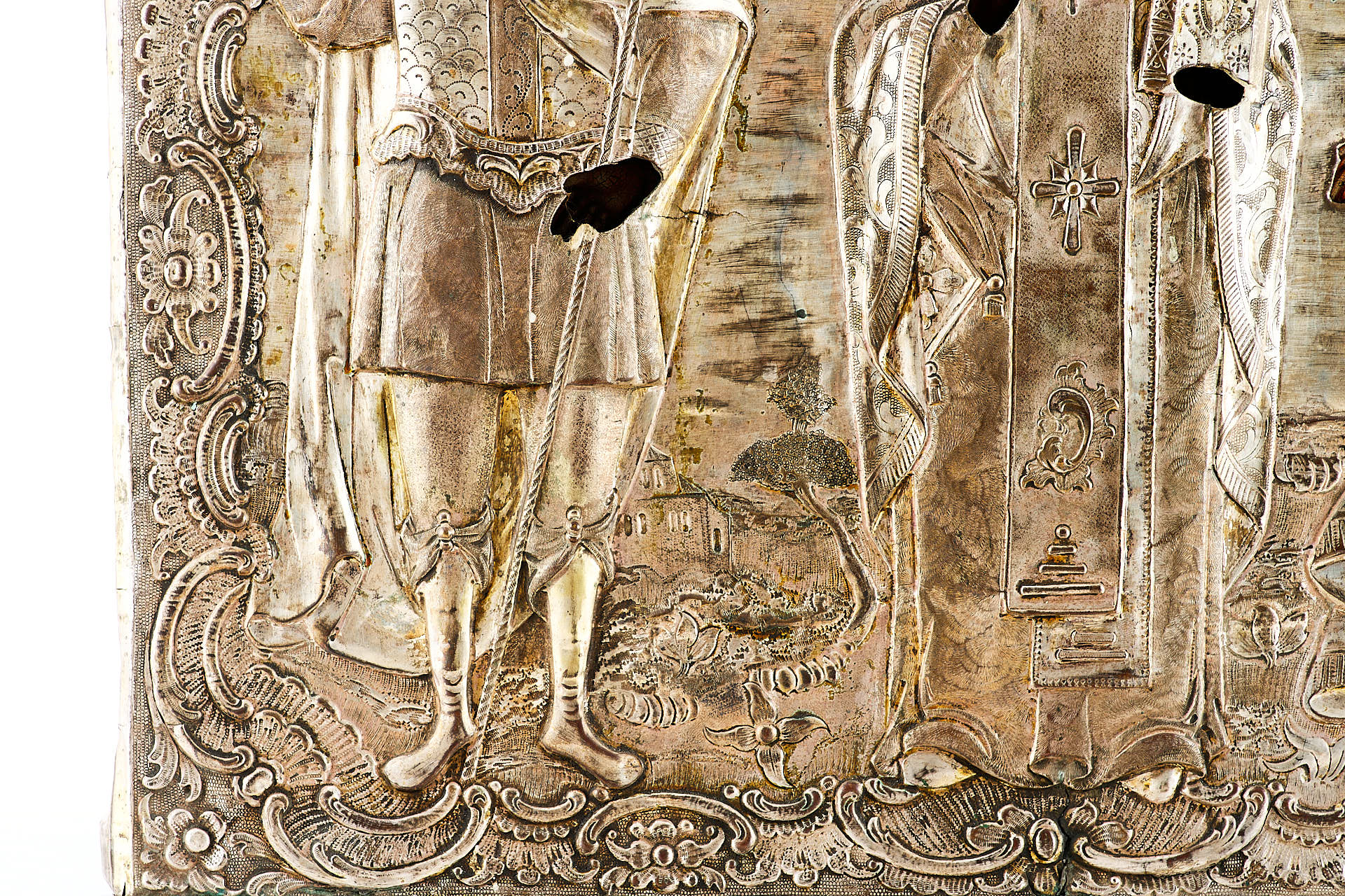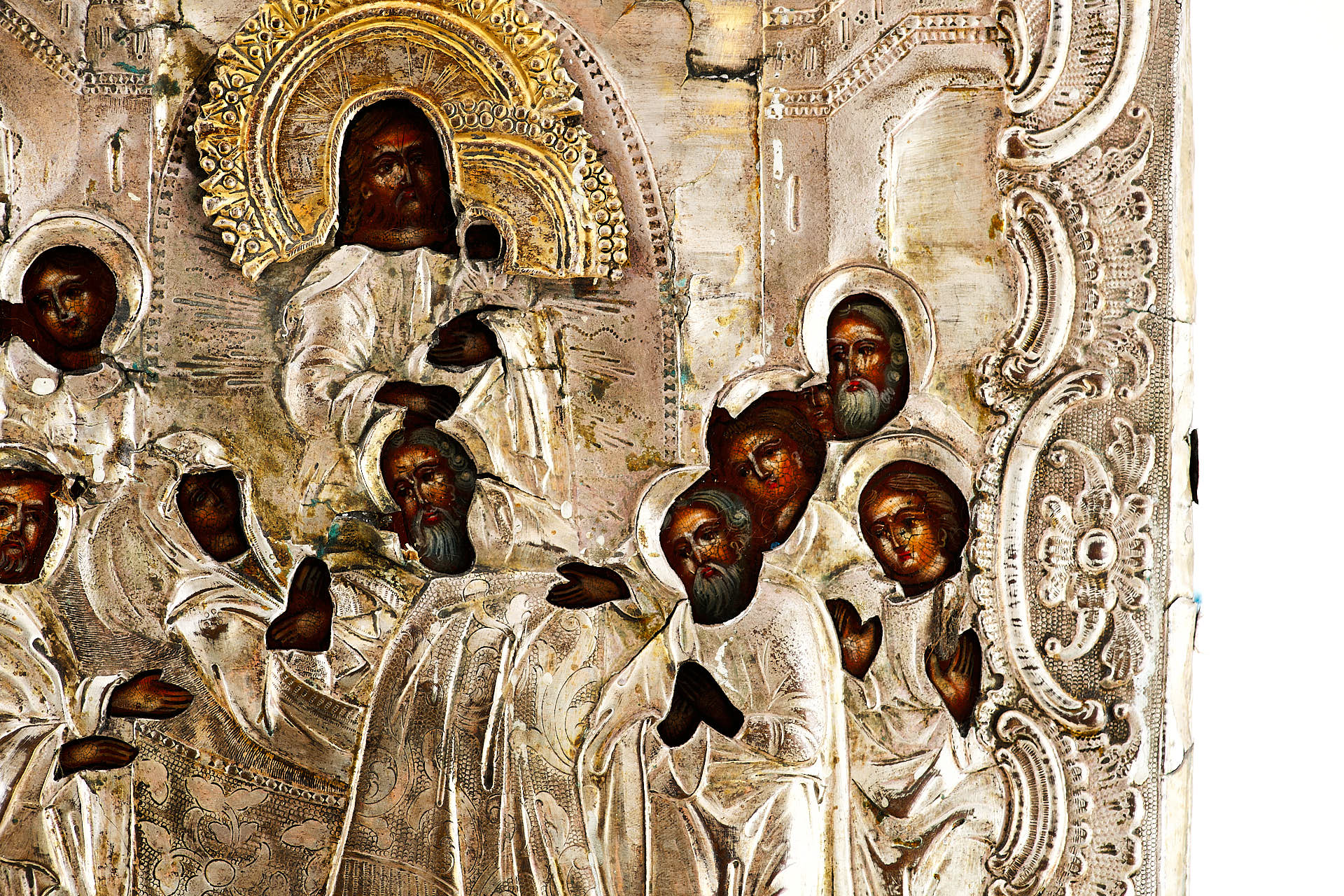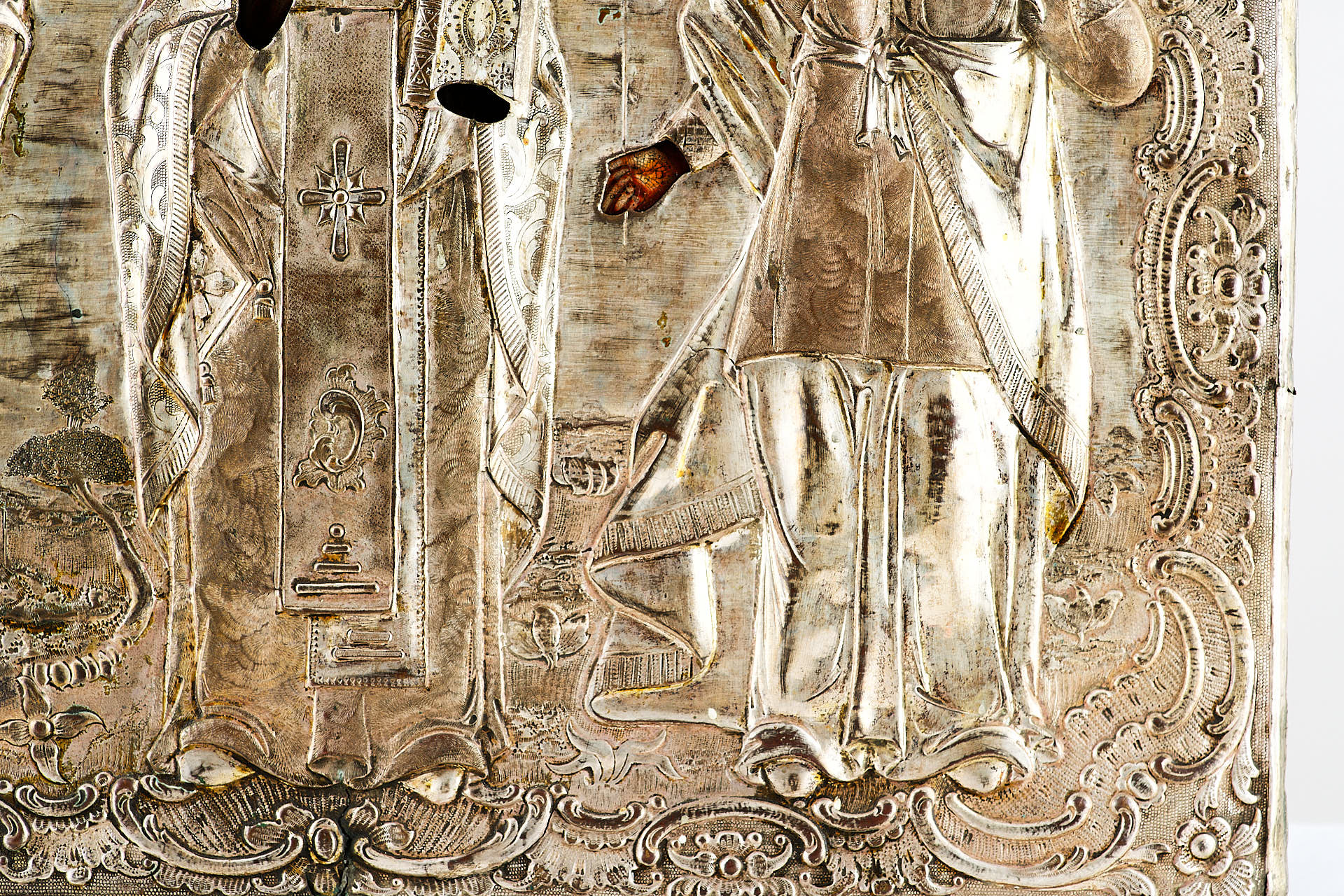 Икона написана в третьей четверти XIX века, что соответствует художественным и техническим признакам: масляная живопись по левкасу и оклад из медного сплава с чеканкой и серебрением были характерны для крупного монастырского и кустарного производства в этот период. Визуальное единство живописи и оклада указывает на их одновременное изготовление, что повышает художественную ценность предмета.
