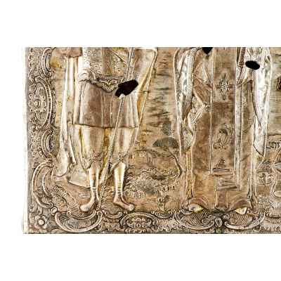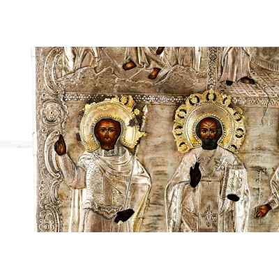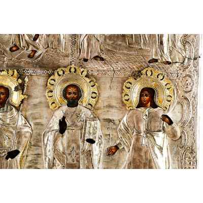 Подобные трёхчастные иконы использовались как домашние иконостасы или как праздничные образы для храмовых праздников. В иконографии они были призваны объединить сразу несколько духовно значимых тем — от спасения и заступничества до мученичества и святительского служения.