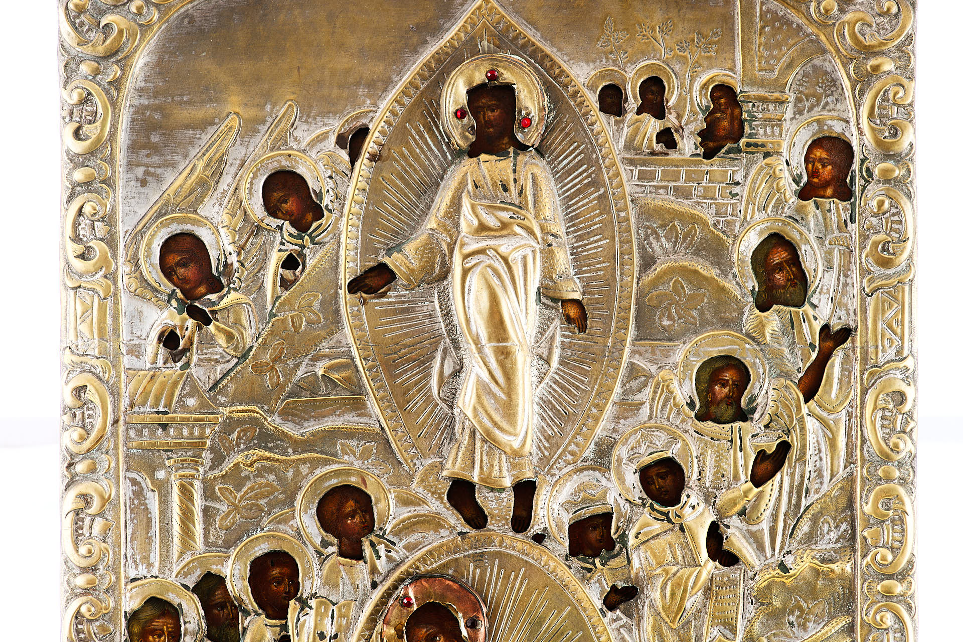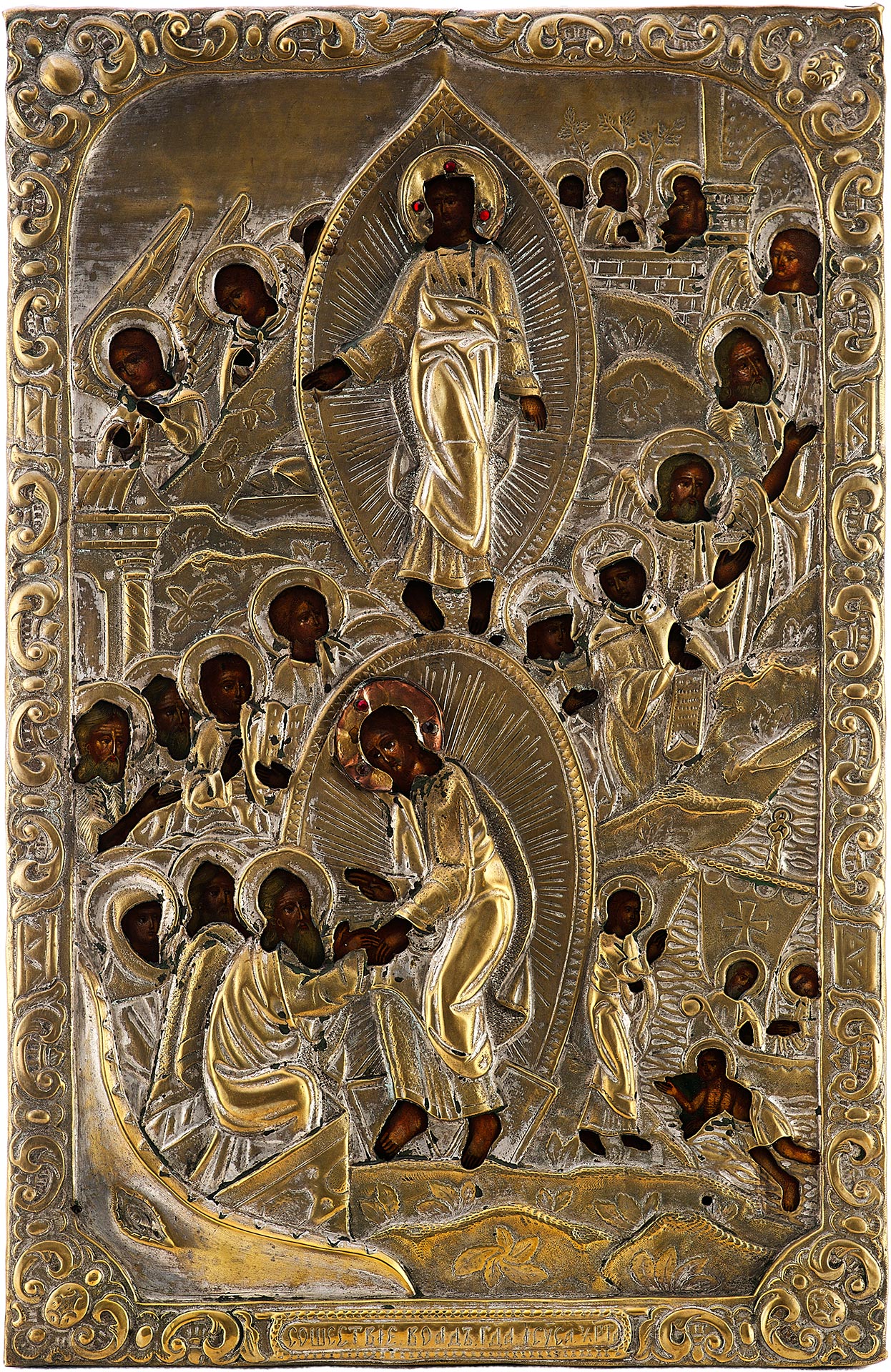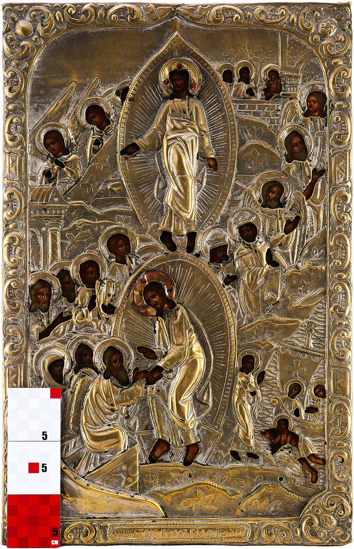 Икона в окладе Воскресение Сошествие во Ад темпера, латунь кон. XIX в. 51x33,3 см. конец ХІХ века