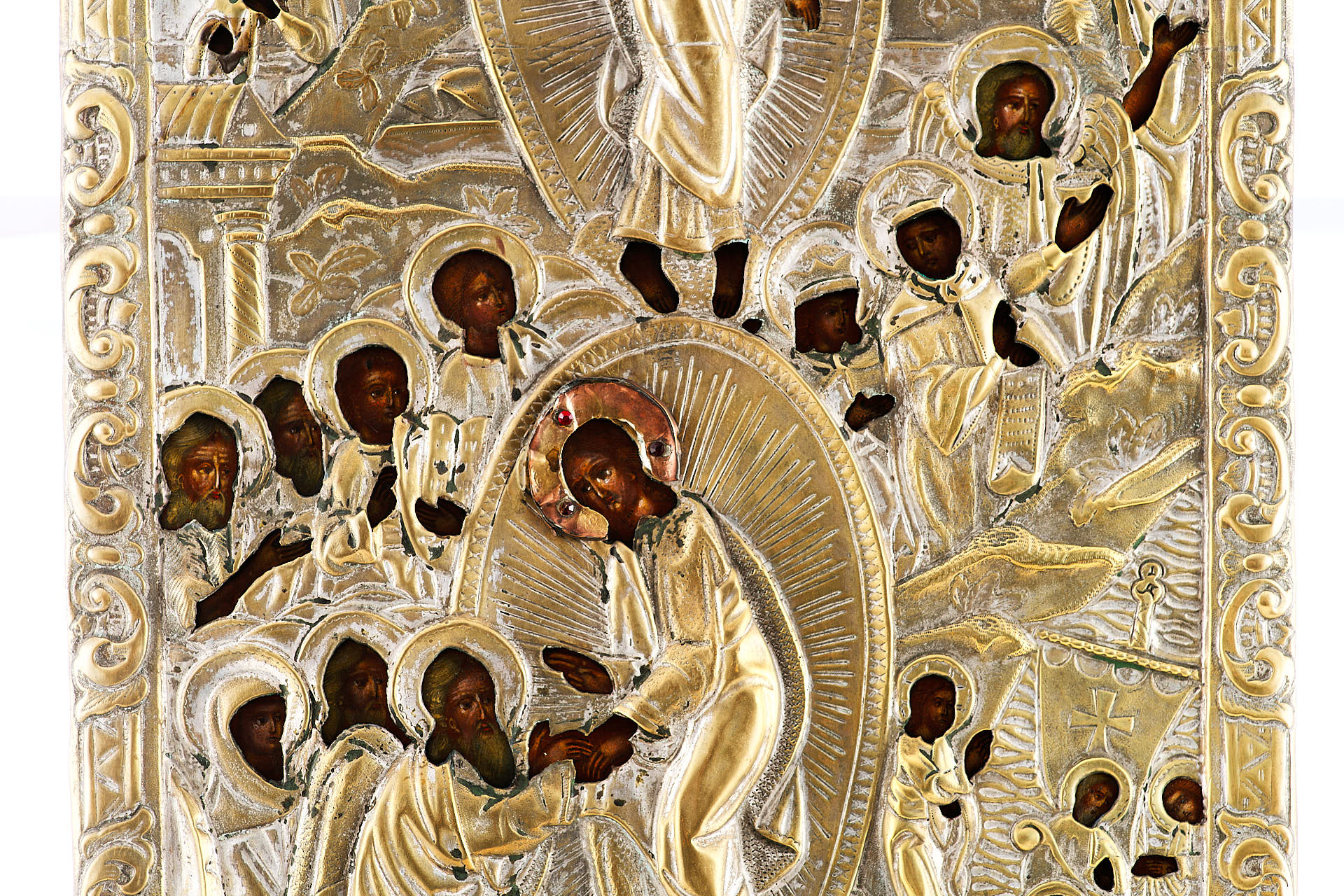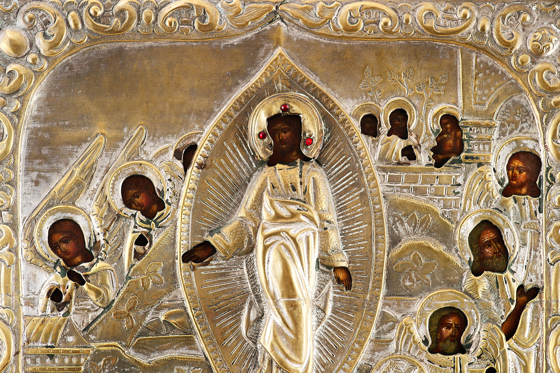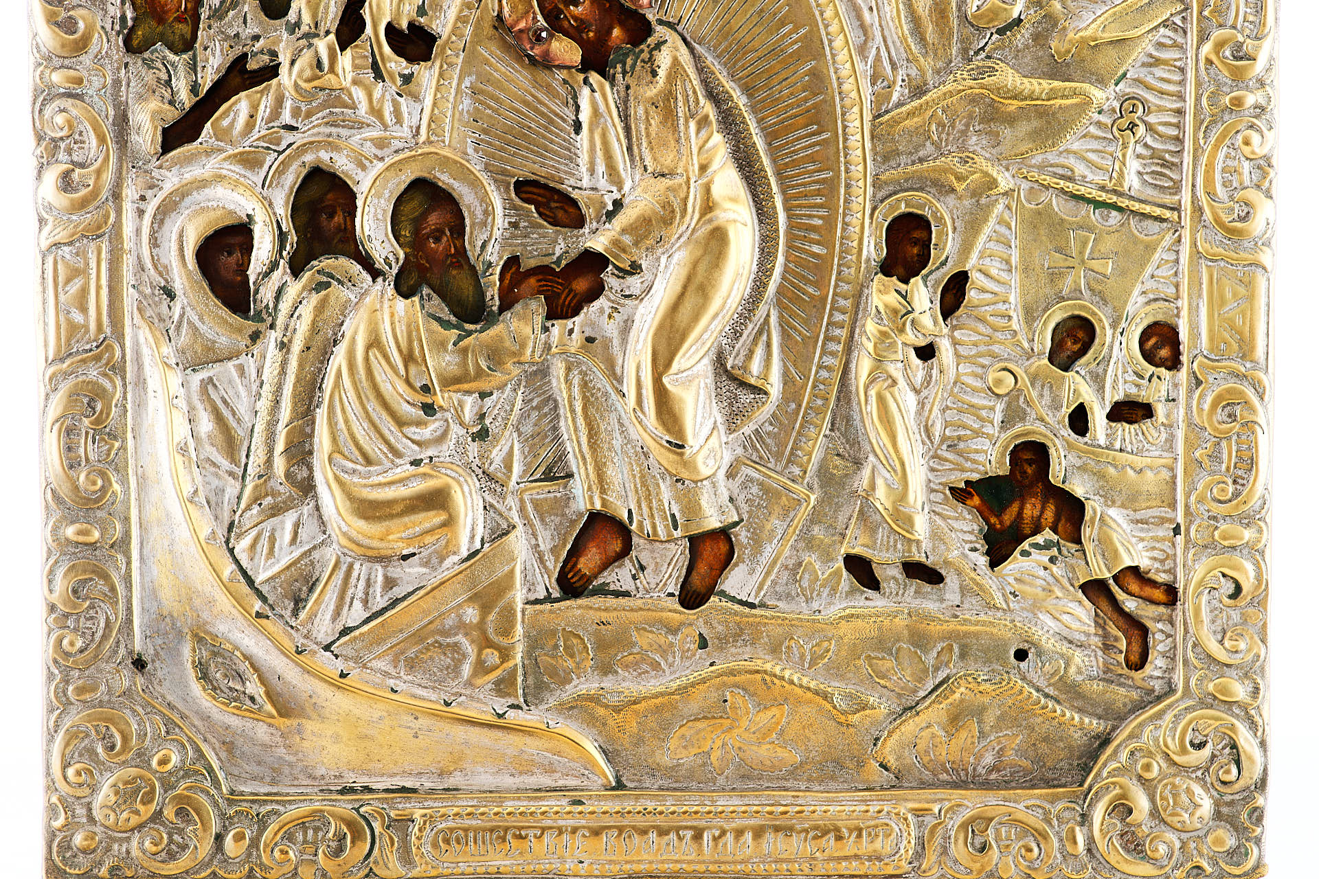 Икона в окладе Воскресение Сошествие во Ад темпера, латунь кон. XIX в. 51x33,3 см. конец ХІХ века