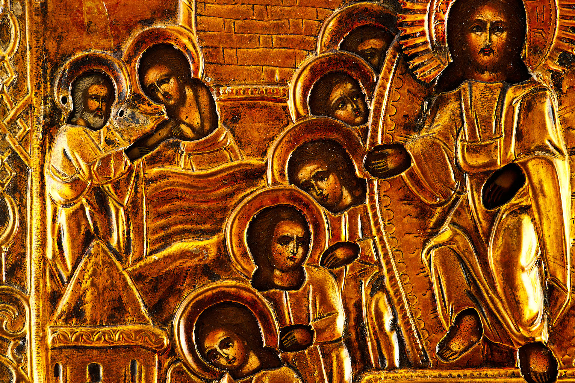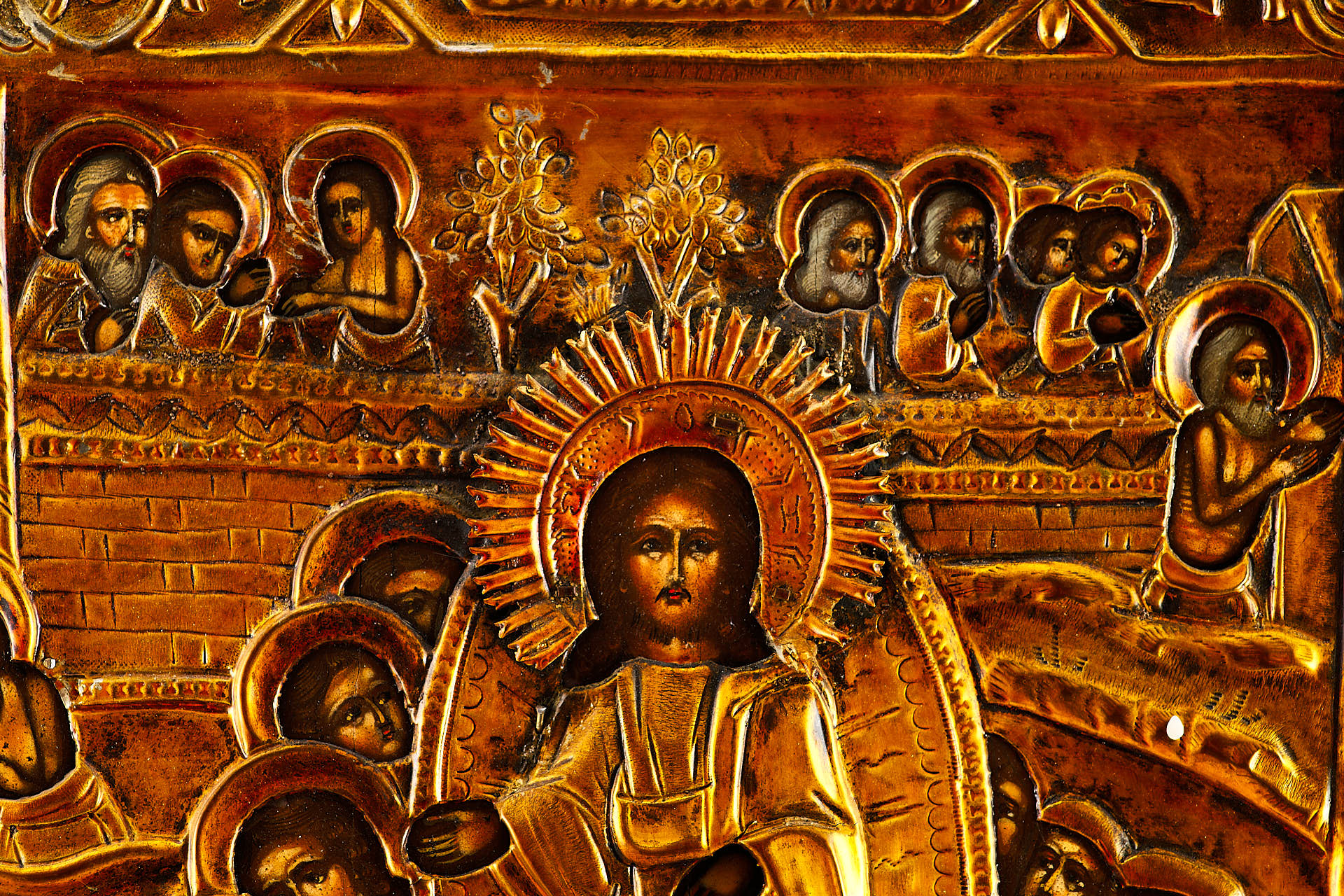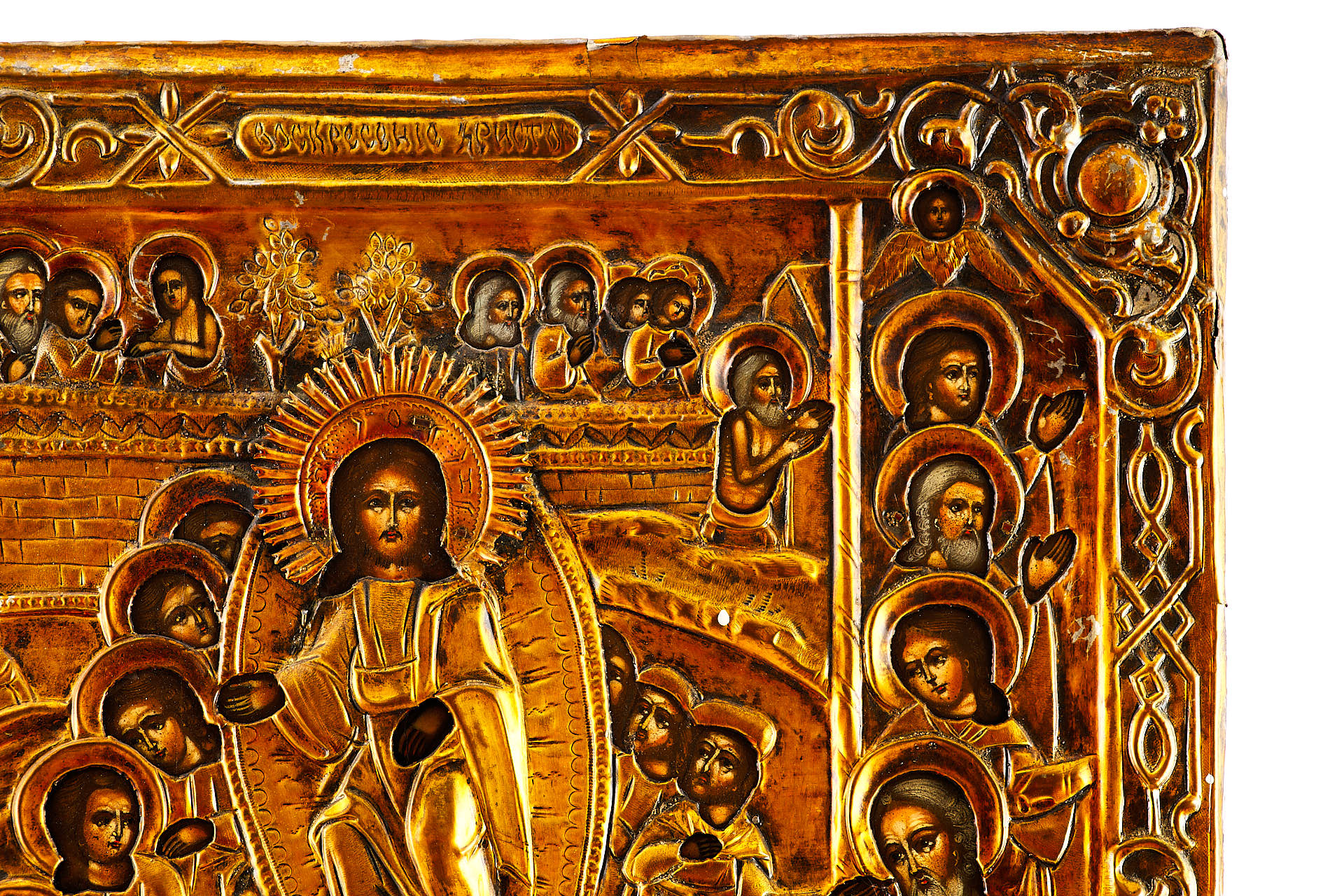 Икона в окладе Воскресение Сошествие во Ад темпера, латунь кон. XIX в. 62x47,5 см. вторая половина ХІХ века