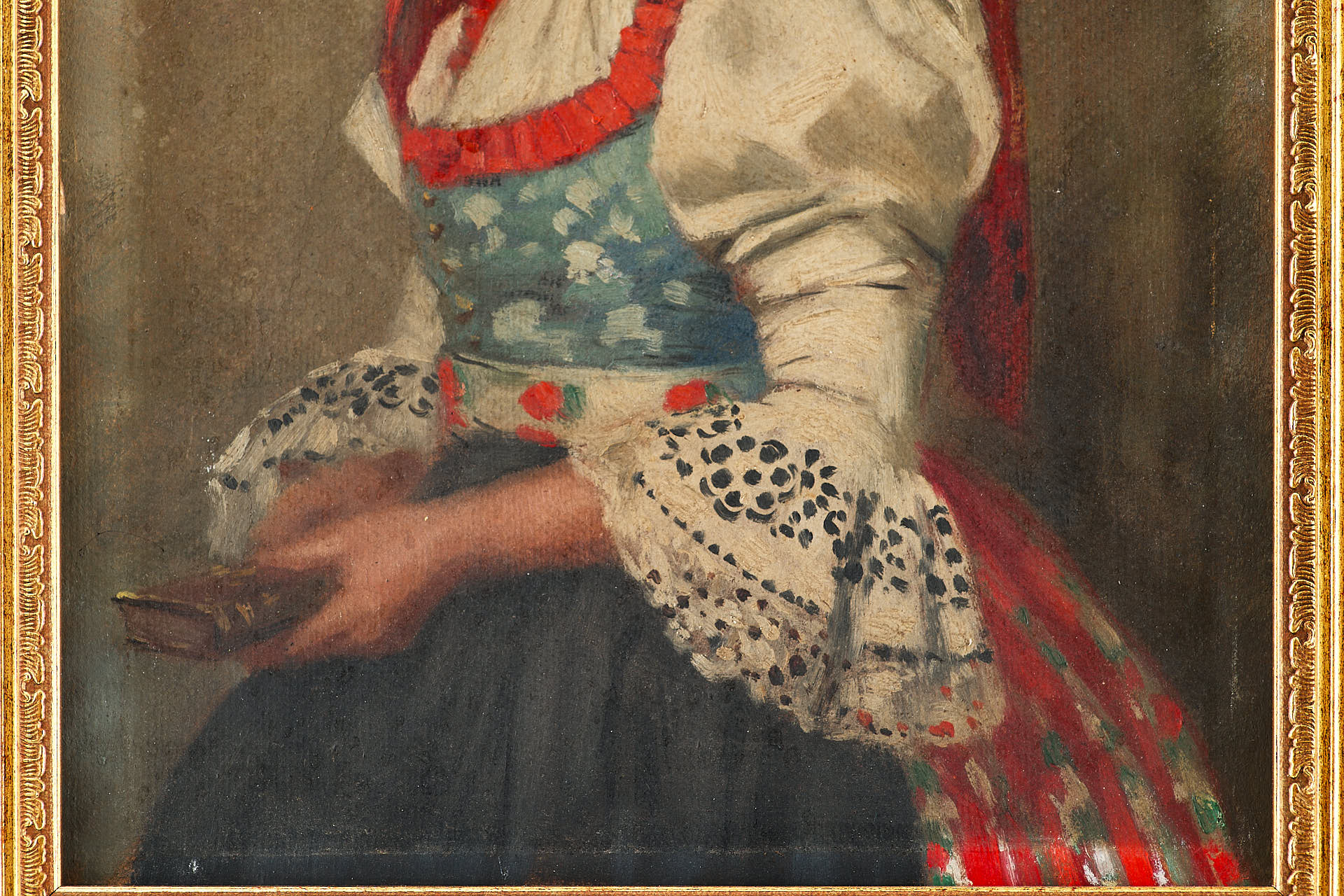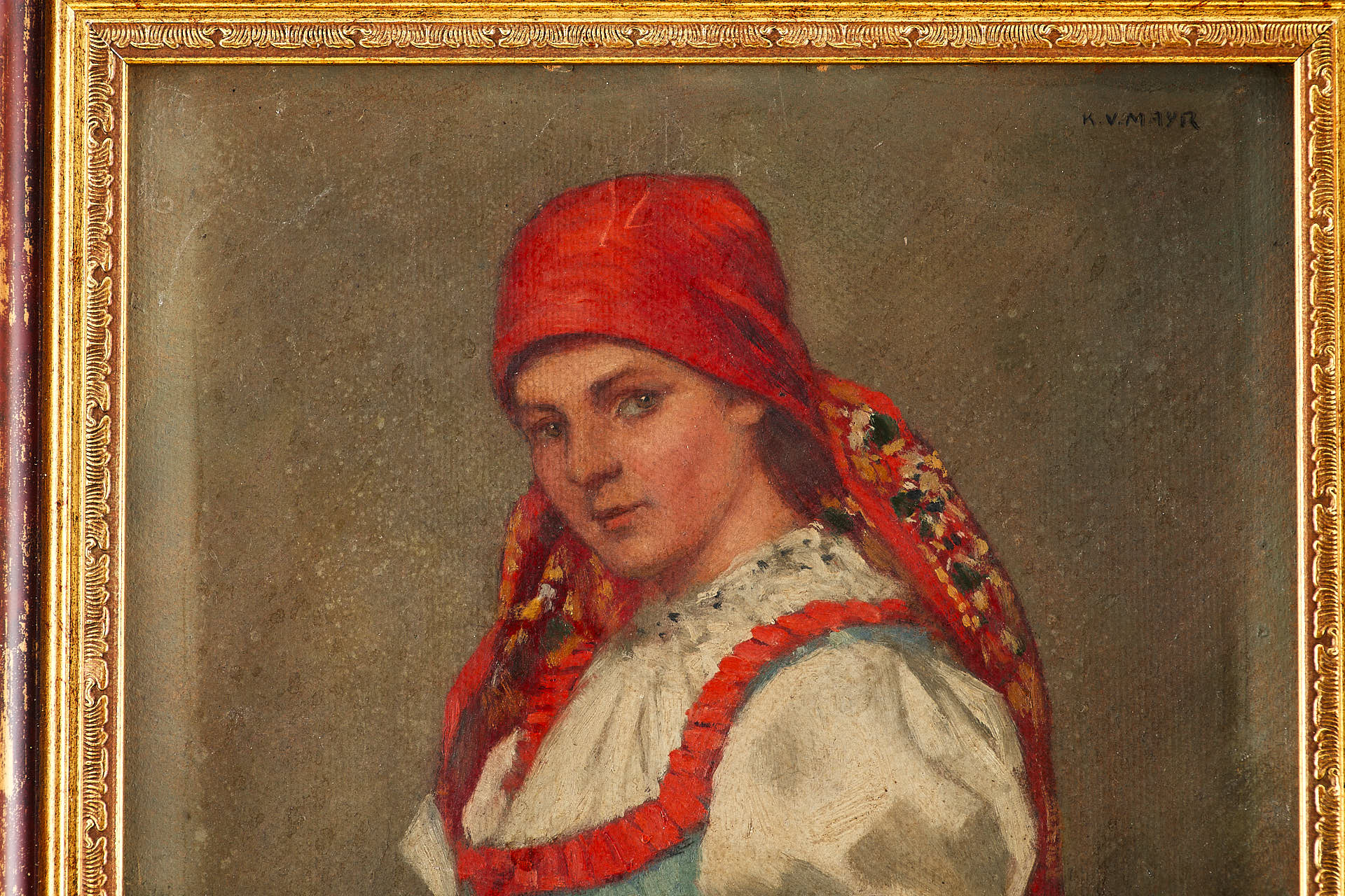 К. Mayer Девушка в национальном костюме картон, масло Австрия 1920-гг. 34,2x26,4 см. Австрия 1920-гг
