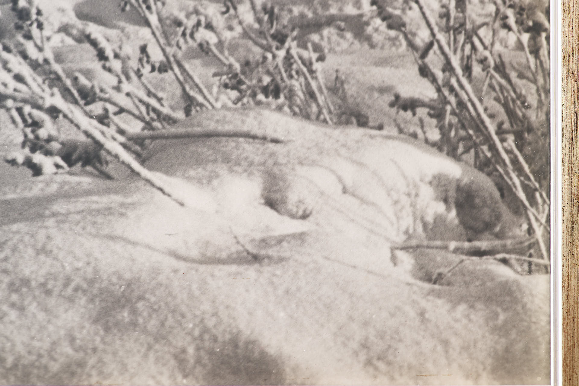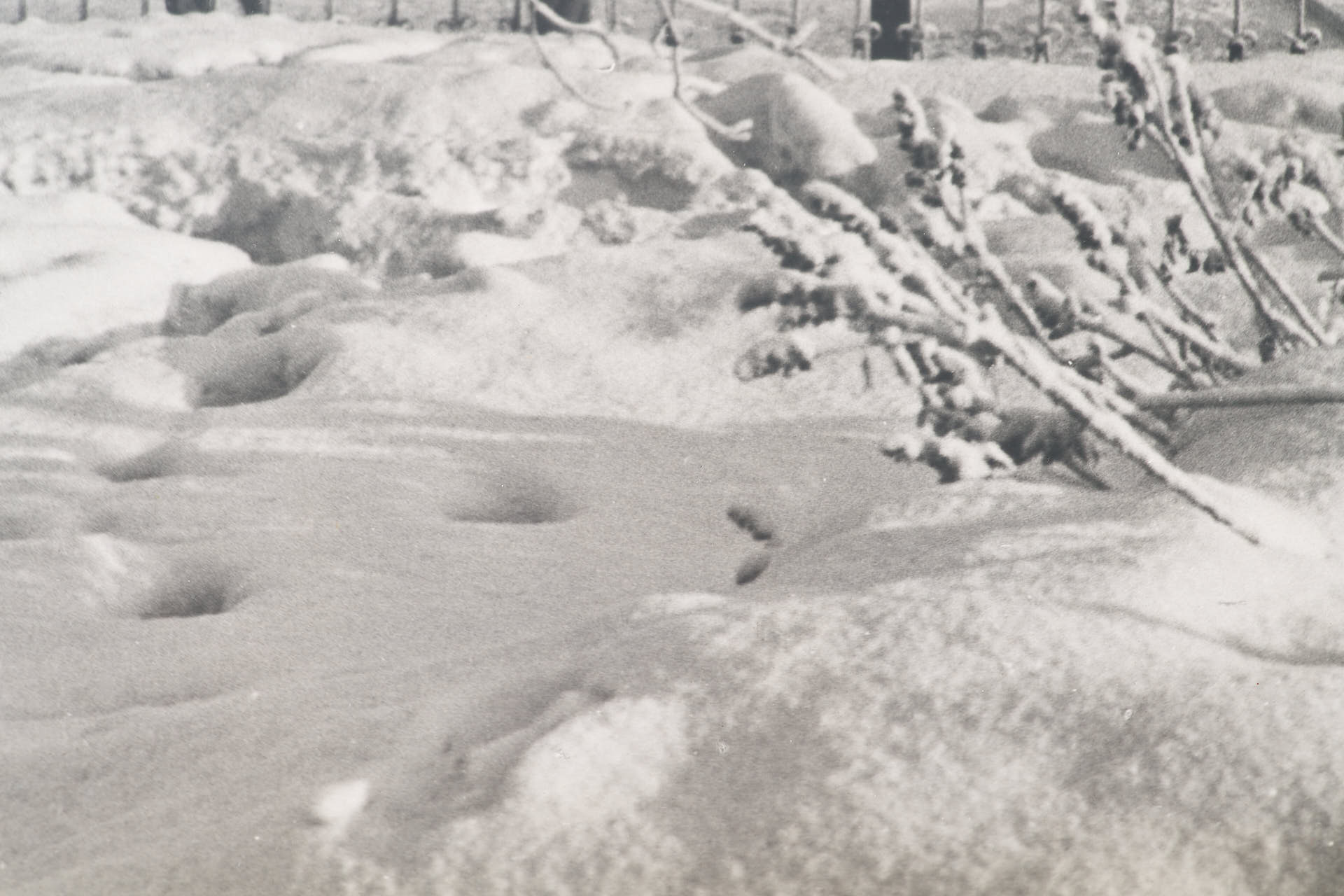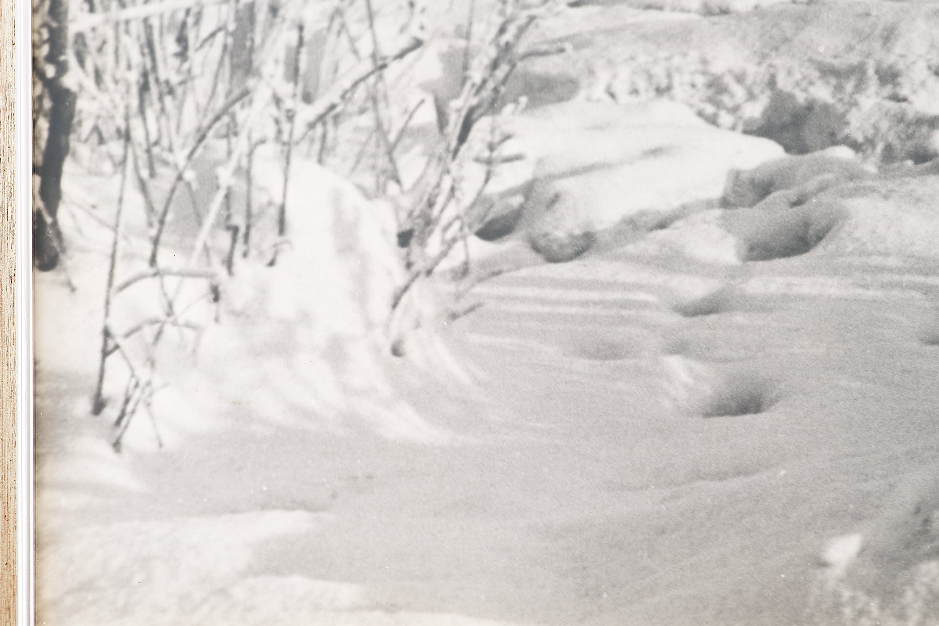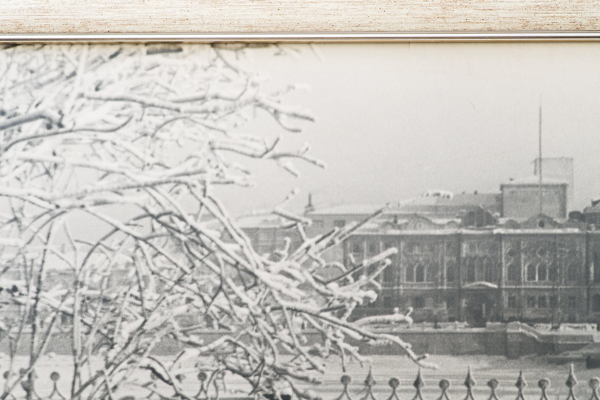 Работа относится к направлению документальной и художественной фотографии межвоенного периода, когда фоторепортаж активно развивался как форма искусства и фиксации городской среды. В данном случае особое внимание уделено построению композиции: кадрирование через снежные ветви создаёт эффект "живого окна", подчёркивая глубину пространства и усиливая атмосферу.