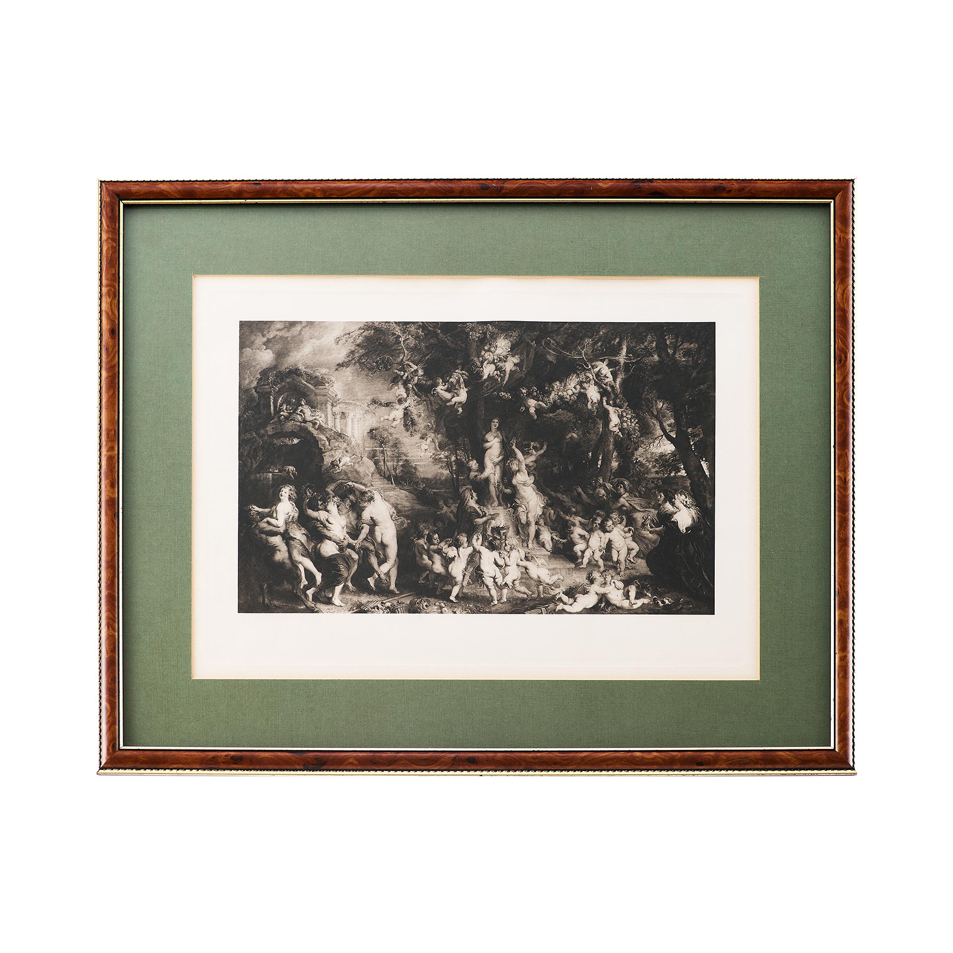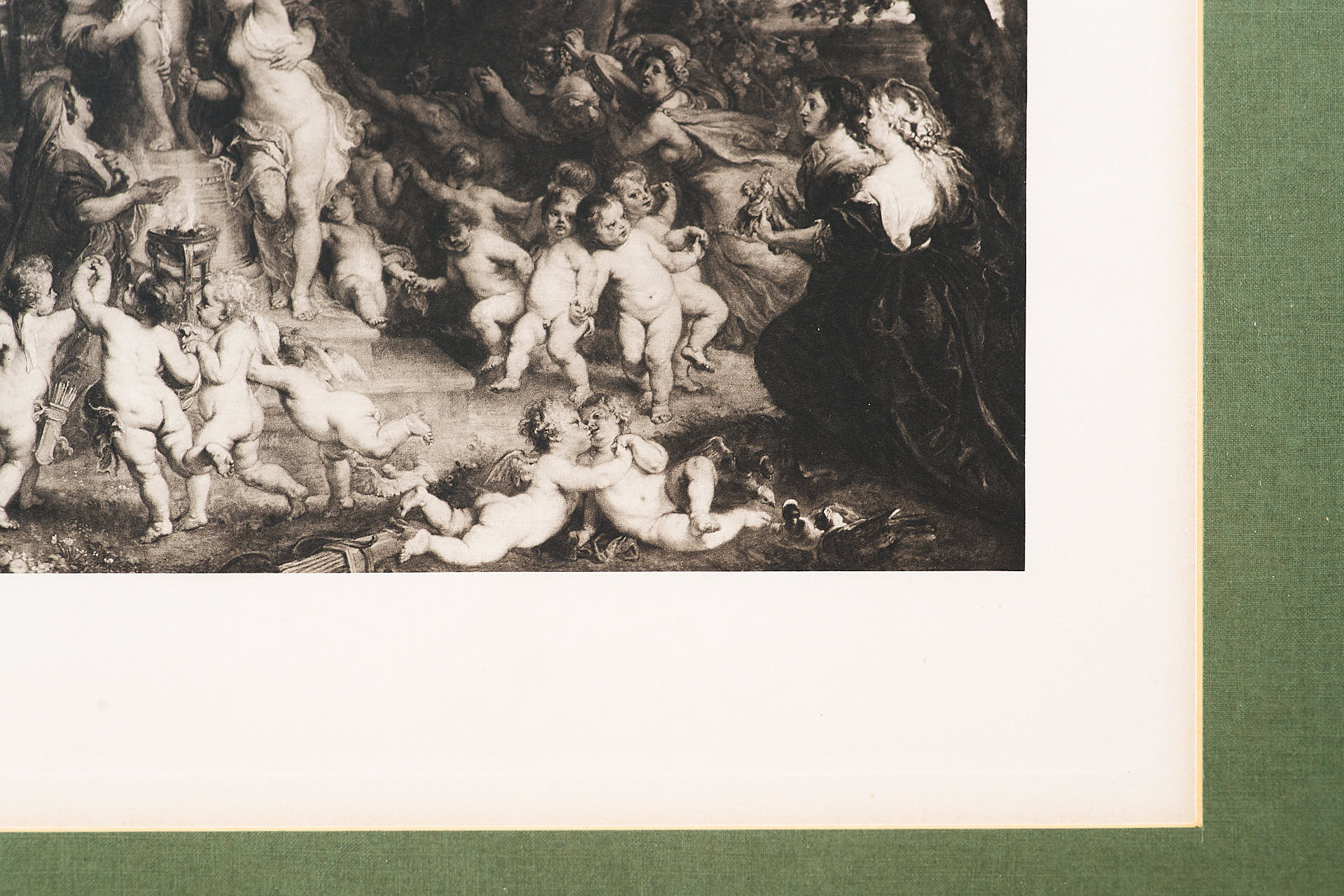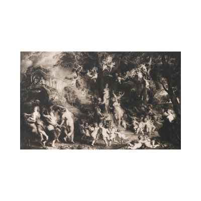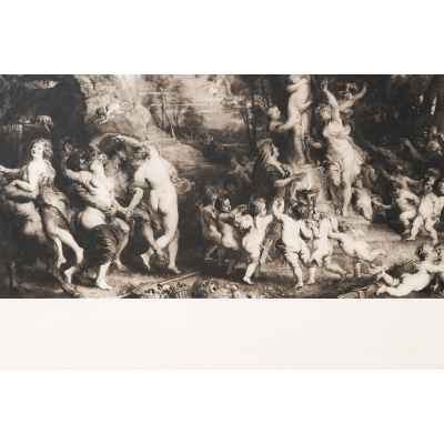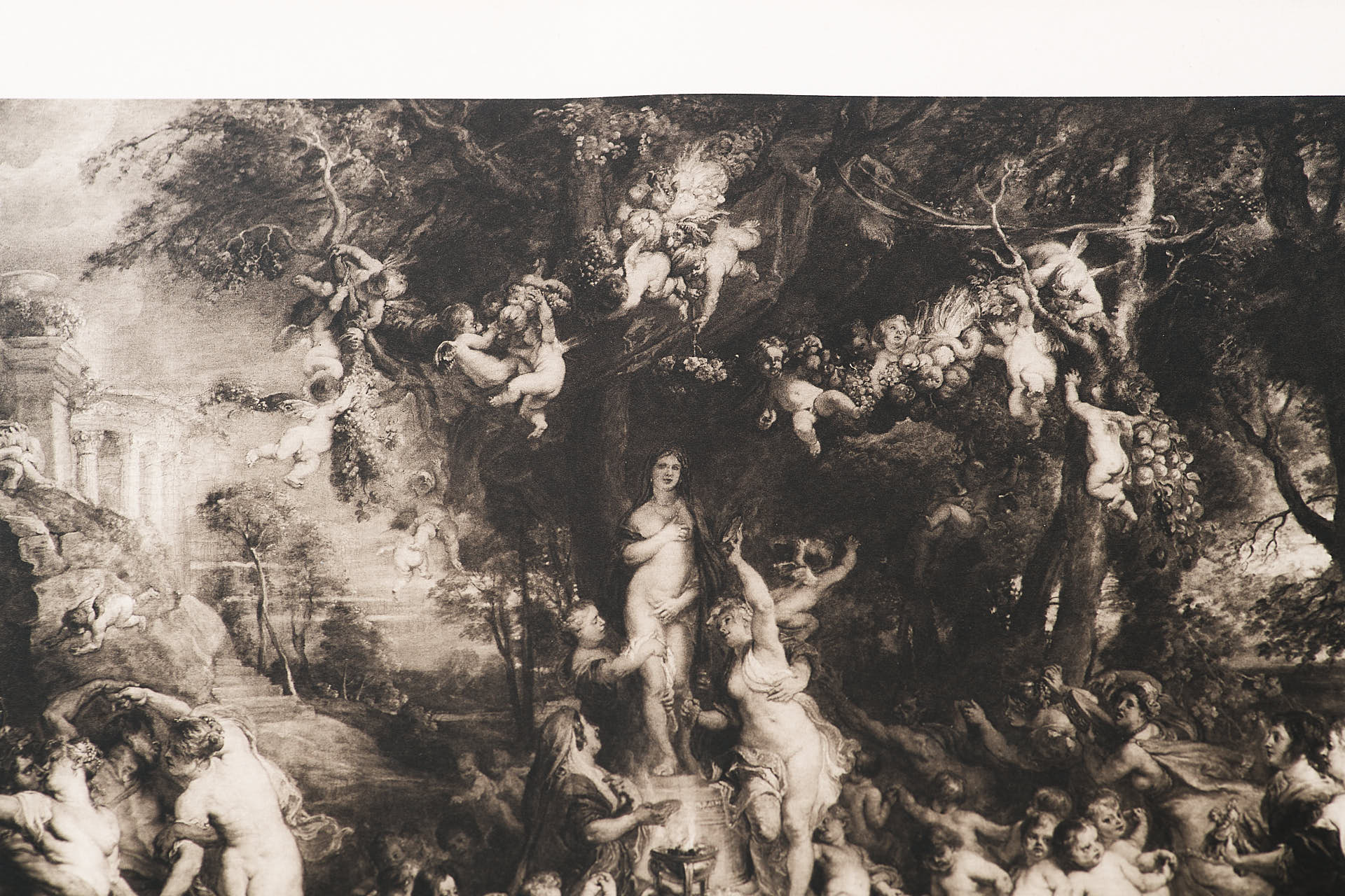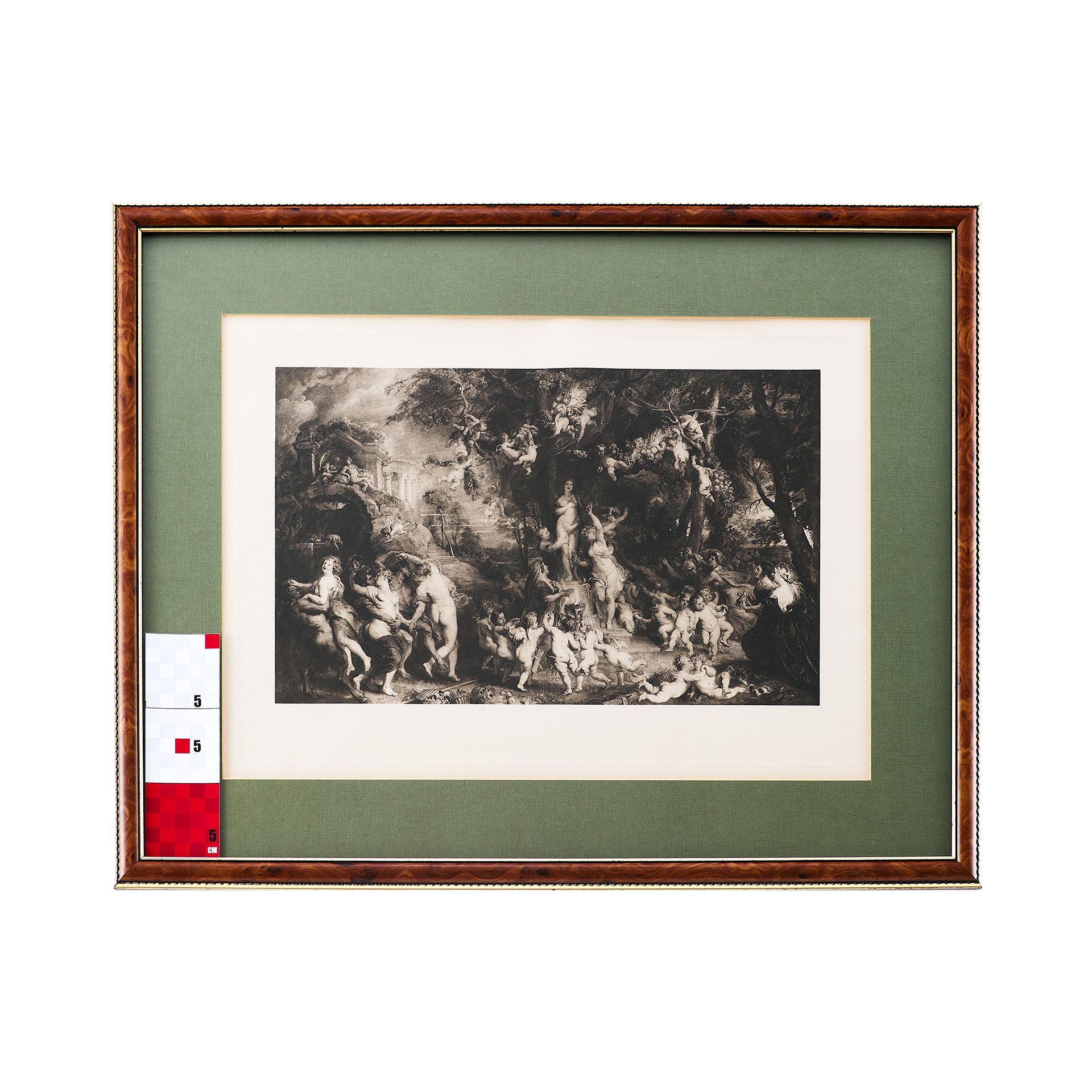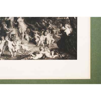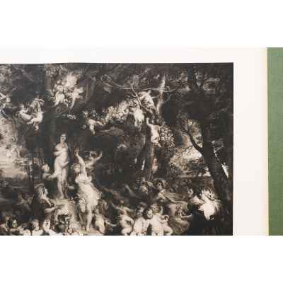 Перед нами фотогравюра «Праздник Венеры», созданная по мотивам работы выдающегося фламандского художника Питера Пауля Рубенса (Peter Paul Rubens, 1577–1640). Оригинальное произведение относится к числу наиболее выразительных примеров барочной живописи, в которой гармонично сочетаются мифологический сюжет, чувственная телесность и сложная пространственная композиция. Представленная репродукция была издана в 1904 году в Санкт-Петербурге Книгоиздательским товариществом “Просвещение” в составе альбома «Сокровище искусства».