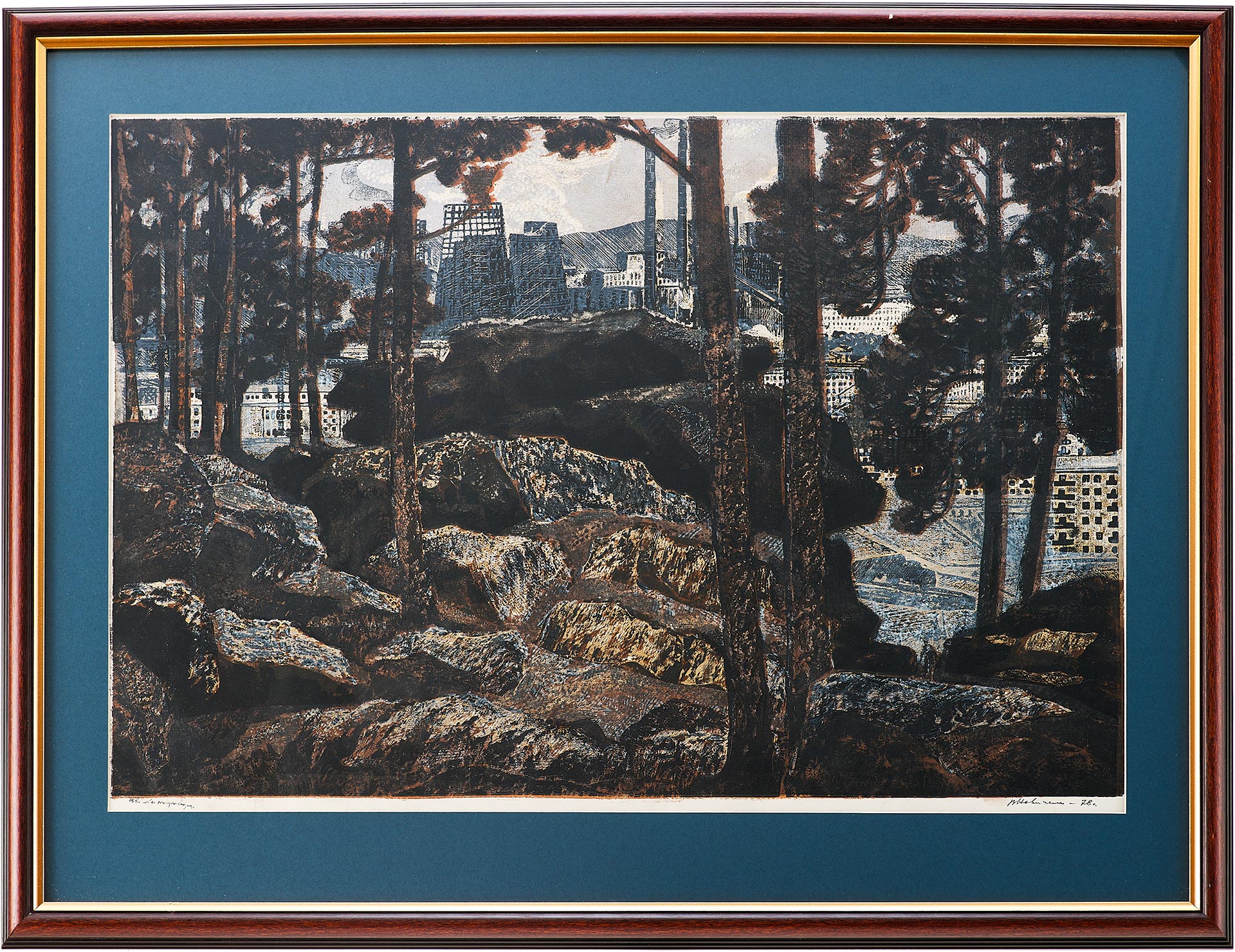 Новиченко В. А. линогравюра Уральский пейзаж 1998 г. 48x72 см. 1998
