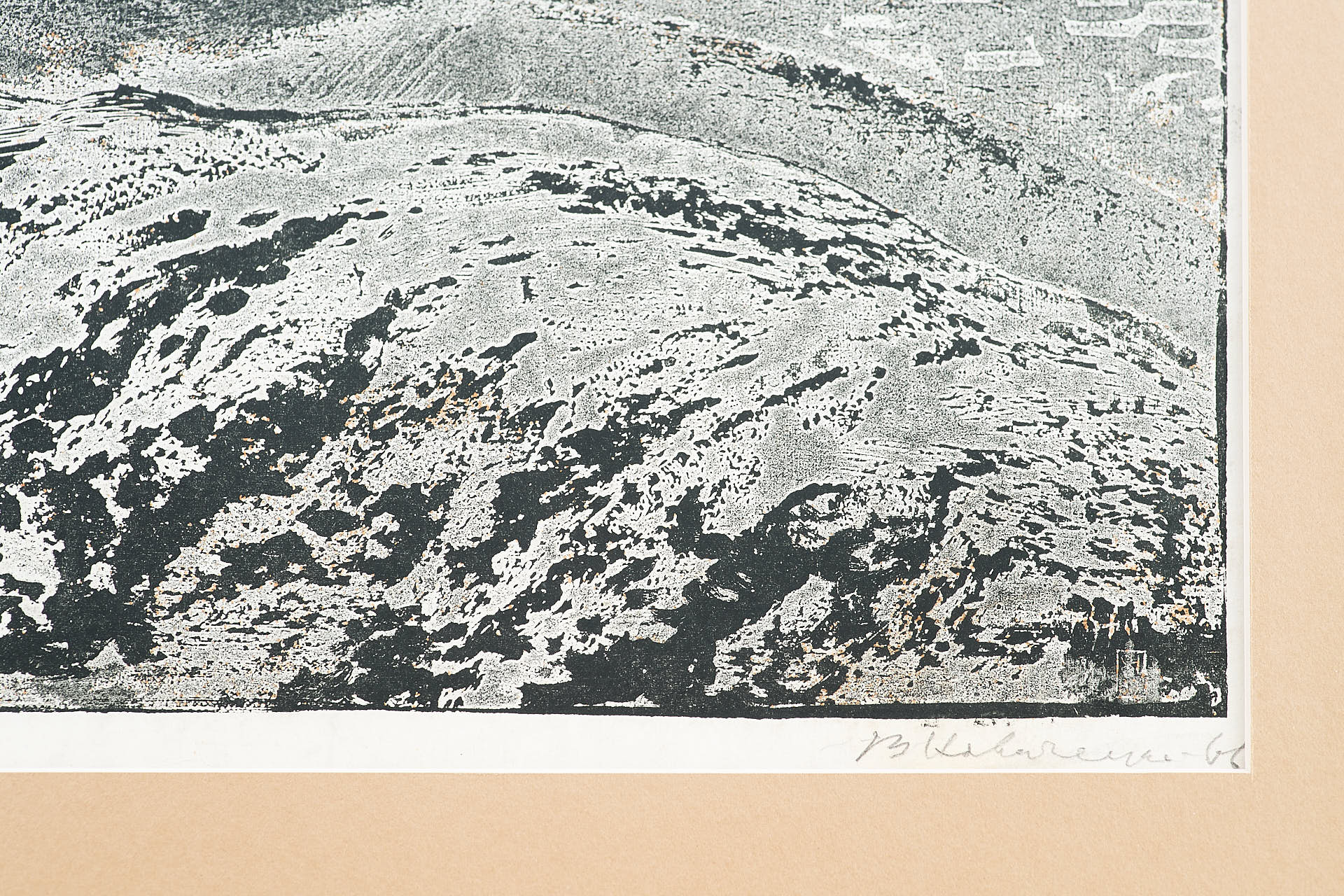 Новиченко В. А. офорт Горная дорога в уральский город 1966 г. 47x62 см. 1966